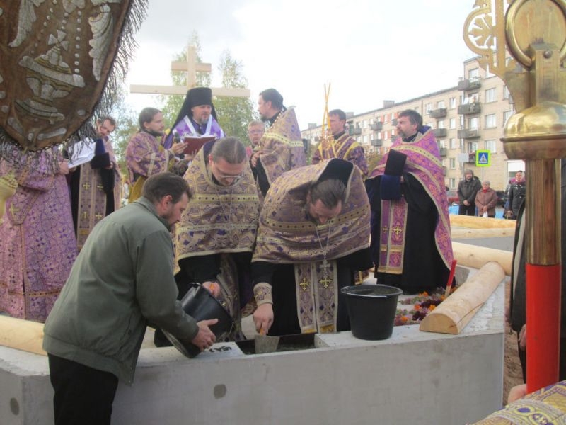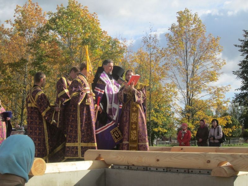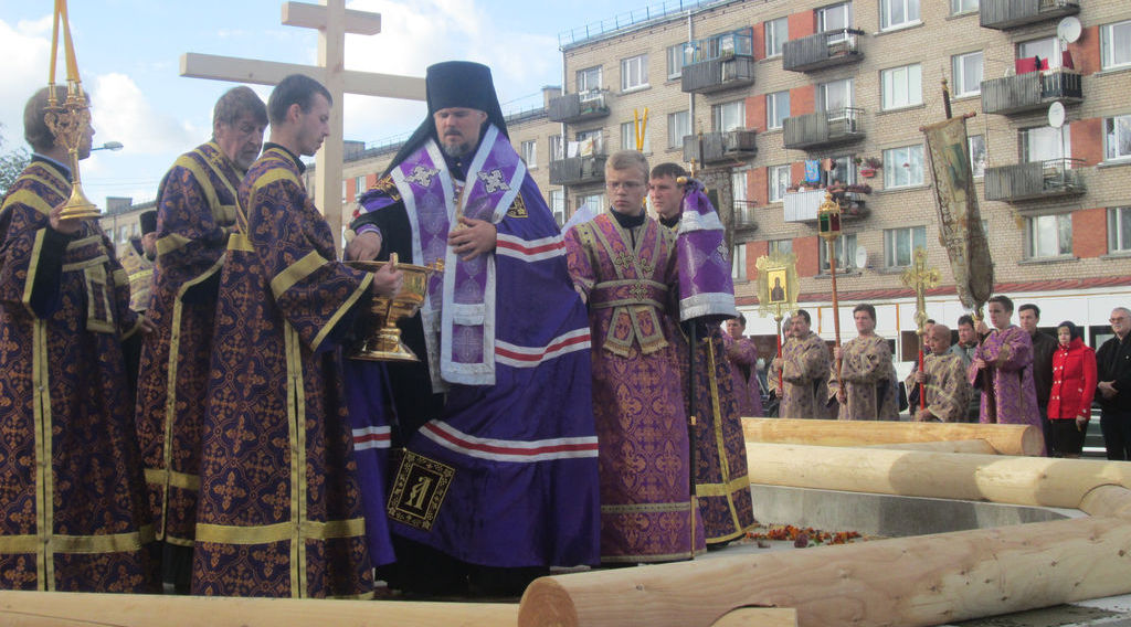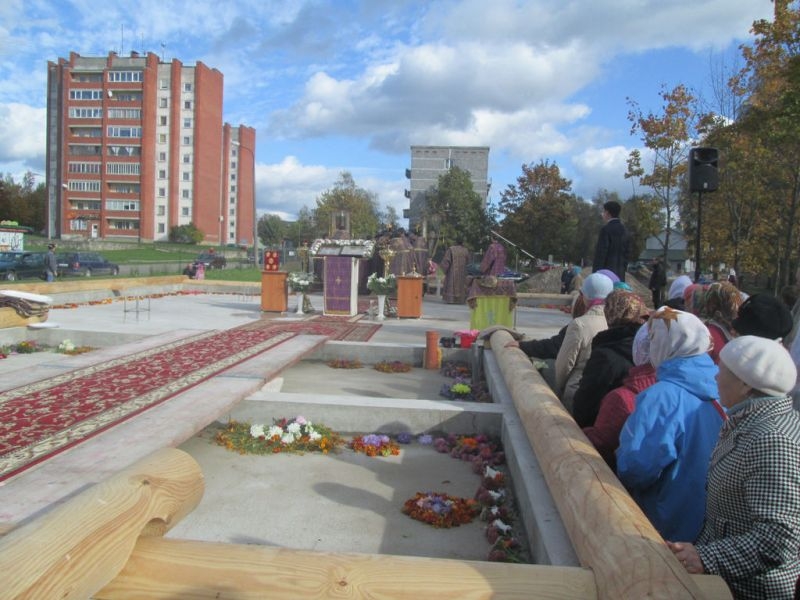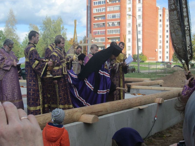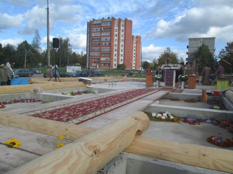 Помолиться об основании нового храма и разделить торжество этого дня собрались верующие города Резекне, большинство – жители Северного района, в котором строится новый храм. Напомним, что несколько лет назад на этом месте стоял маленький храм, принадлежавший ранее греко-католической церкви. По благословению Высокопреосвященнейшего Александра, Митрополита Рижского и всея Латвии, этот храм был выкуплен Синодом Латвийской Православной Церкви, и 3 сентября 2008 года было совершено его мало освящение – начались регулярные богослужения. Храм очень полюбился жителям Северного района города Резекне, стал родным, на богослужения собиралось всё больше народа, и тесный храм уже не вмещал всех верующих, к тому же его конструкция не совсем соответствовала климату наших мест: в крепкие зимние морозы в храме было довольно холодно (а электрическое отопление непомерно дорого), в летнюю жару – душно. Поэтому через три года было принято решение о строительстве нового, более просторного и основательного храма.