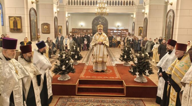 По завершении чтения Первого часа Его Преосвященство поздравил всех с праздником и призвал принести свои молитвы ко Пресвятой Владычице Богородице, Которая в молитвах Своих Неусыпающая за род христианский есть Ходатаица и Заступница в деле нашего спасения.