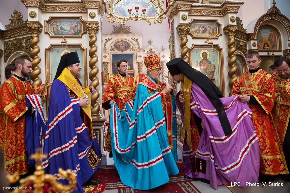 После провозглашения многолетия с Архипастырским словом ко всем присутствующим обратился Высокопреосвященнейший Владыка Митрополит, который приветствовал Преосвященных Архипастырей словами Пасхального приветствия и вновь поздравил Преосвященнейшего епископа Иоанна с совершённой Архиерейской хиротонией и всех богомольцев – с восстановлением викариатства в городе Елгаве.