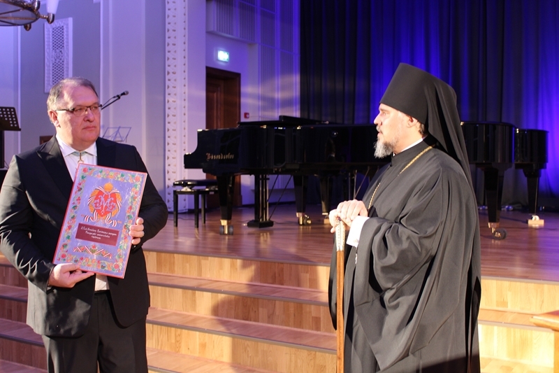 Перед началом праздничного вечера Преосвященнейший Епископ Александр посетил ректора Даугавпилсского Университета профессора Арвида Баршевскиса в его кабинете, где преподнёс свой поздравительный адрес и передал наилучшие пожелания Даугавпилсскому Университету от себя лично и от имени клира и паствы Даугавпилсской епархии.