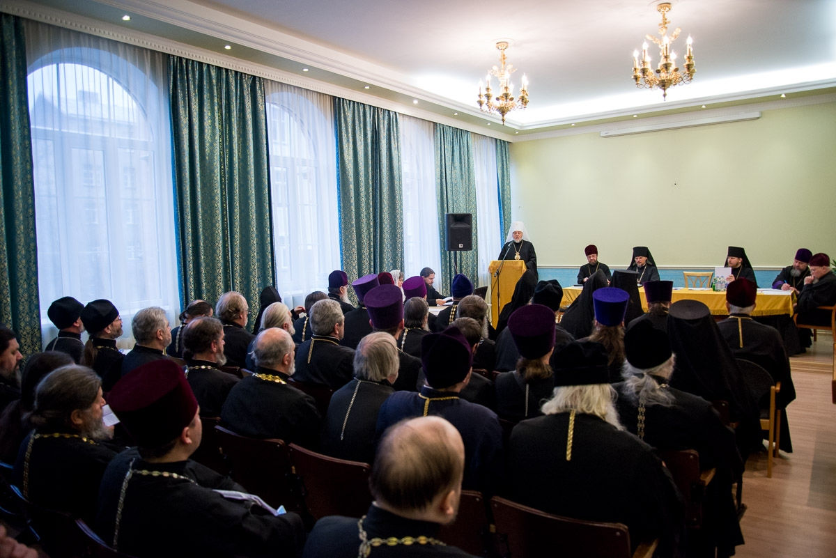 Также Его Высокопреосвященство отметил, что многим священникам необходимо стремиться к правильному пониманию отпевания, которое предпочтительнее проводить в храмах, а не кладбищенских каплицах. Владыка вновь указал на необходимость института катехизации: огласительных бесед перед Таинством Крещения, бесед с венчающимися, активизации работы воскресных детских и взрослых школ. Также Владыка обратил внимание присутствующих священников на обязательность ведения приходских исповедальных книг (особенно в дни постов).