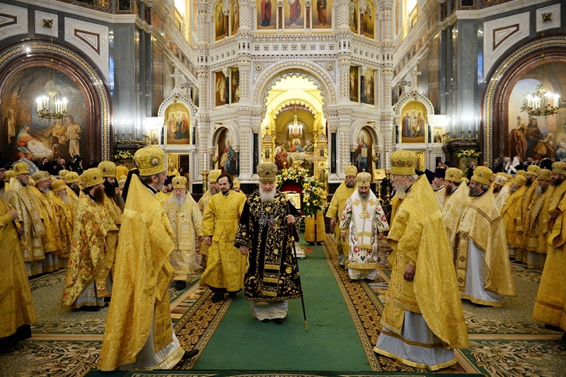 За богослужением Святейшему Патриарху Кириллу сослужили: Блаженнейший митрополит Киевский и всея Украины Онуфрий; митрополит Крутицкий и Коломенский Ювеналий, Патриарший наместник Московской епархии; митрополит Кишиневский и всея Молдовы Владимир; митрополит Астанайский и Казахстанский Александр, глава Митрополичьего округа в Республике Казахстан; митрополит Ташкентский и Узбекистанский Викентий, глава Среднеазиатского митрополичьего округа; митрополит Санкт-Петербургский и Ладожский Варсонофий, управляющий делами Московской Патриархии; митрополит Минский и Заславский Павел, Патриарший экзарх всея Беларуси; митрополит Волоколамский Иларион, председатель Отдела внешних церковных связей Московского Патриархата; главы митрополий и иерархи Русской Православной Церкви; руководители синодальных и общецерковных учреждений в священном сане.