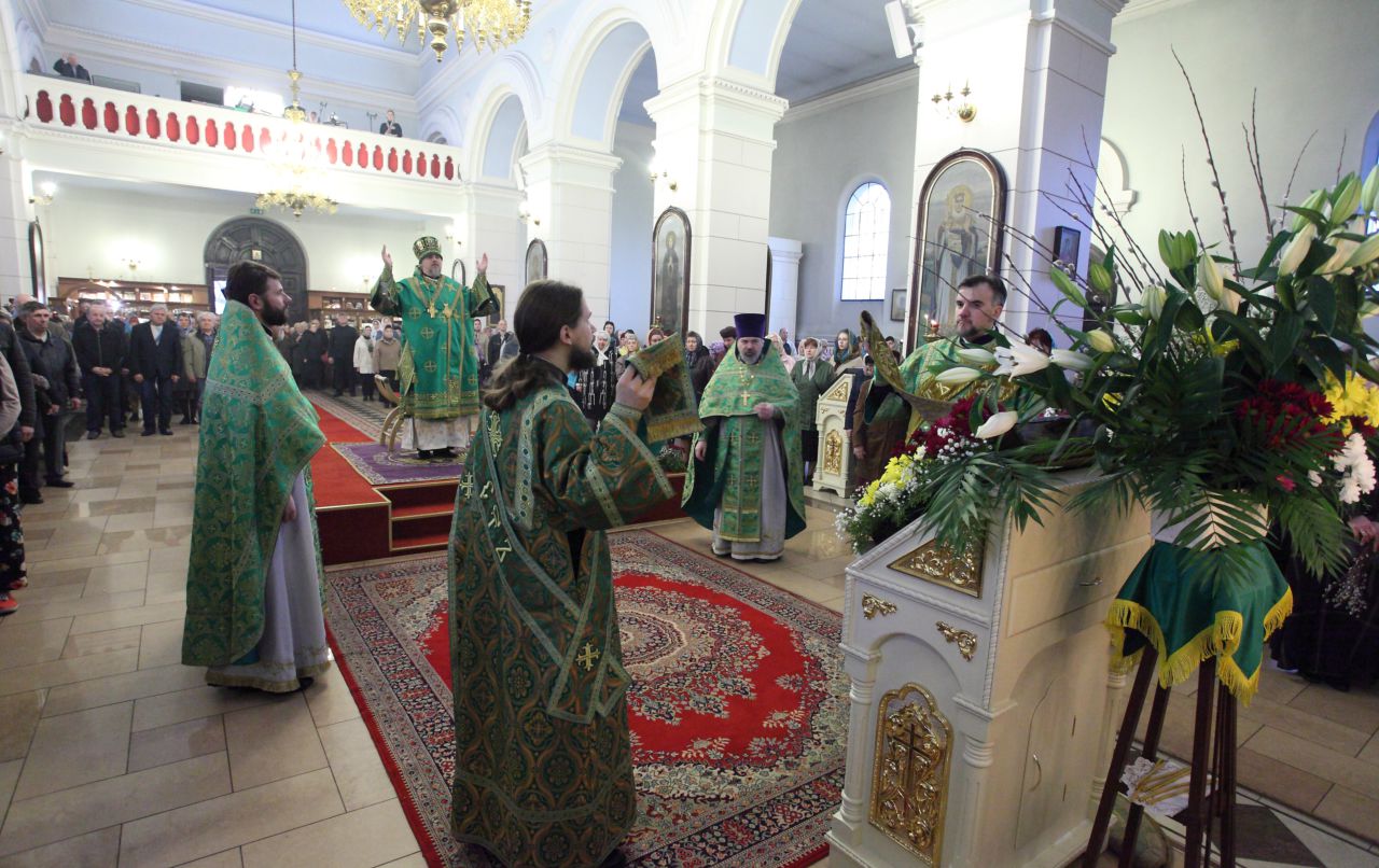 В этот праздничный день соборный храм был переполнен молящимися, пришедшими из разных приходов г. Даугавпилса разделить молитву со своим Архипастырем. За Божественной литургией были возглашены особые прошения о сохранении единства Св. Православия и особые прошения о мире на Украинской земле.