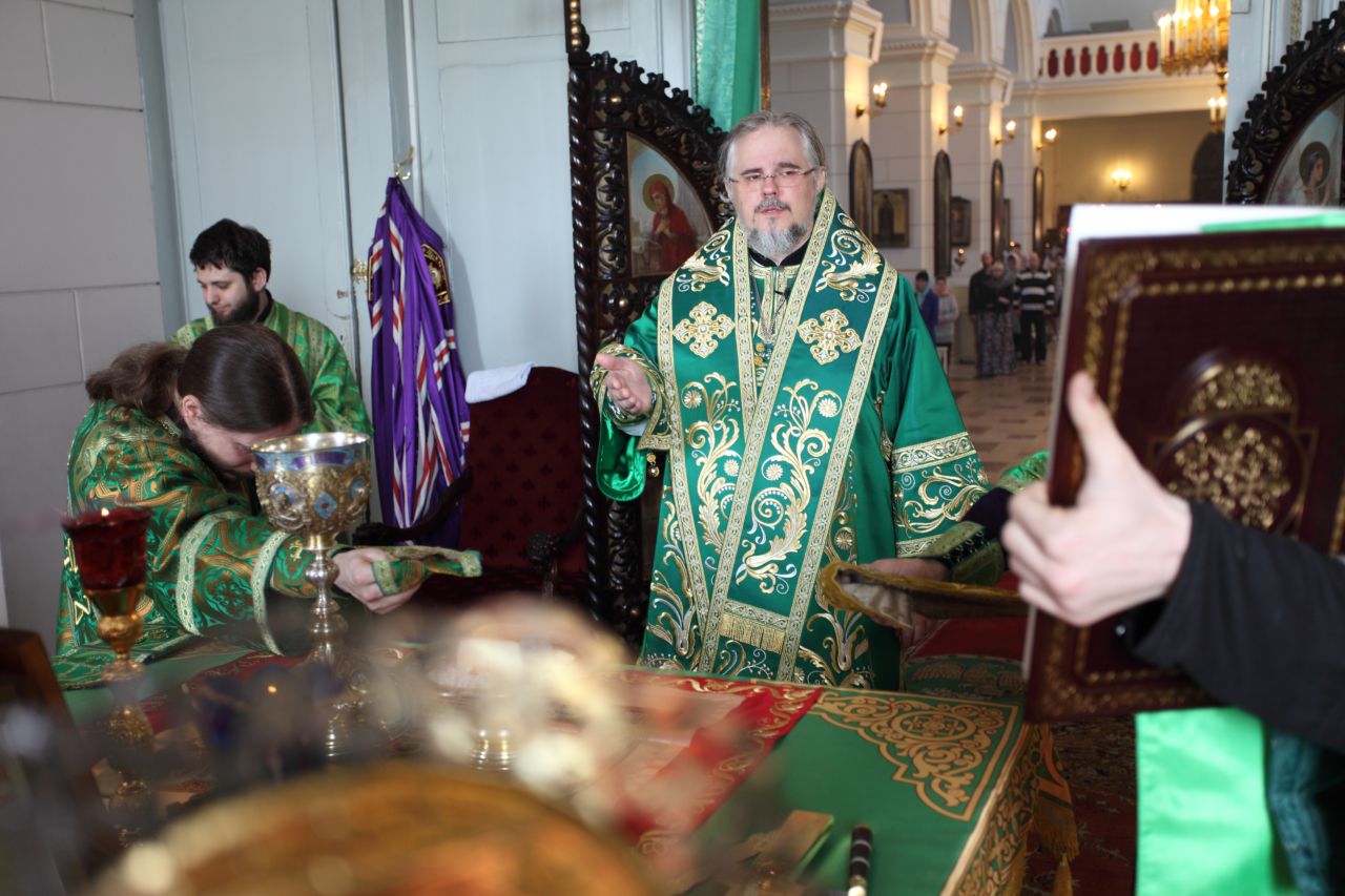 25 апреля 2019 года, в Великий Четверг Страстной седмицы, в день Воспоминания Тайной Вечери, Преосвященнейший Епископ Даугавпилсский и Резекненский Александр в кафедральном Борисо-Глебском соборе г.Даугавпилса совершил Вечерню и Божественную литургию свт. Василия Великого.