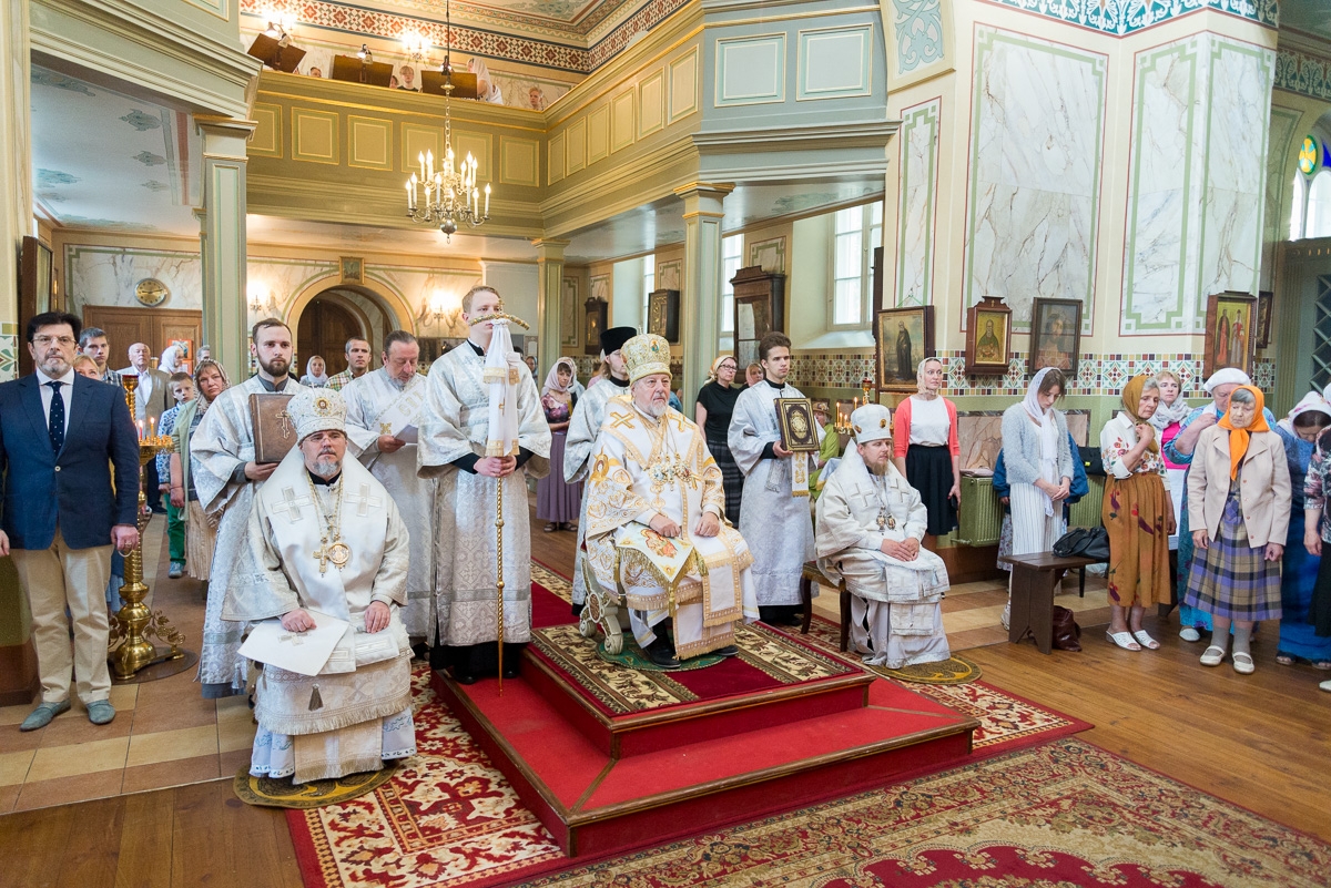 Высокопреосвященнейший Владыка Митрополит был встречен торжественным звоном колоколов, у входа в храм его встречала староста прихода Ирена (Ирина) Приеде. Храмовые иконы были украшены живыми цветами. За Божественной литургией пел приходской хор под управлением регента Ксении (Лаумы) Малини.