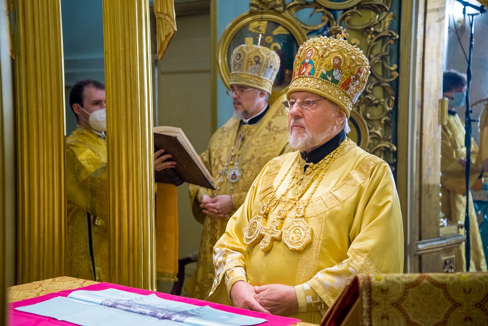 Во время Божественной литургии на сугубой ектении были провозглашены особые прошения о прекращении пандемии и об исцелении всех болящих. На заупокойной ектении Высокопреосвященнейший Митрополит Александр молился об упокоении всех от века почивших настоятелей, благотворителей, жертвователей, строителей и прихожан этого храма.