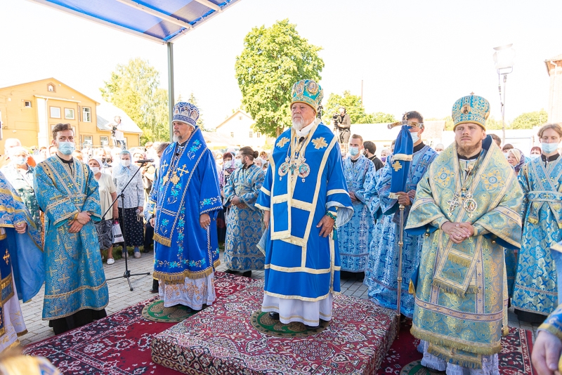 По возглашении уставных многолетий Высокопреосвященнейший Митрополит Александр обратился к молящимся с проникновенной проповедью о Пресвятой Владычице нашей Богородице и Приснодеве Марии и событиях 13-летней давности, ставшей одной из наиглавнейших страниц истории возрождённого Екабпилсского Свято-Духова мужского монастыря – освящении и принесении в обитель Якобштадтского чудотворного образа Царицы Небесной.