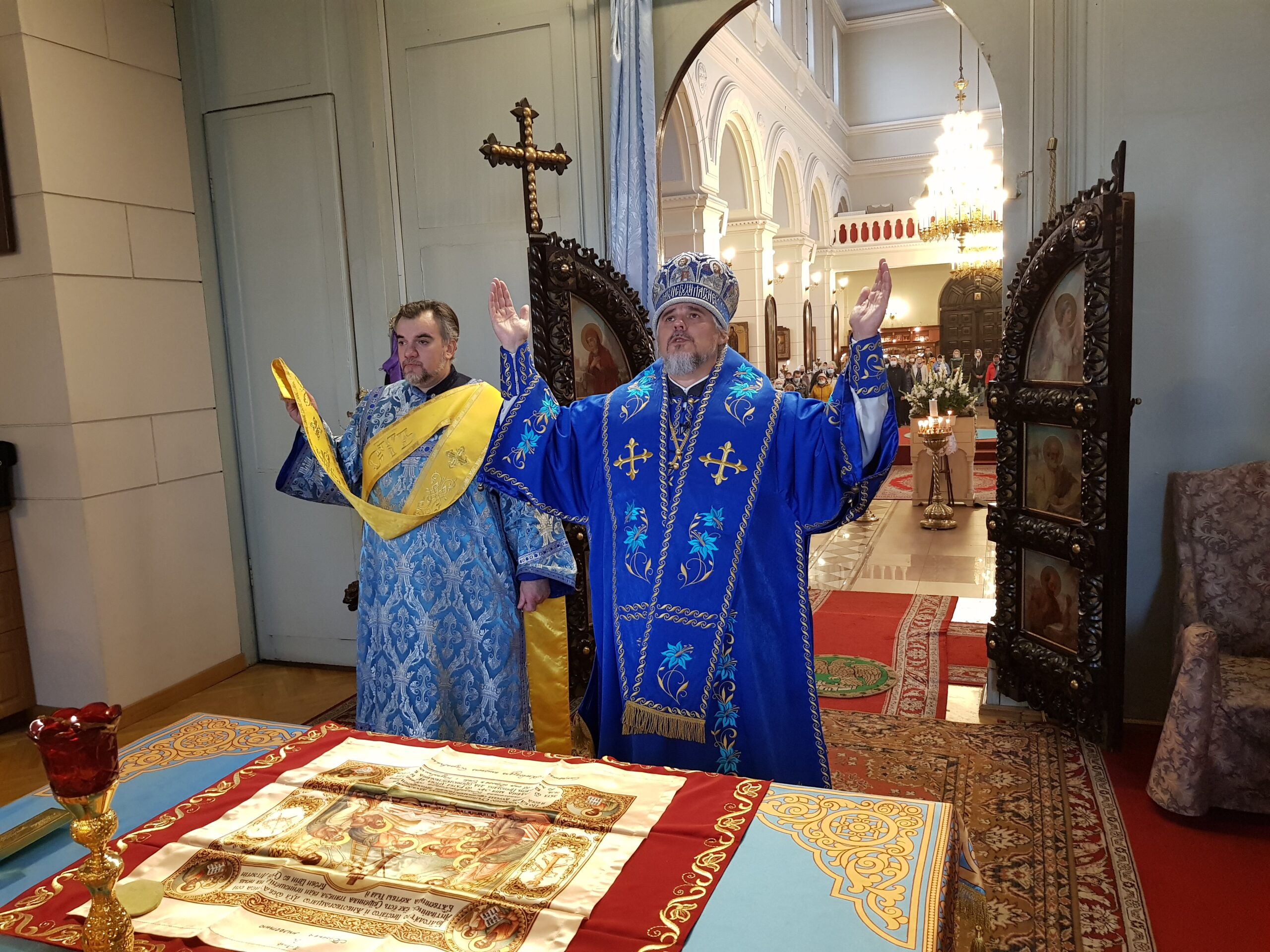 По окончании богослужения перед праздничной иконой было совершено славление, после чего были возглашены уставные многолетия.