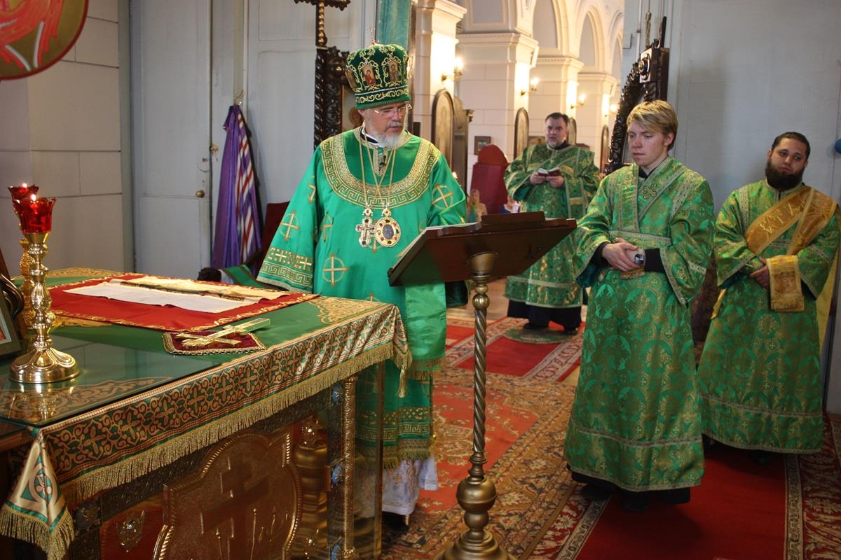 В этот день, по установившемуся церковному обычаю, кафедральный собор был украшен ветвями берёзок, символизирующих собою зиждительную силу Животворящего Духа, многие из прихожан собора стояли во время богослужения с ветвями берёзок и цветами.