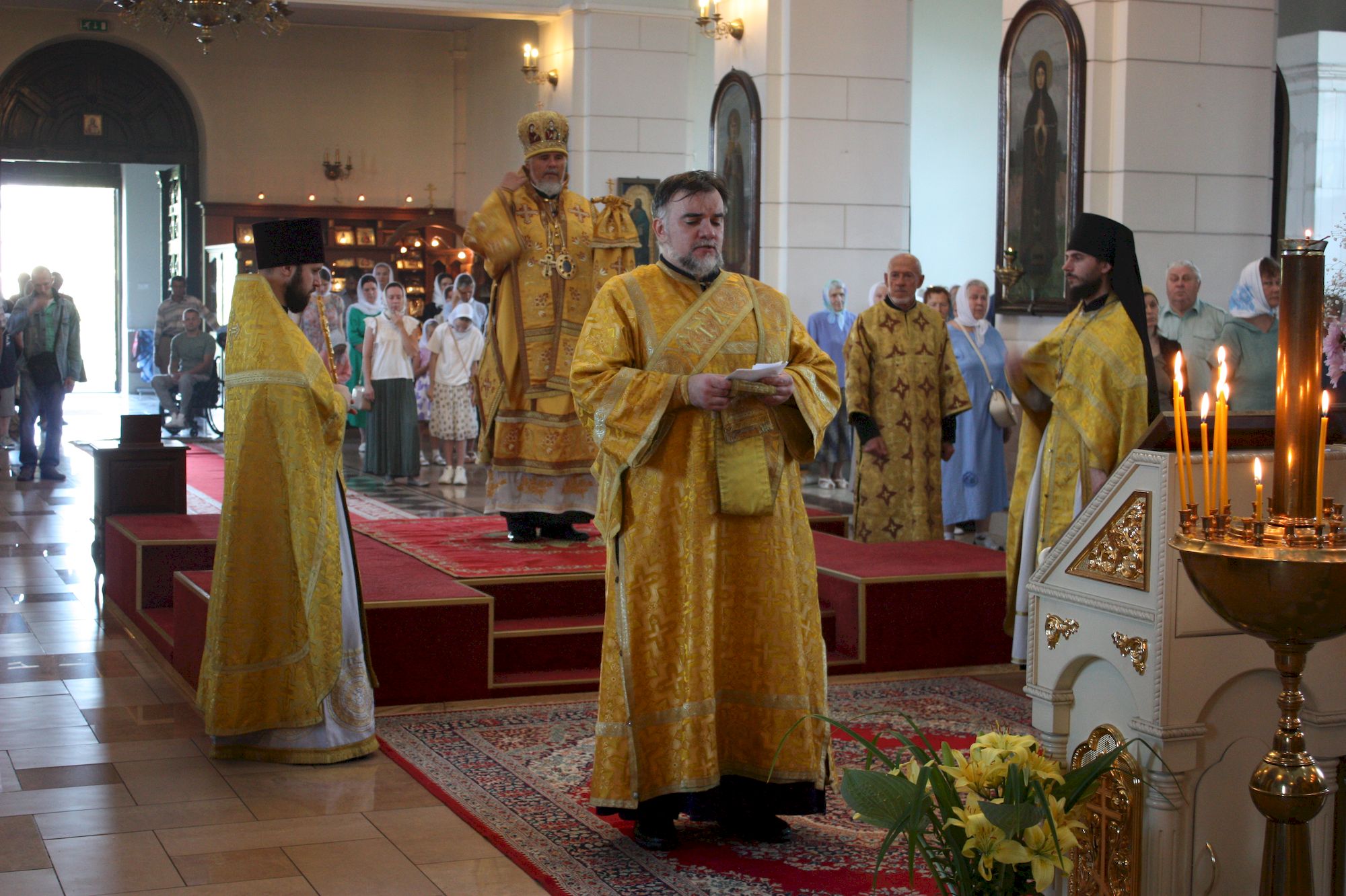 7 июля 2024 года, во 2-ю неделю по Пятидесятнице, в день празднования Рождества честного славного Пророка, Предтечи и Крестителя Господня Иоанна, Высокопреосвященнейший Александр, Архиепископ Даугавпилсский и Резекненский совершил Божественную литургию в кафедральном соборе свв. блгвв. кнн. Бориса и Глеба г.Даугавпилса.