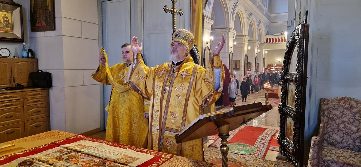 По окончании богослужения Высокопреосвященнейший Владыка обратился к прихожанам собора со словом поучения на тему Евангельского чтения этого дня и о деятельности святых отцов VII Вселенского Собора. Завершив проповедь Архиепископ Александр преподал верующим своё общее благословение.