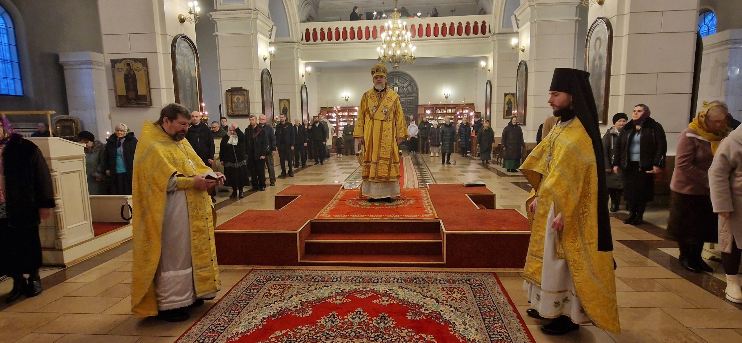 Перед причащением верующих Высокопреосвященнейший Владыка обратился к ним с проповедью на тему прочтённого за Божественной литургией Евангелия о званных на пир. Завершив проповедь Архиепископ Александр преподал своё общее благословение.
