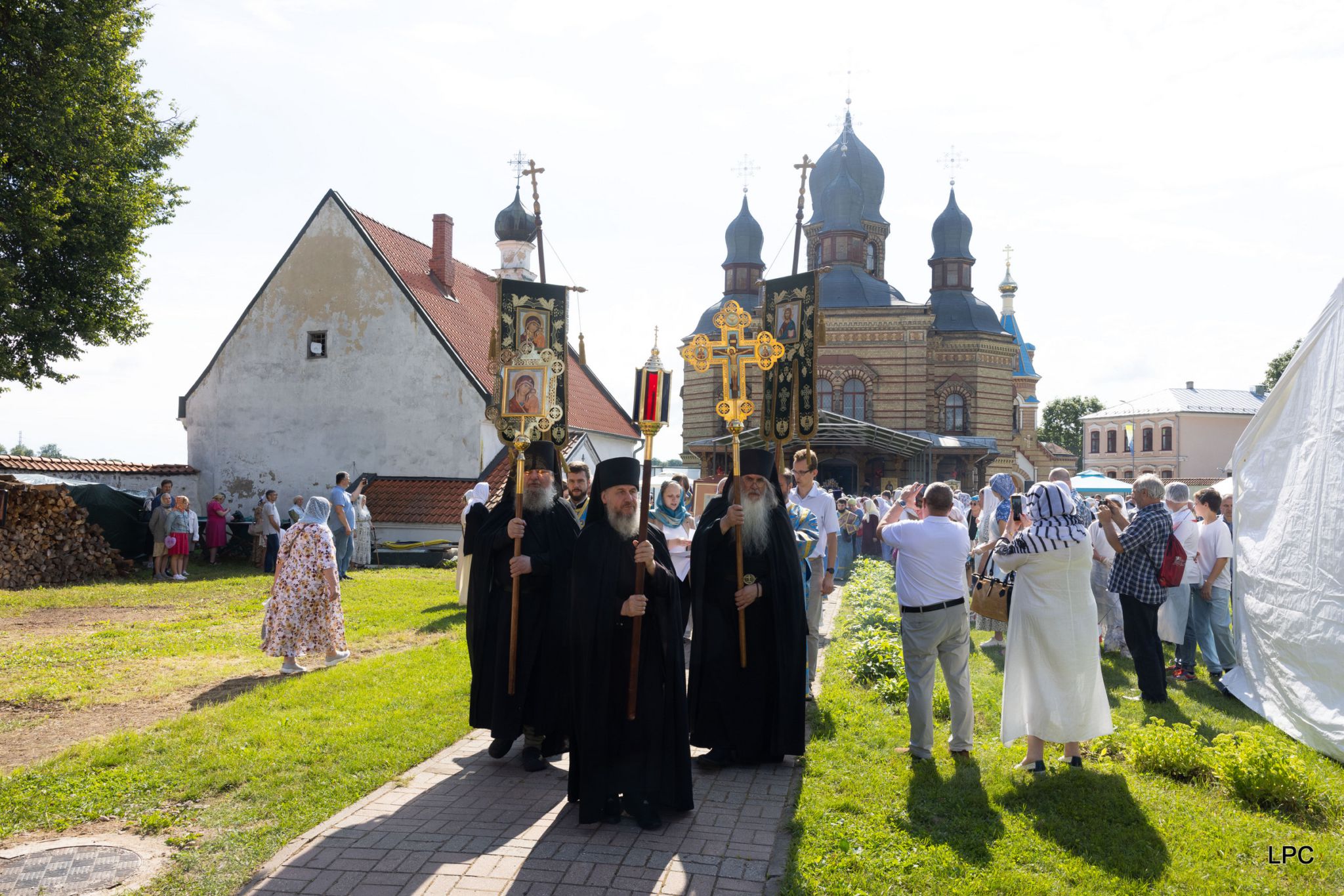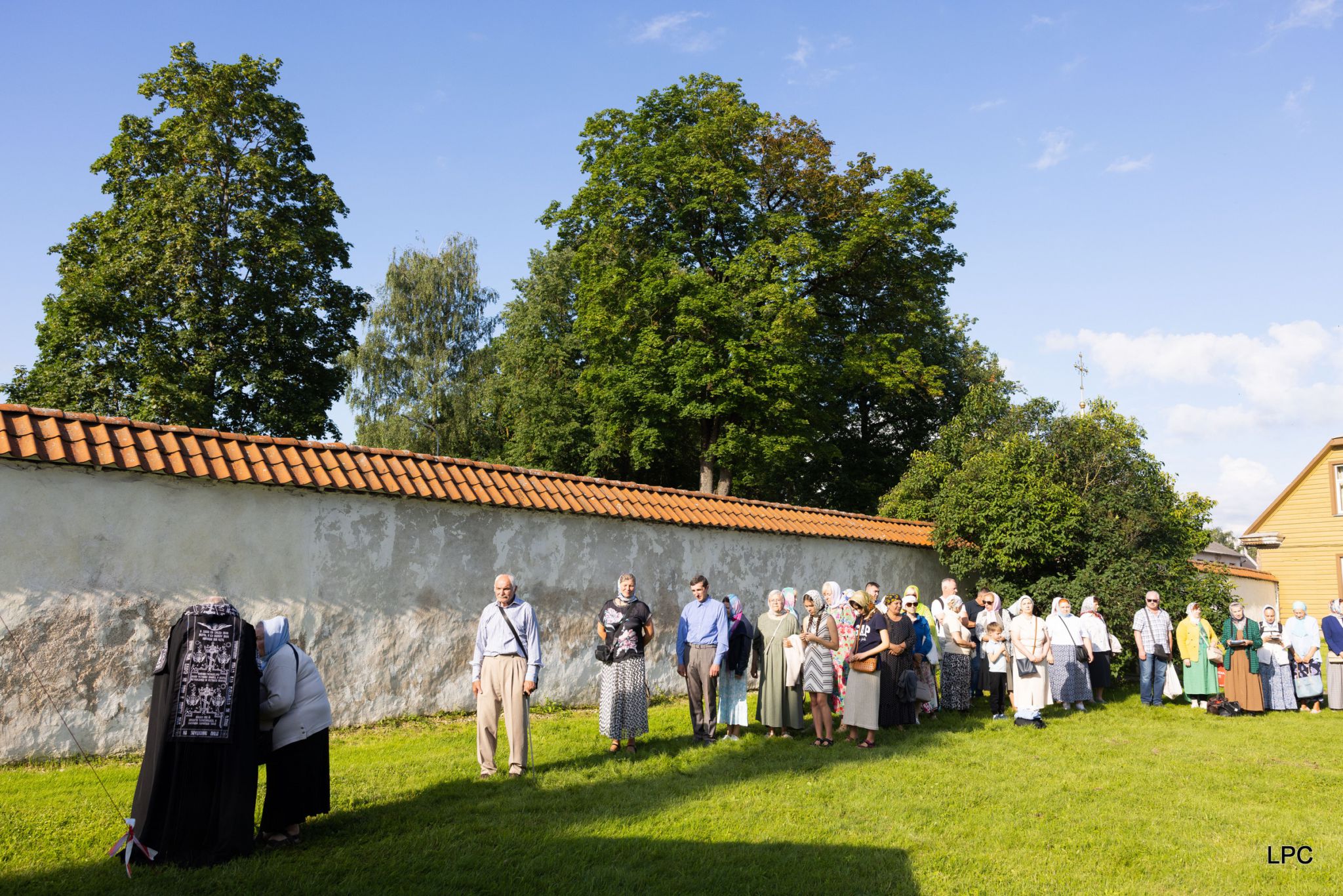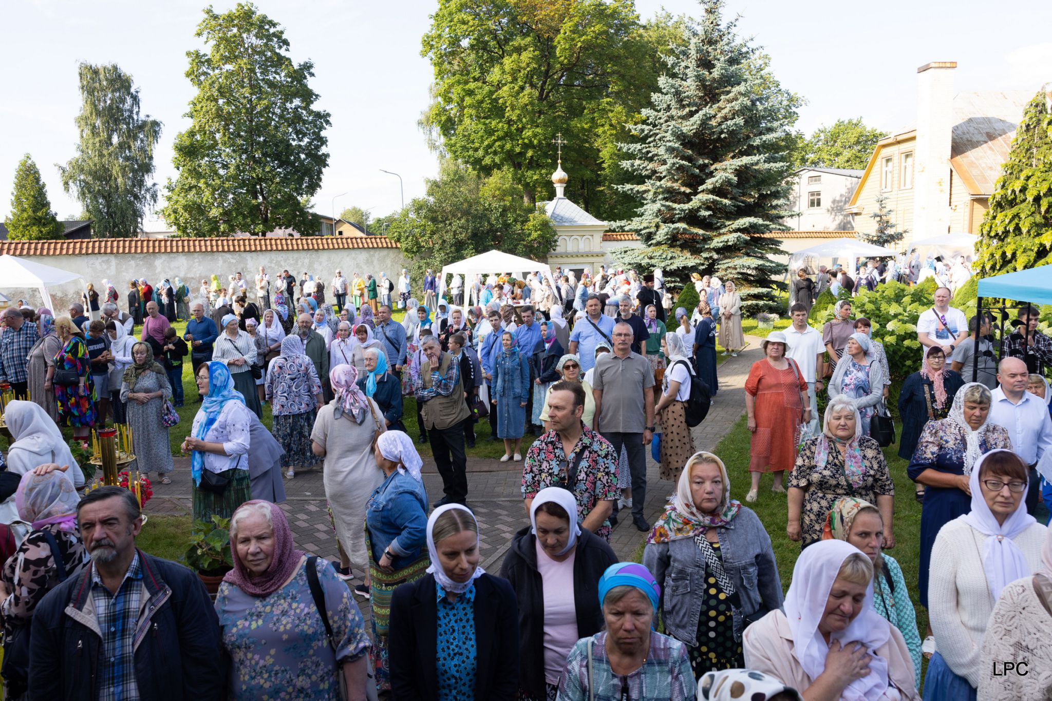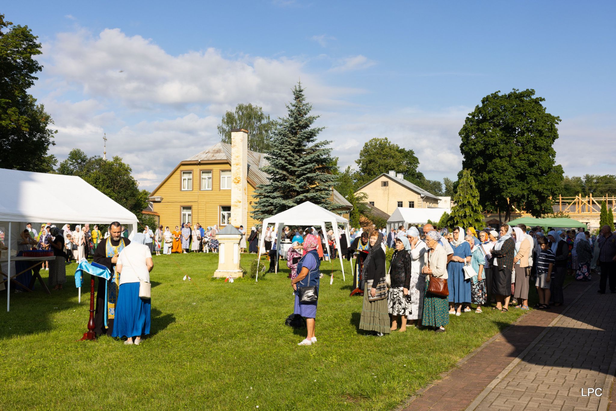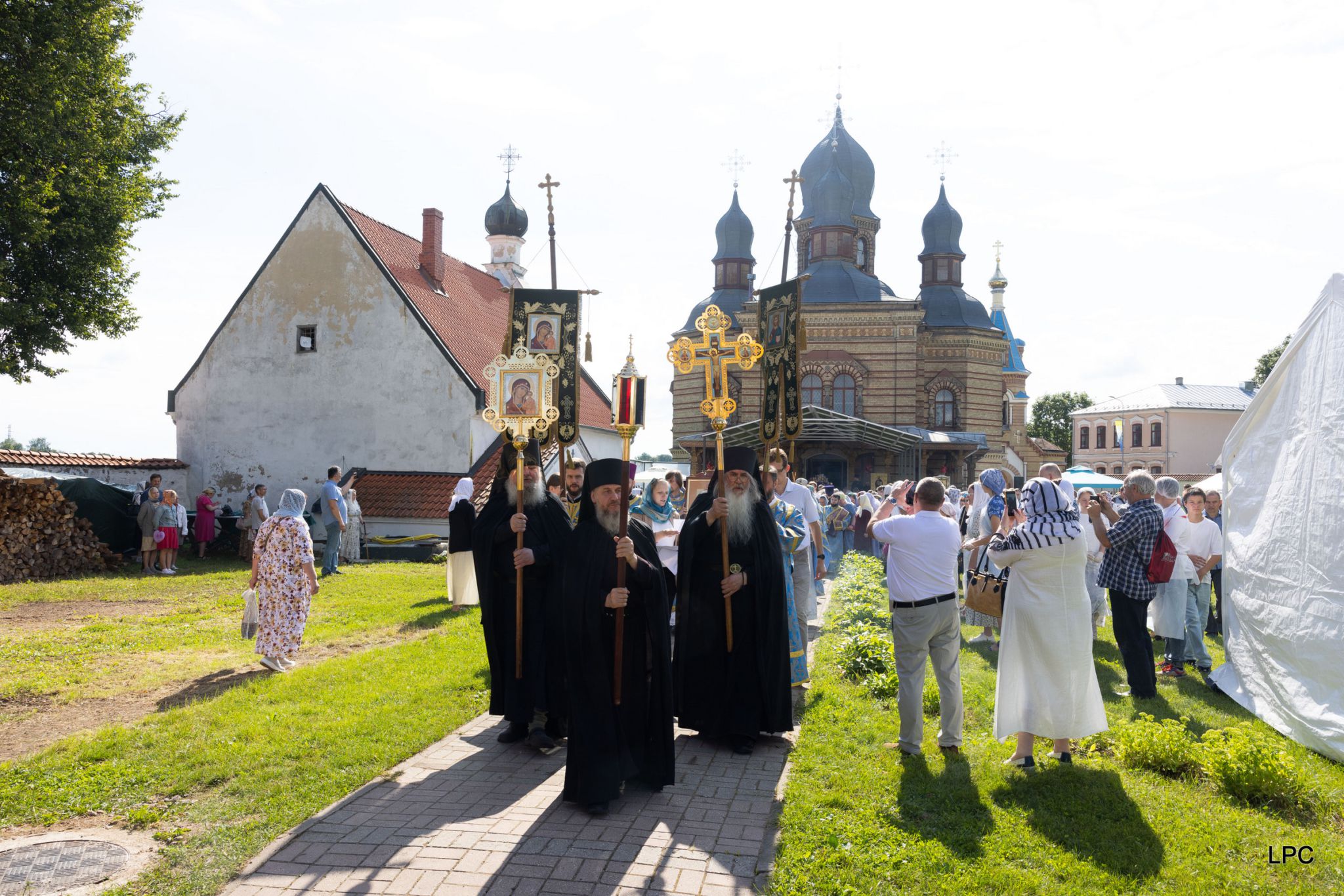 После отпуста литургии был совершён молебен с крестным ходом вокруг монастыря, во время которого священнослужители возносили прошения об умножении мира и милости Божией ко всей земле латвийской. А по отпусте молебна, после уставных многолетий, Владыка Архиепископ произнёс проповедь.
