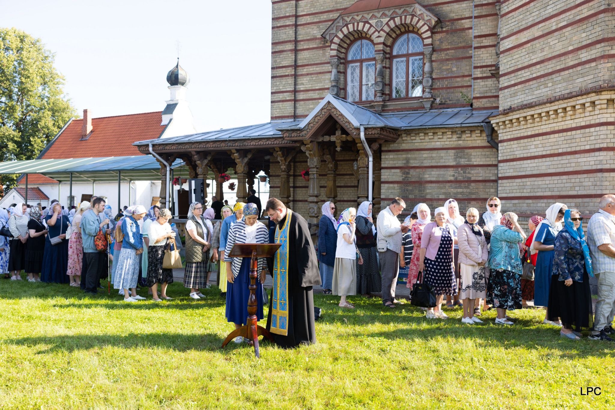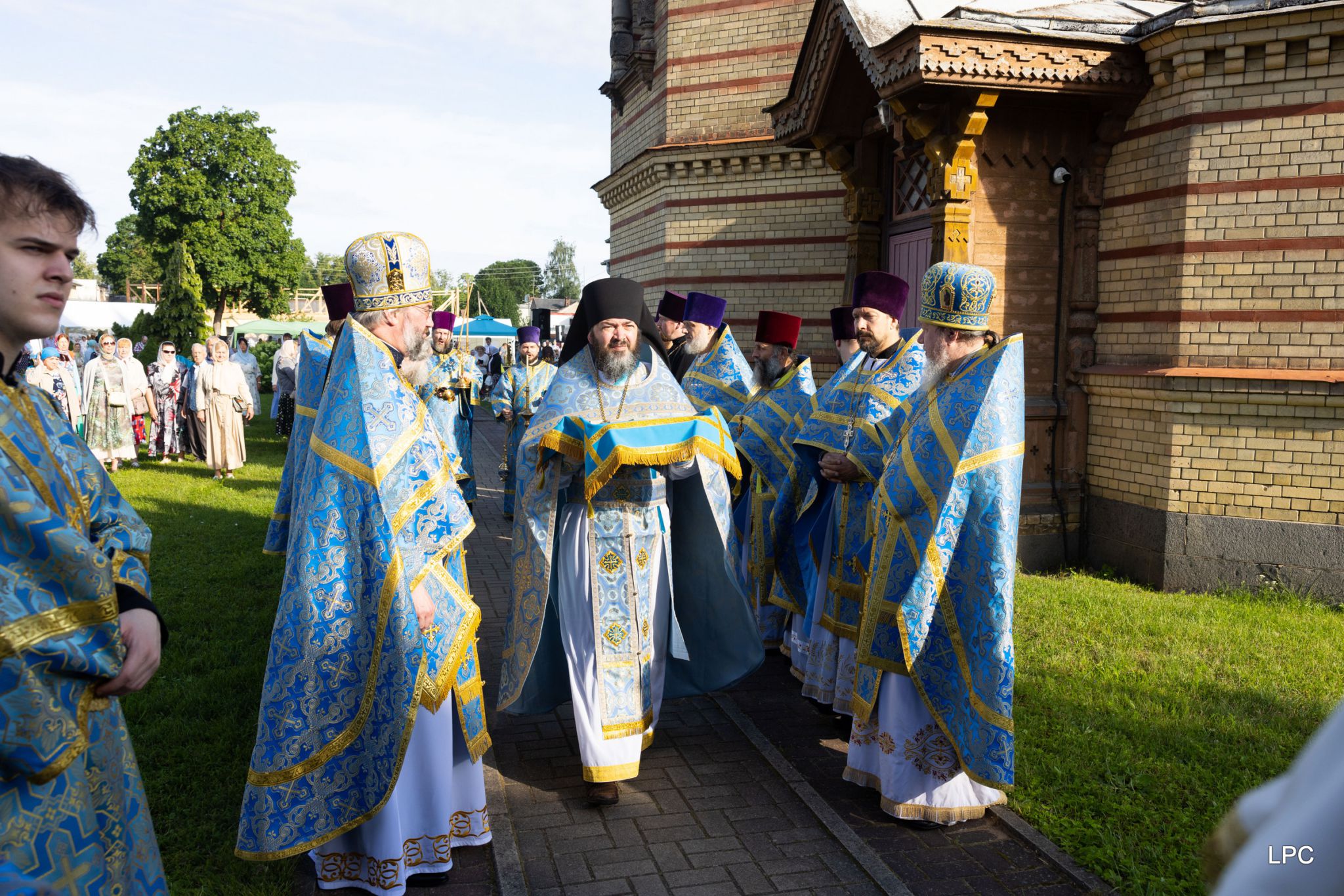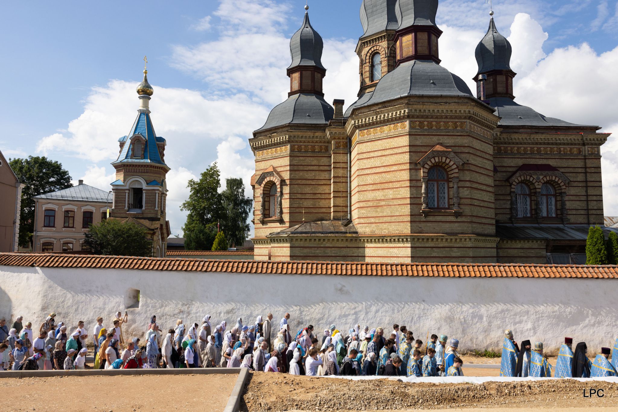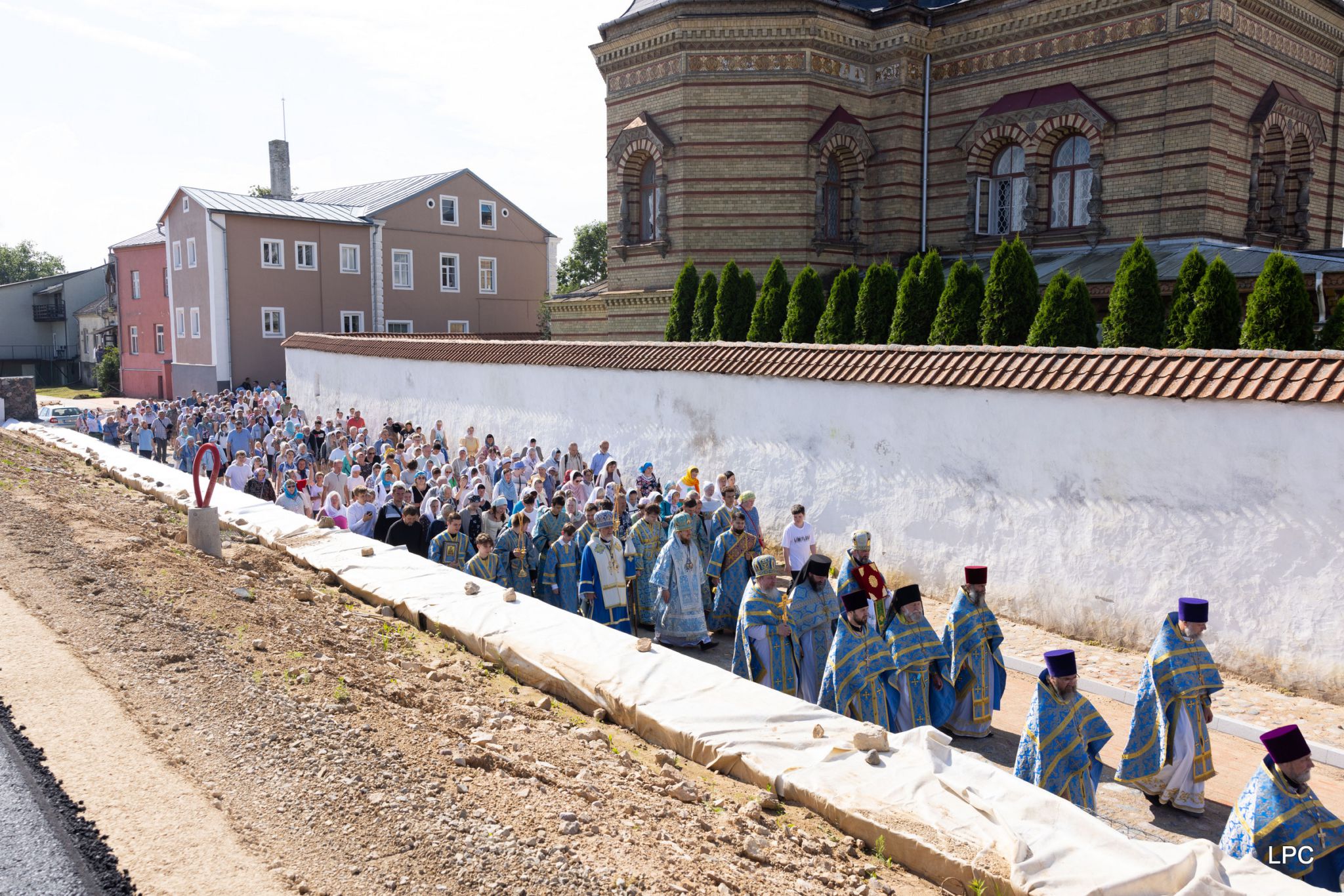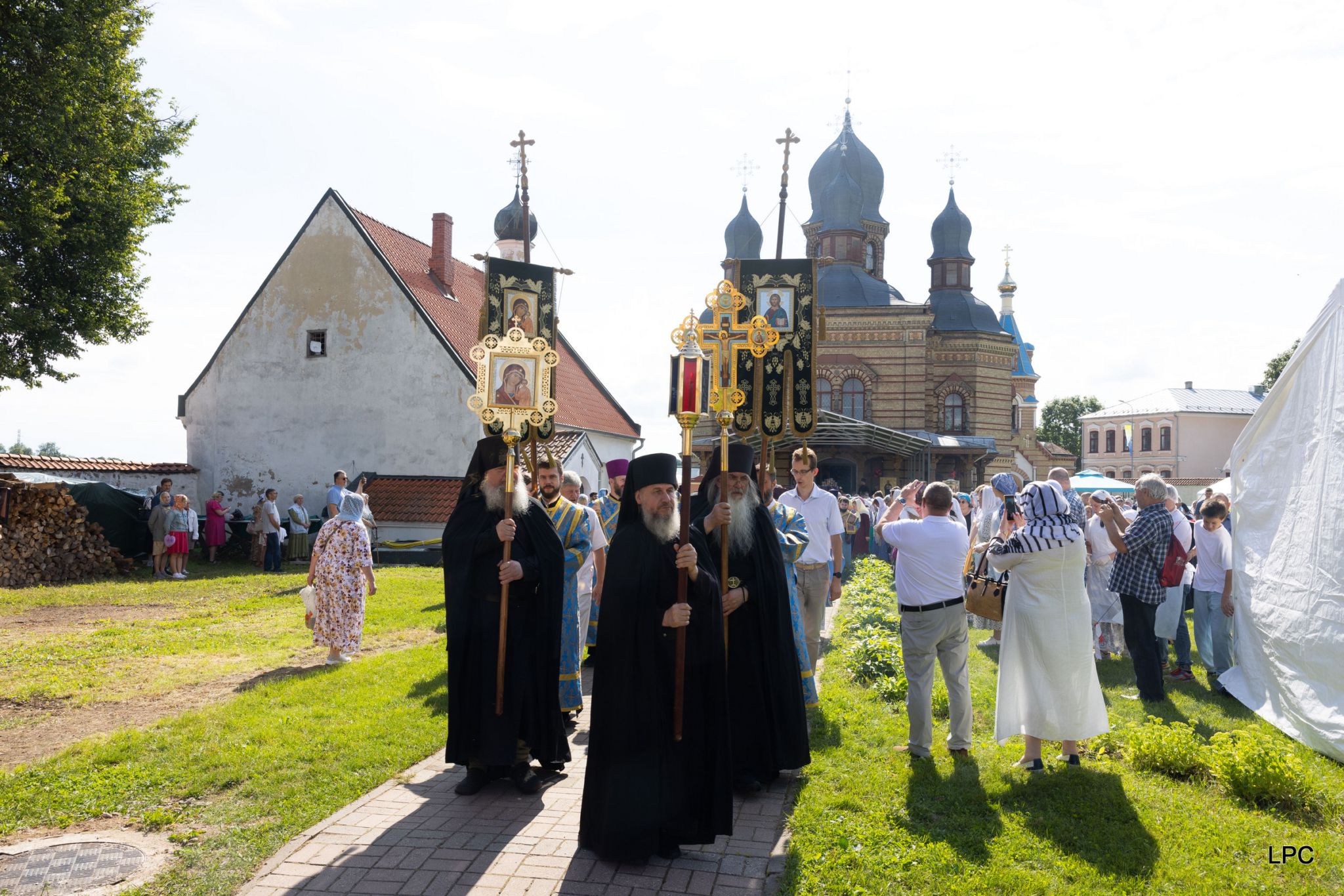 После отпуста литургии был совершён молебен с крестным ходом вокруг монастыря, во время которого священнослужители возносили прошения об умножении мира и милости Божией ко всей земле латвийской. А по отпусте молебна, после уставных многолетий, Владыка Архиепископ произнёс проповедь.