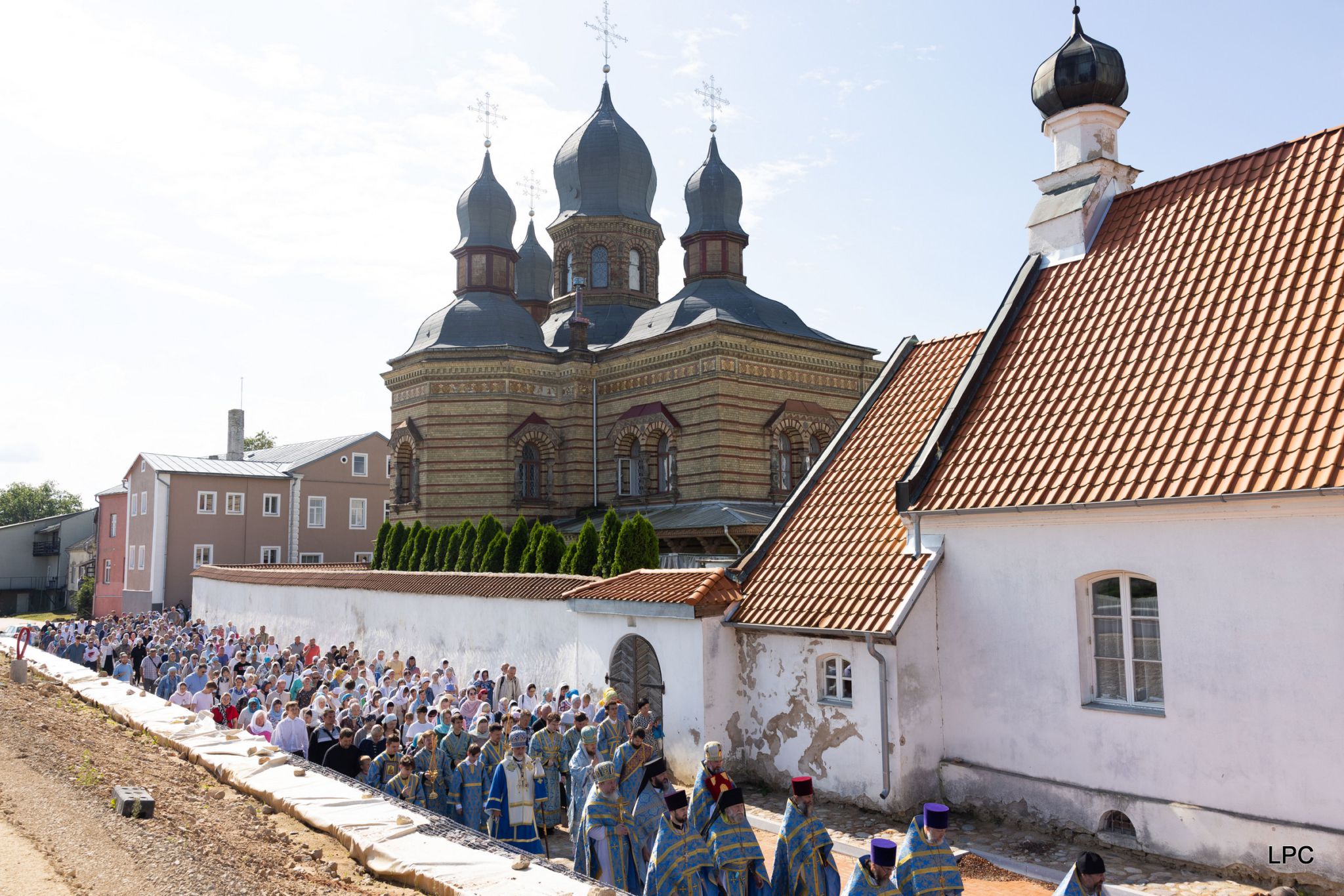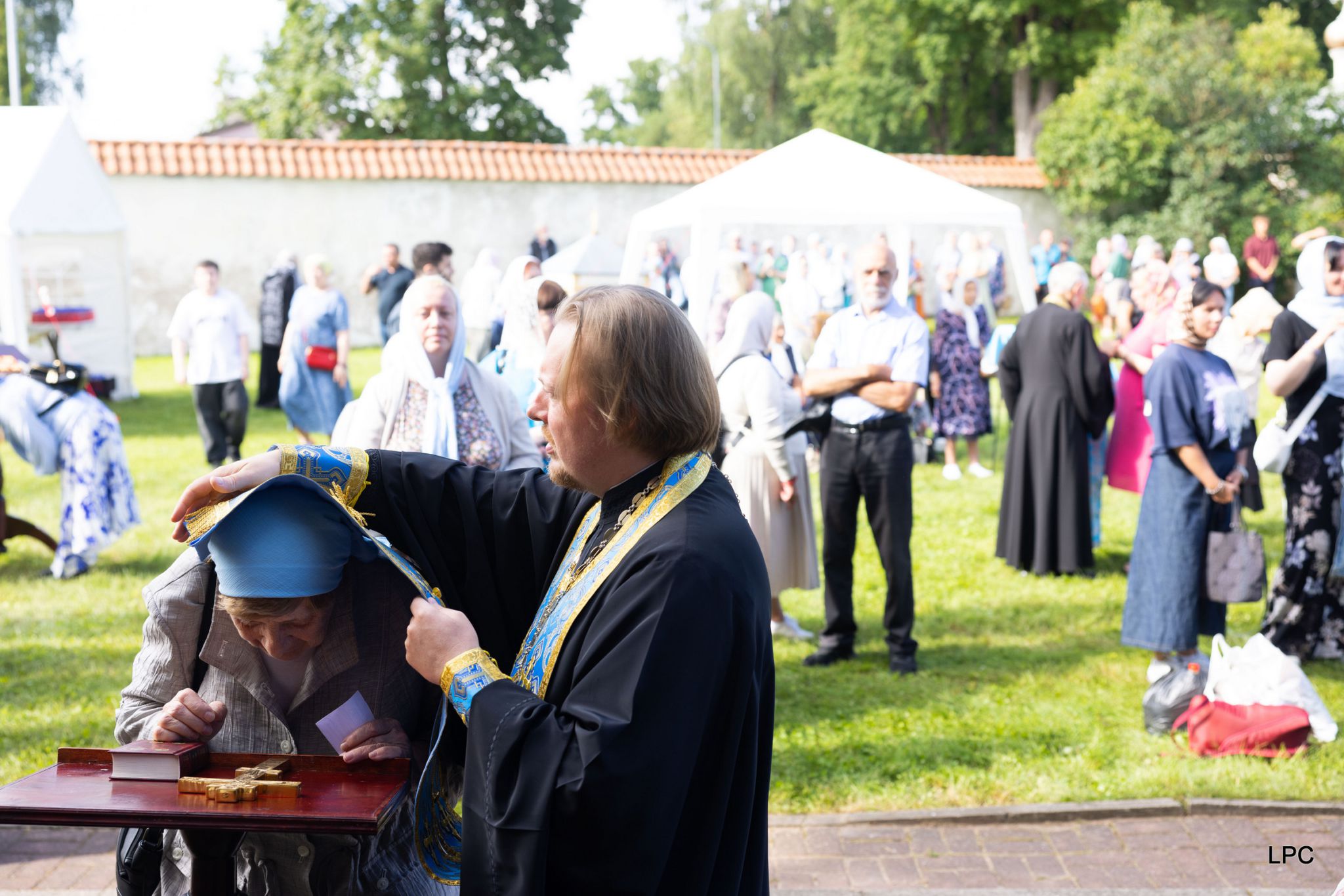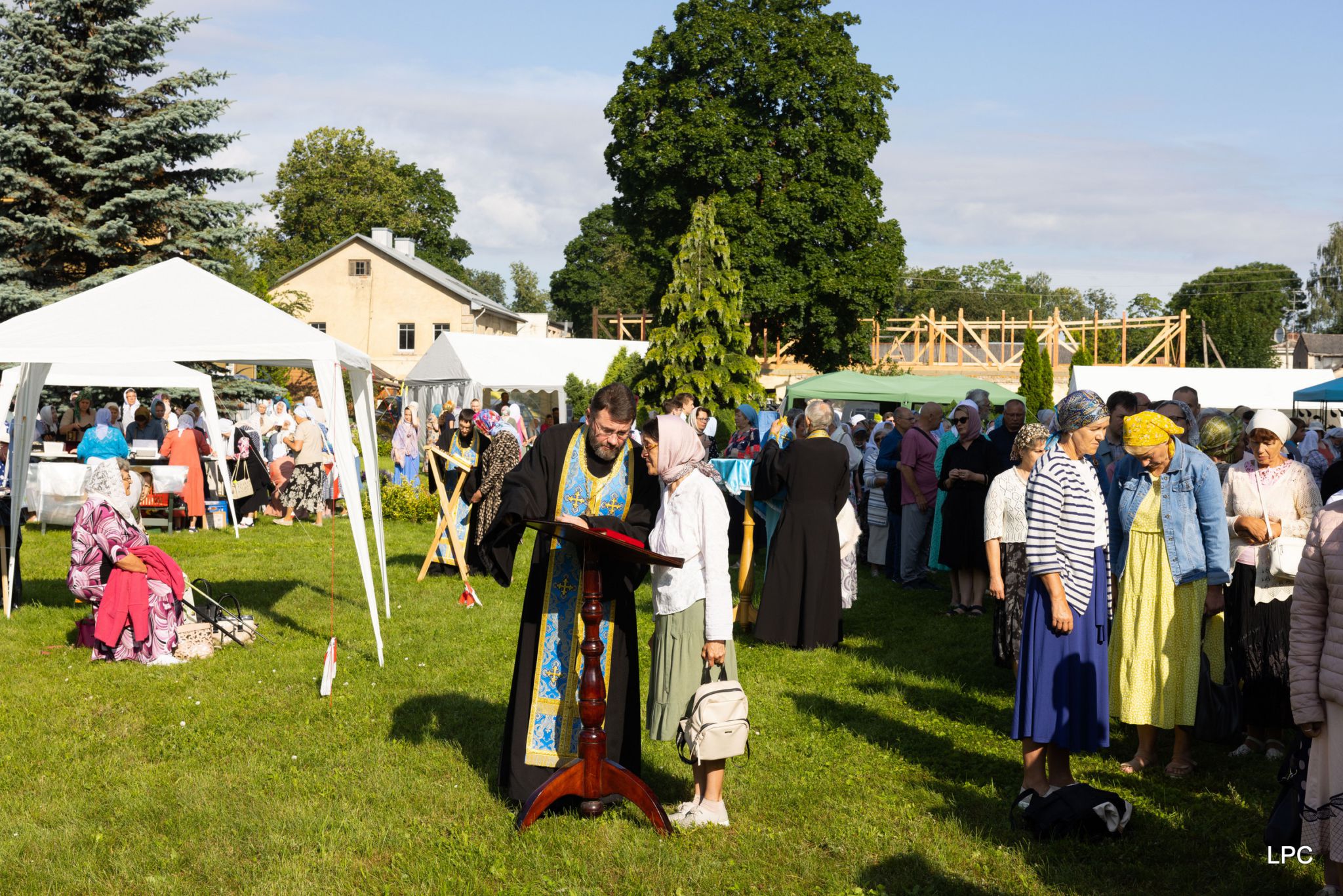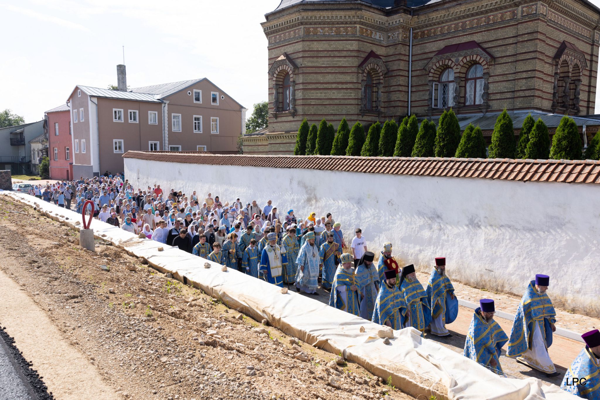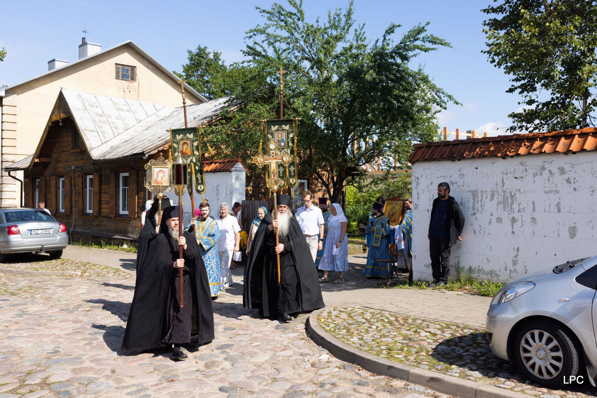 После отпуста литургии был совершён молебен с крестным ходом вокруг монастыря, во время которого священнослужители возносили прошения об умножении мира и милости Божией ко всей земле латвийской. А по отпусте молебна, после уставных многолетий, Владыка Архиепископ произнёс проповедь.