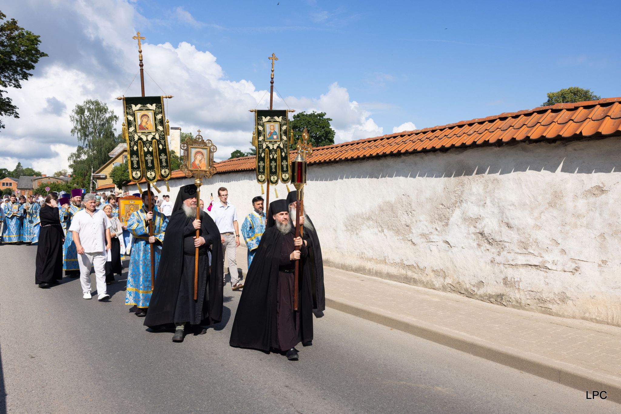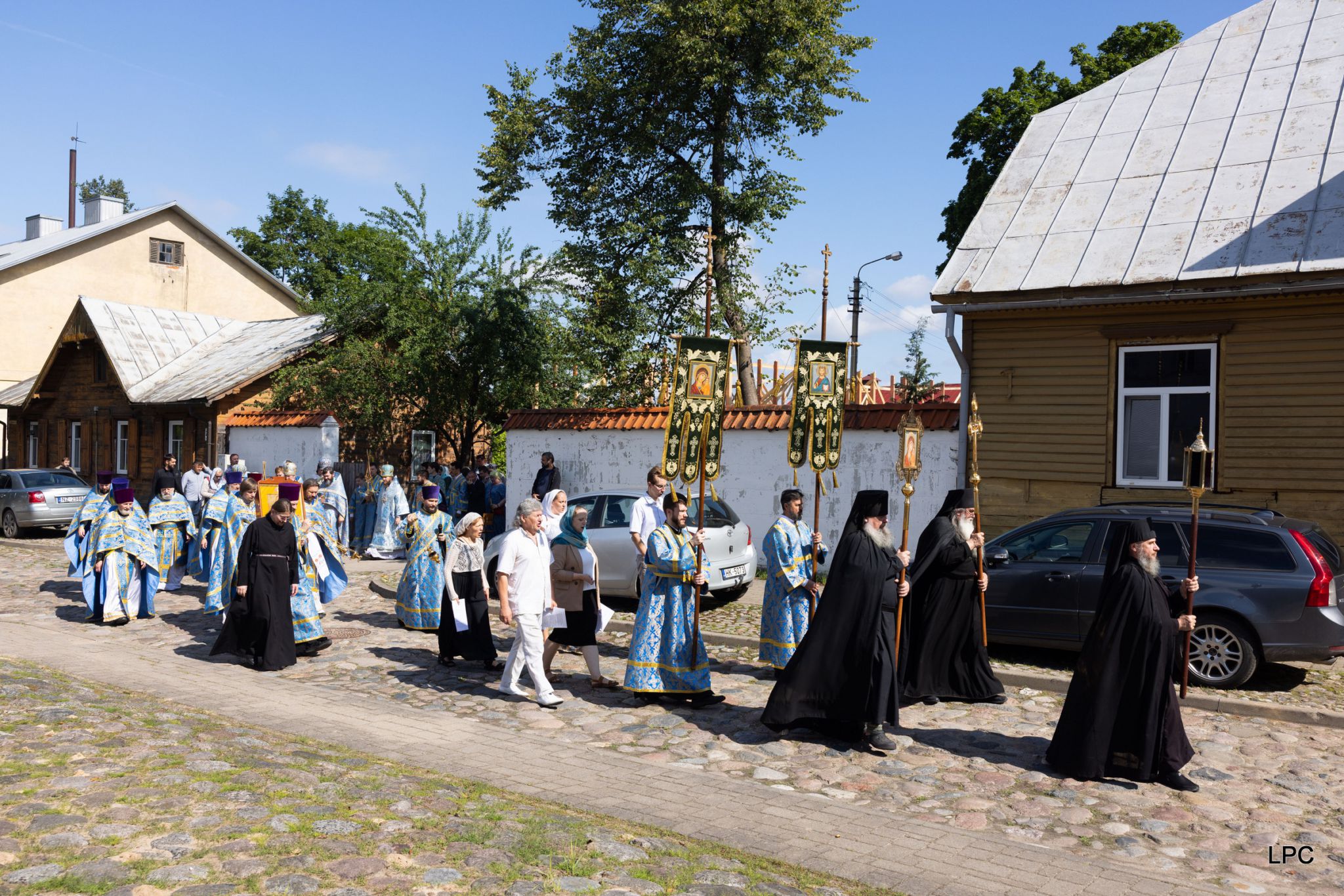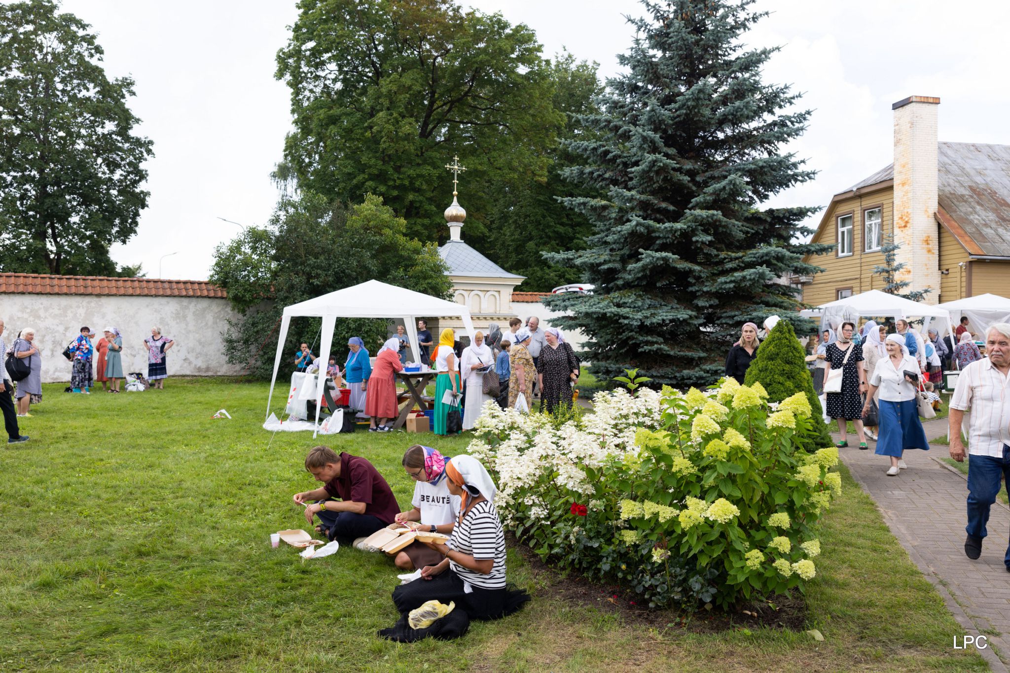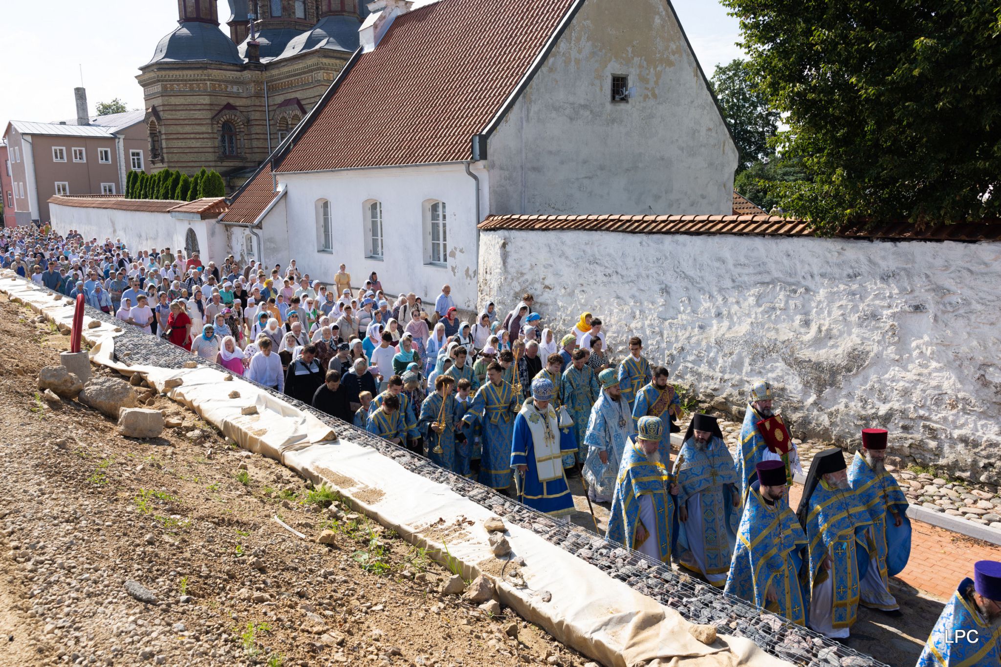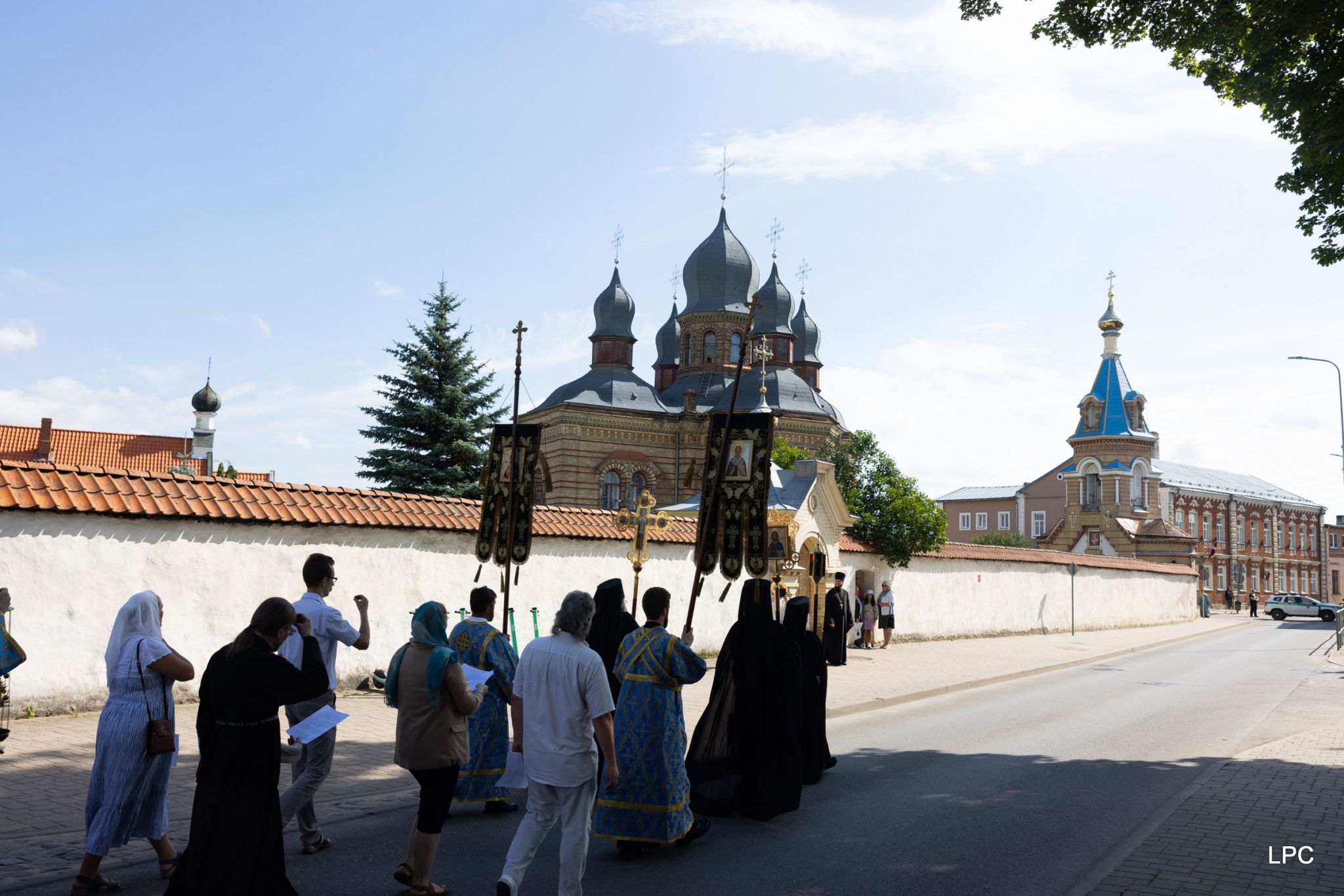 После отпуста литургии был совершён молебен с крестным ходом вокруг монастыря, во время которого священнослужители возносили прошения об умножении мира и милости Божией ко всей земле латвийской. А по отпусте молебна, после уставных многолетий, Владыка Архиепископ произнёс проповедь.