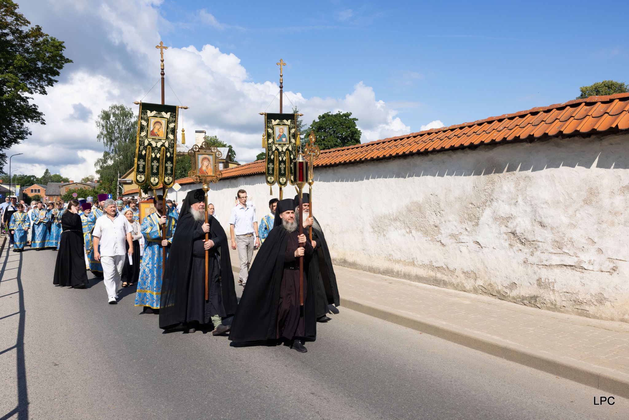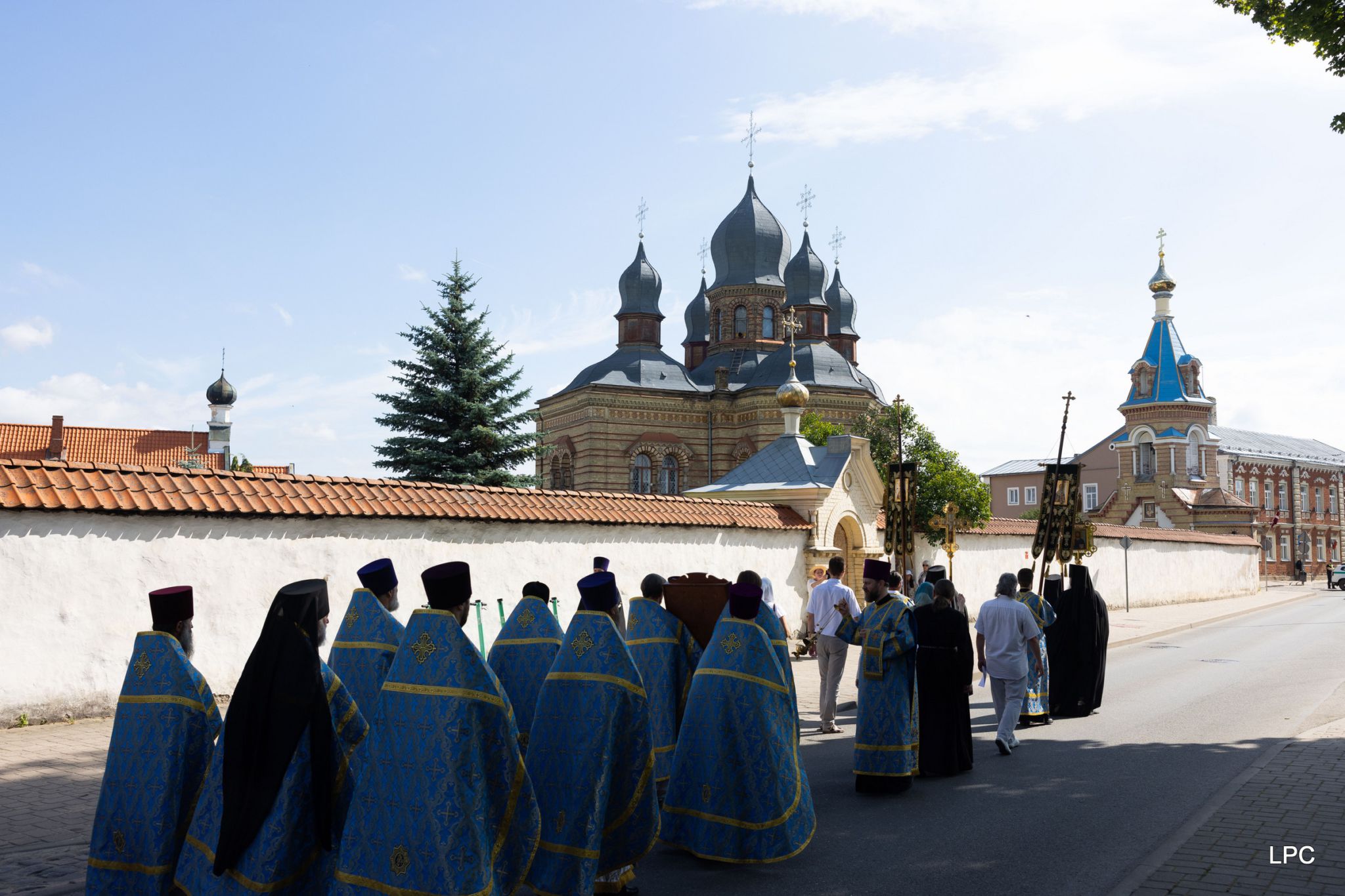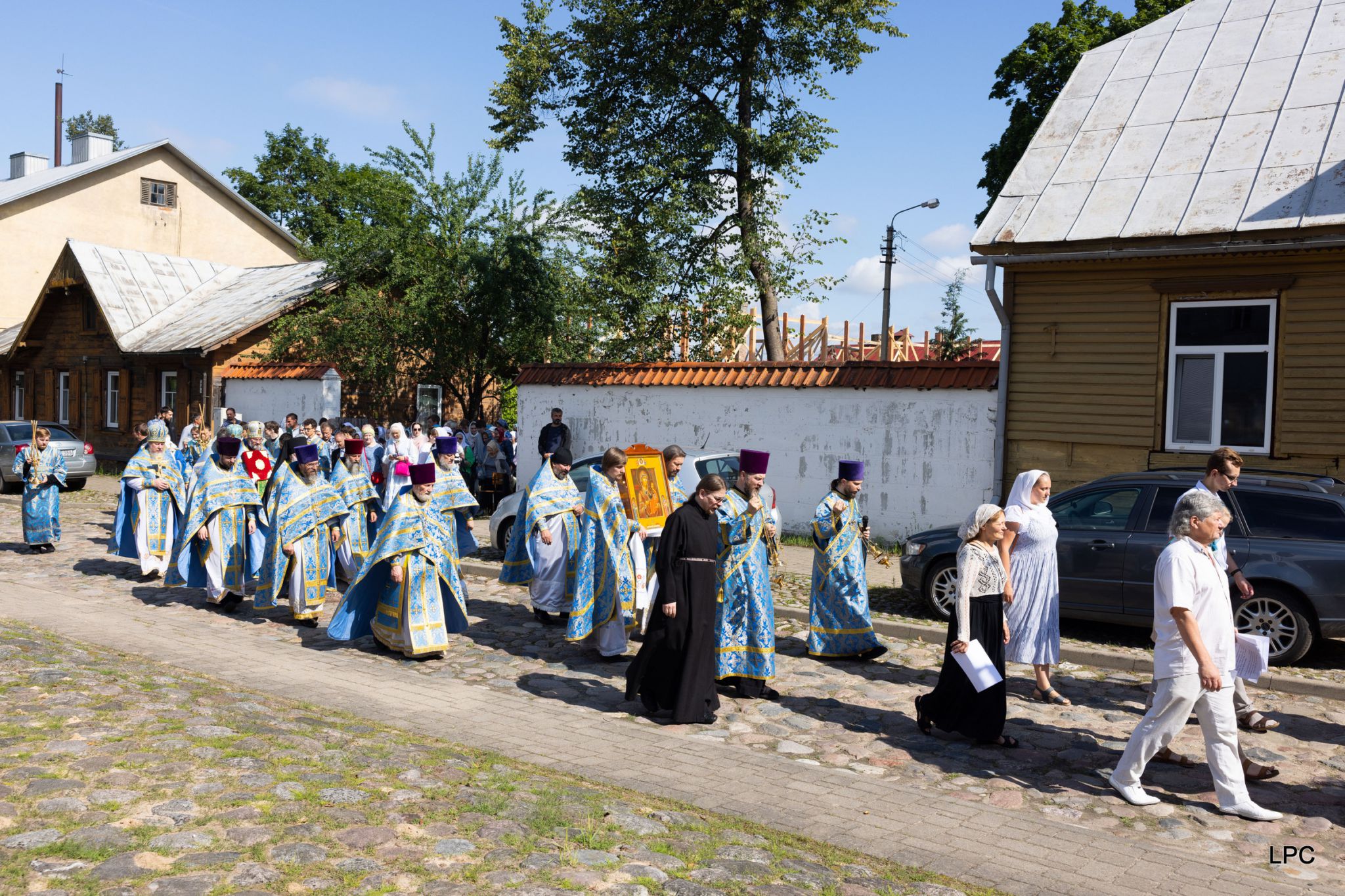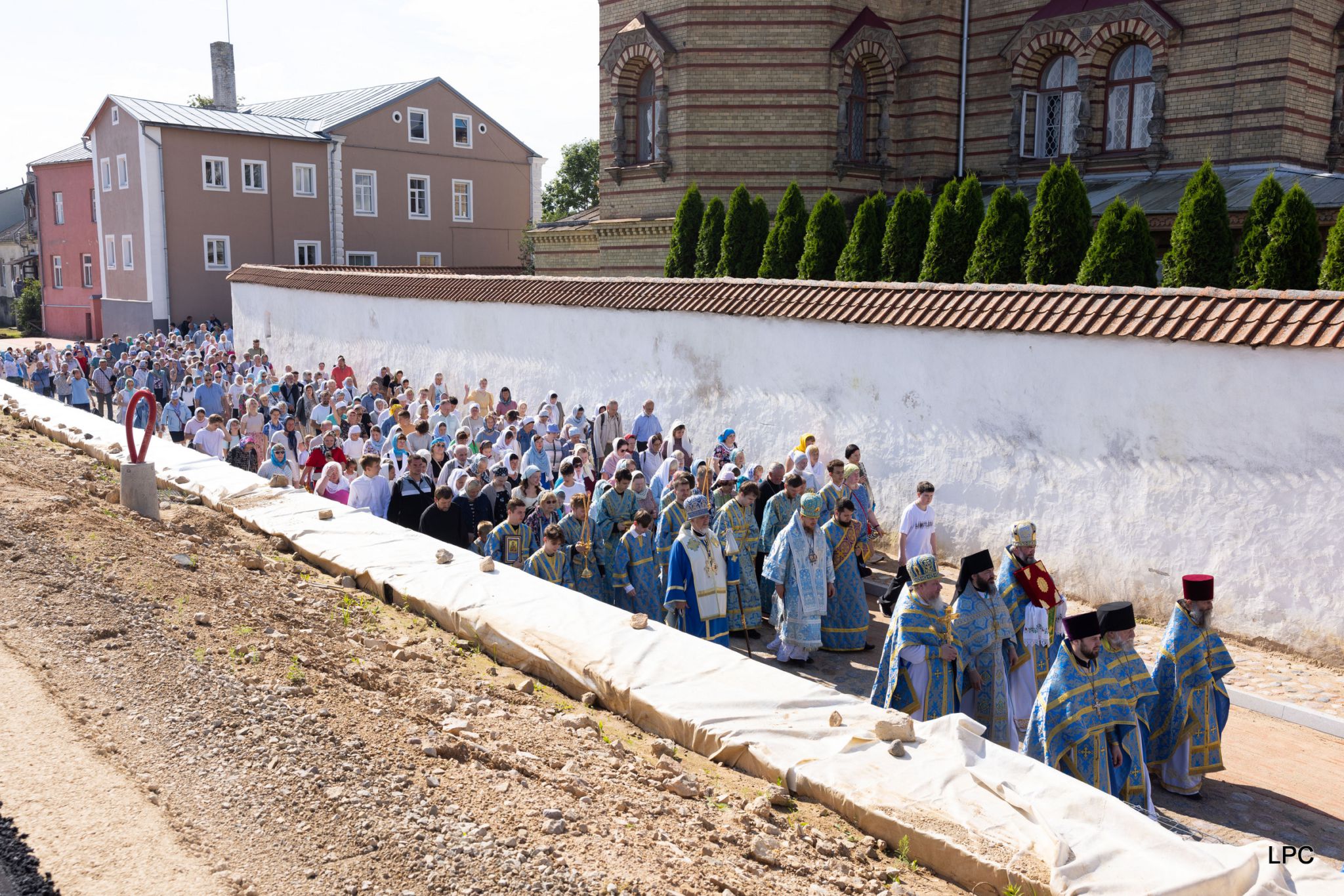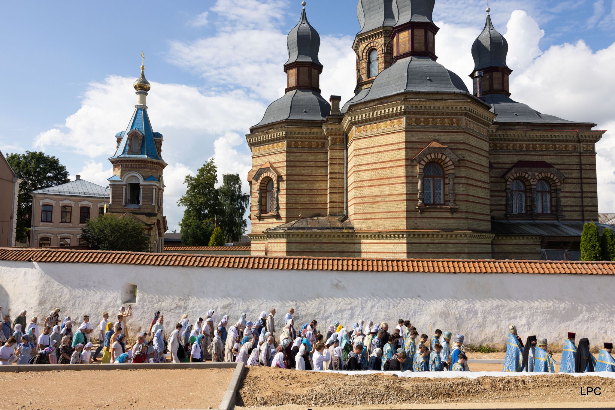 После отпуста литургии был совершён молебен с крестным ходом вокруг монастыря, во время которого священнослужители возносили прошения об умножении мира и милости Божией ко всей земле латвийской. А по отпусте молебна, после уставных многолетий, Владыка Архиепископ произнёс проповедь.