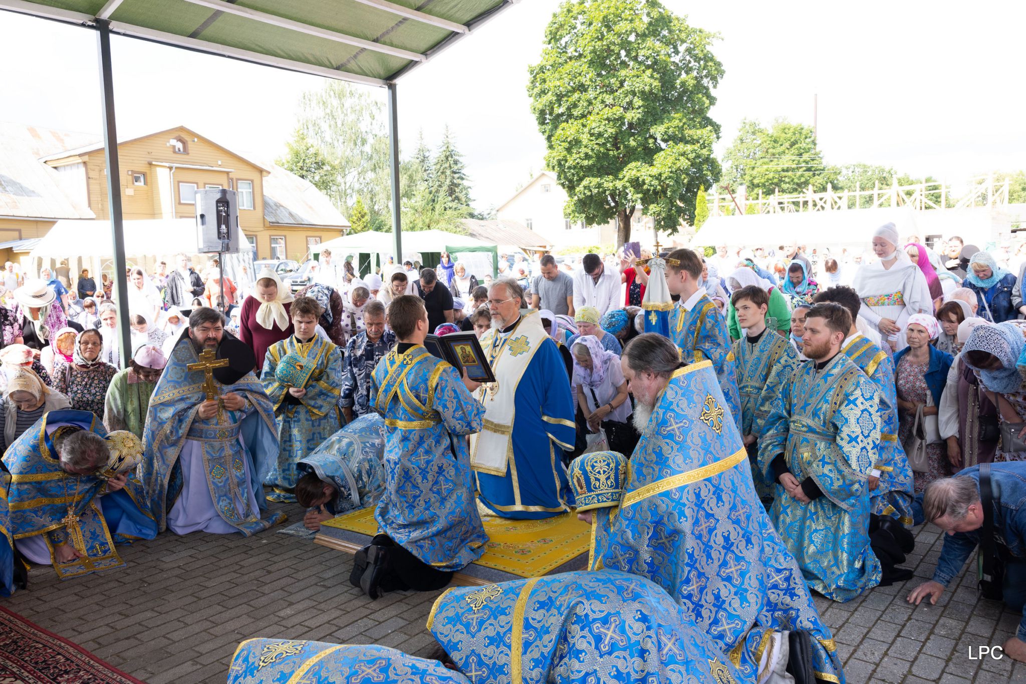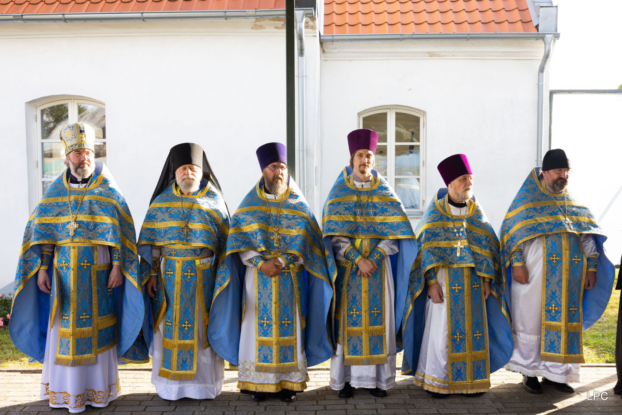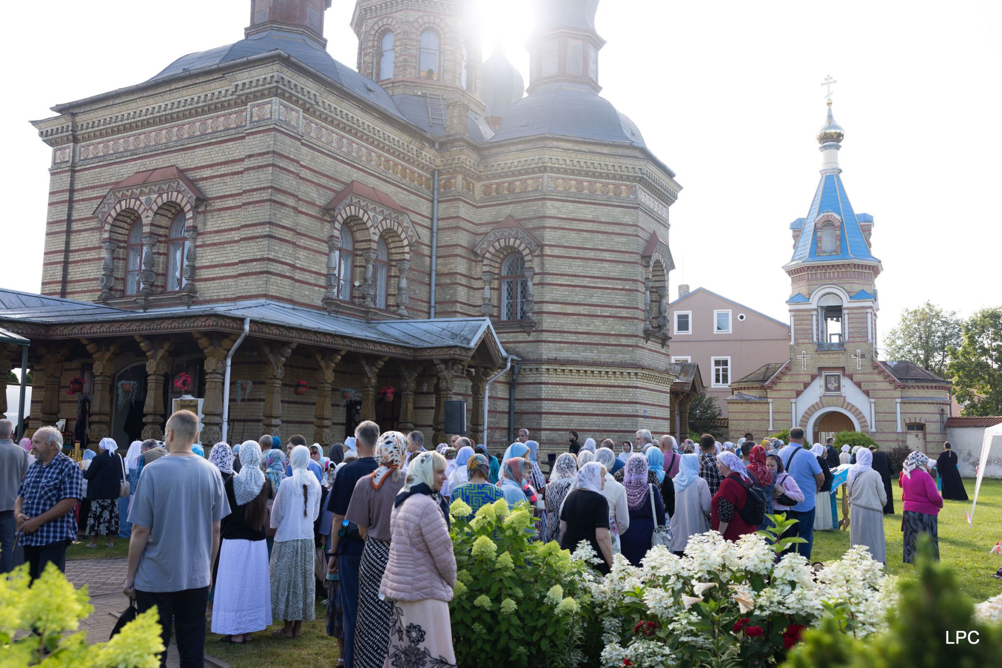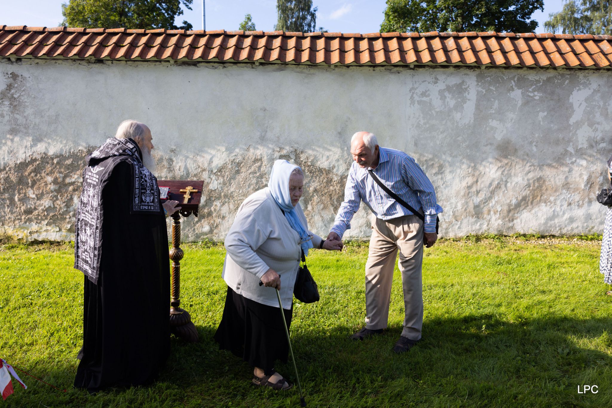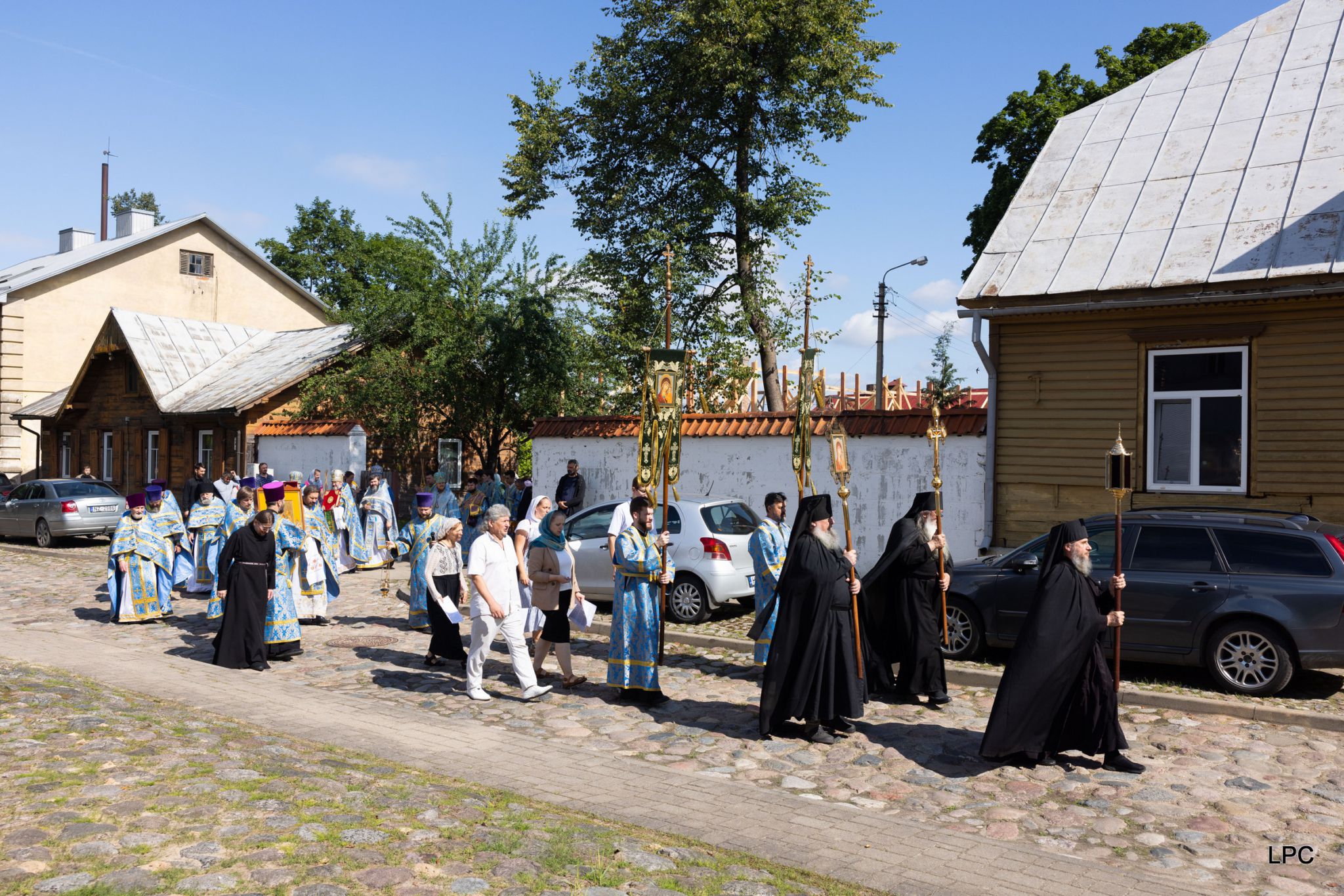 После отпуста литургии был совершён молебен с крестным ходом вокруг монастыря, во время которого священнослужители возносили прошения об умножении мира и милости Божией ко всей земле латвийской. А по отпусте молебна, после уставных многолетий, Владыка Архиепископ произнёс проповедь.