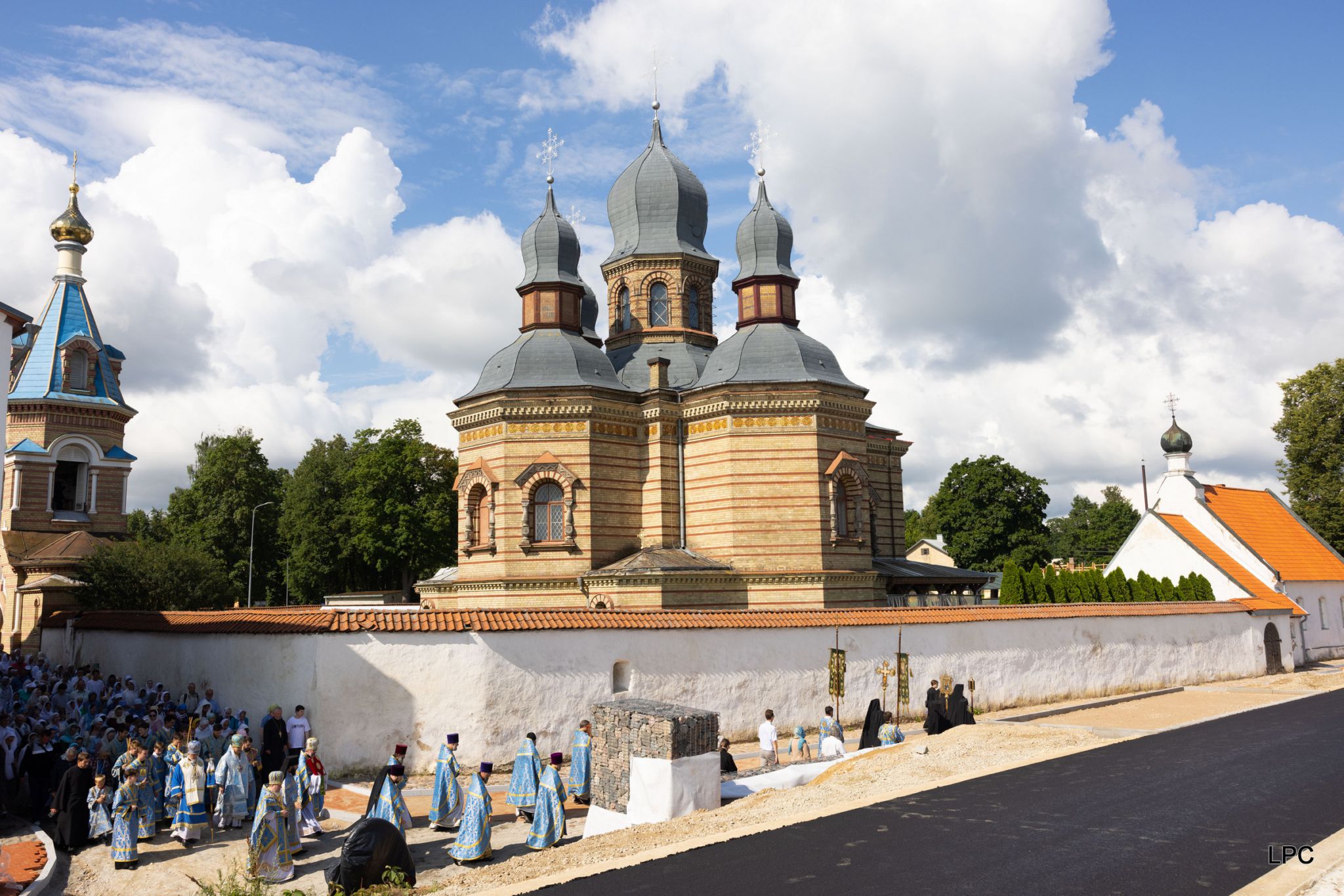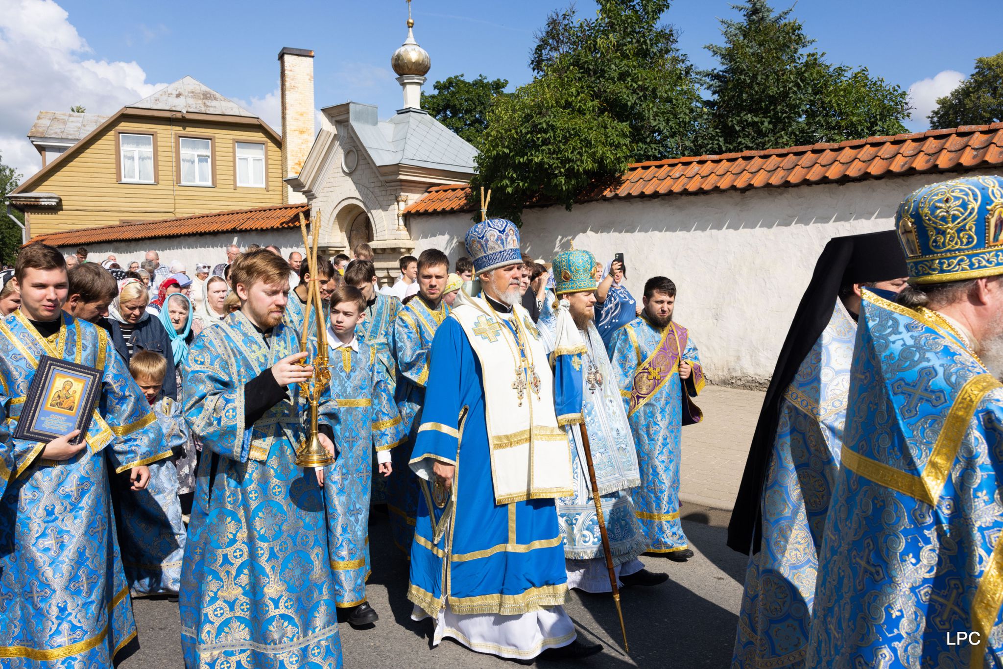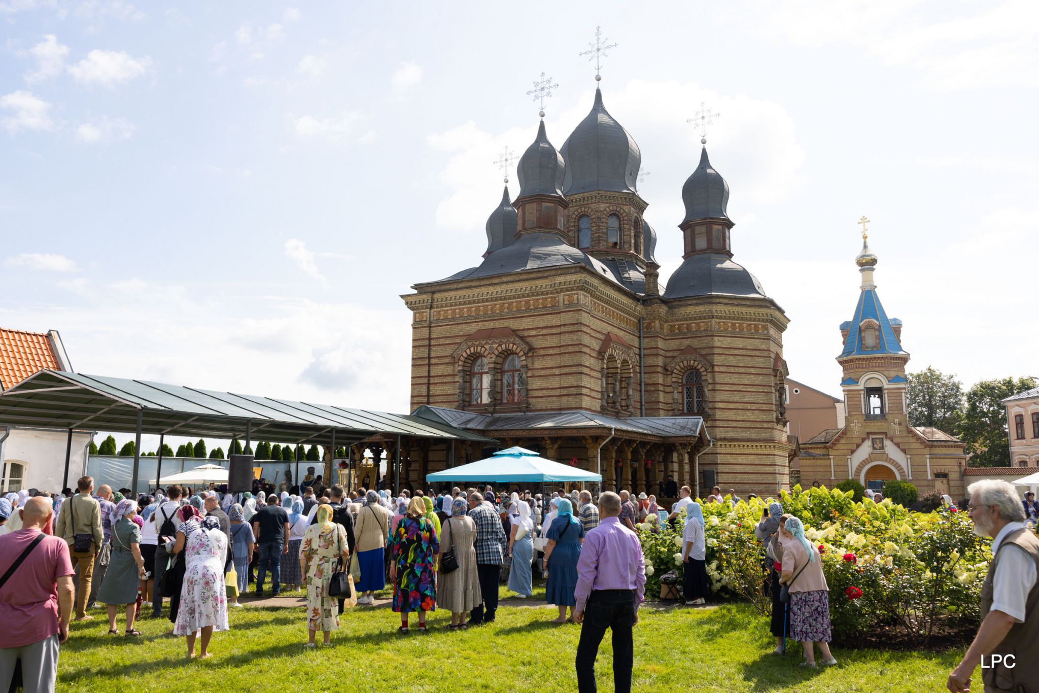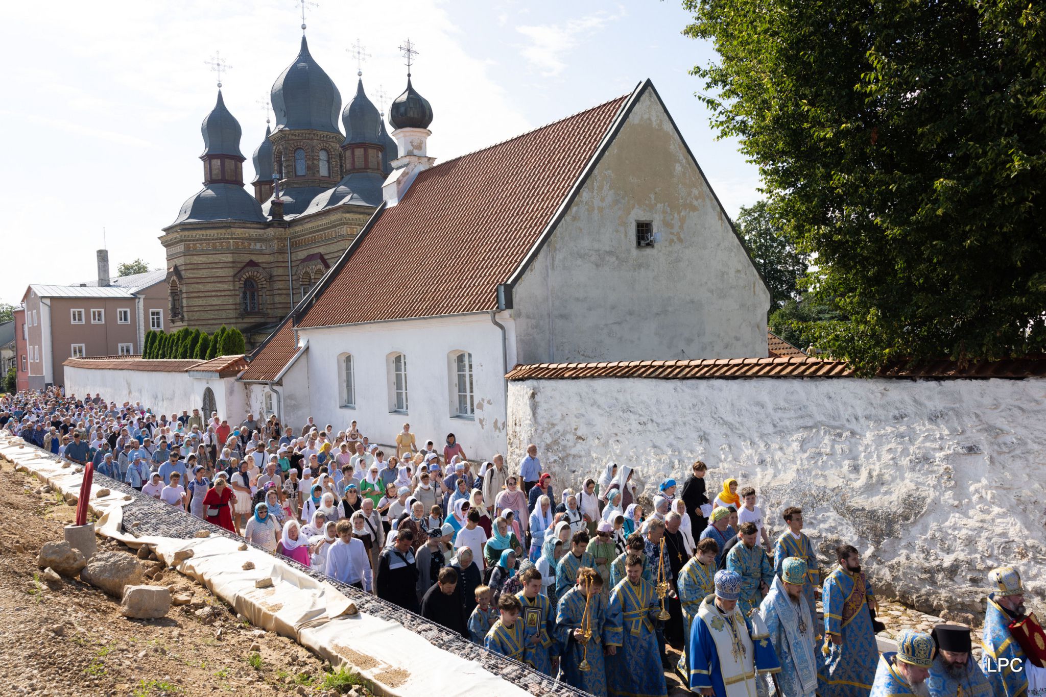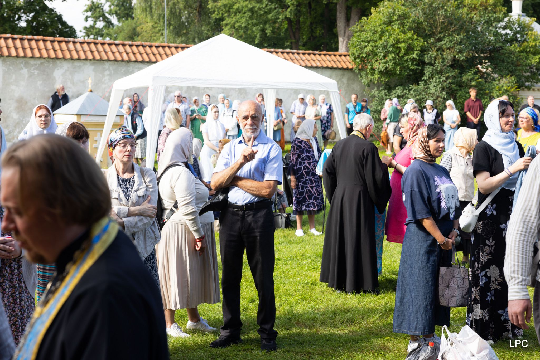 После отпуста литургии был совершён молебен с крестным ходом вокруг монастыря, во время которого священнослужители возносили прошения об умножении мира и милости Божией ко всей земле латвийской. А по отпусте молебна, после уставных многолетий, Владыка Архиепископ произнёс проповедь.