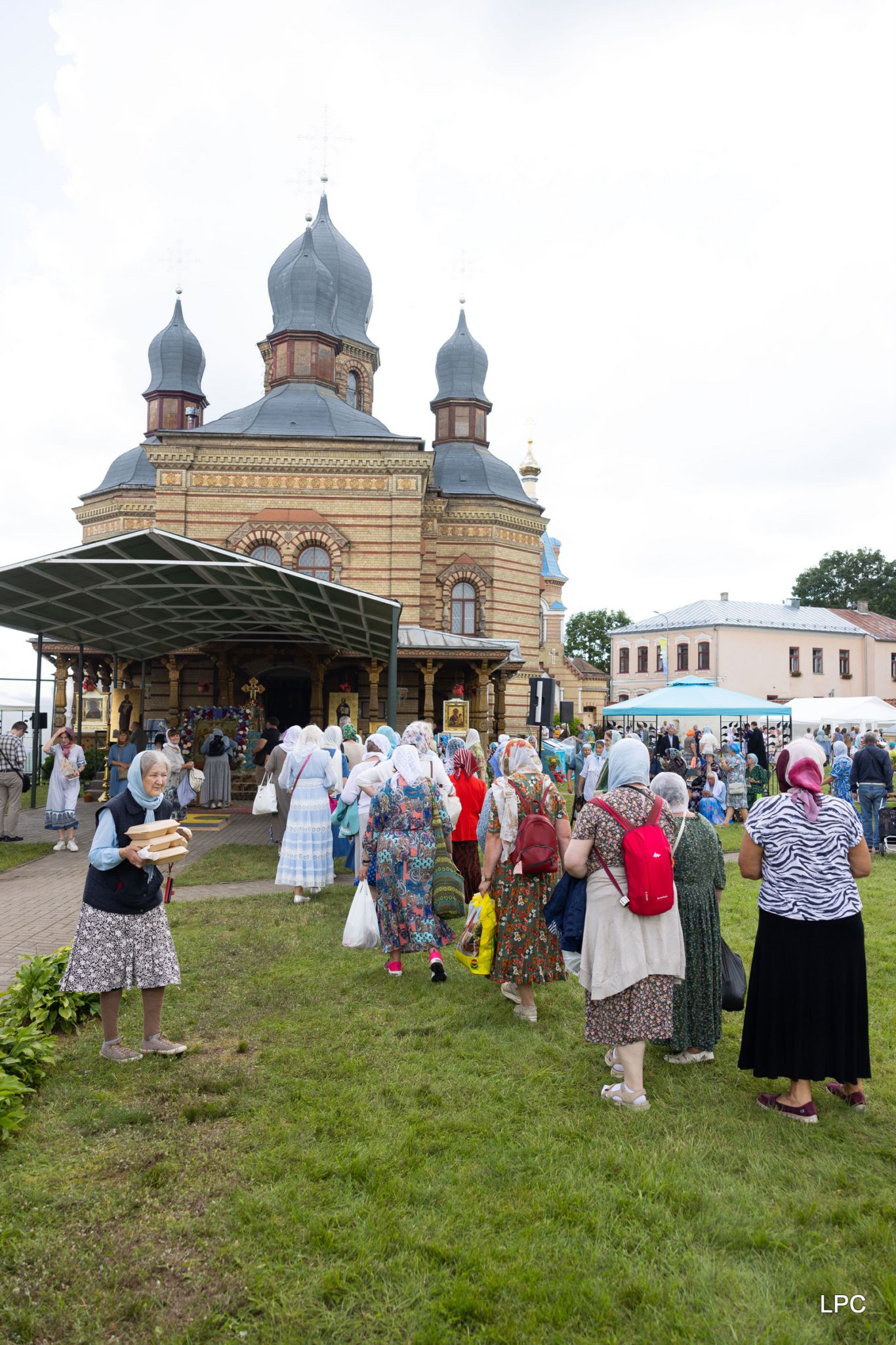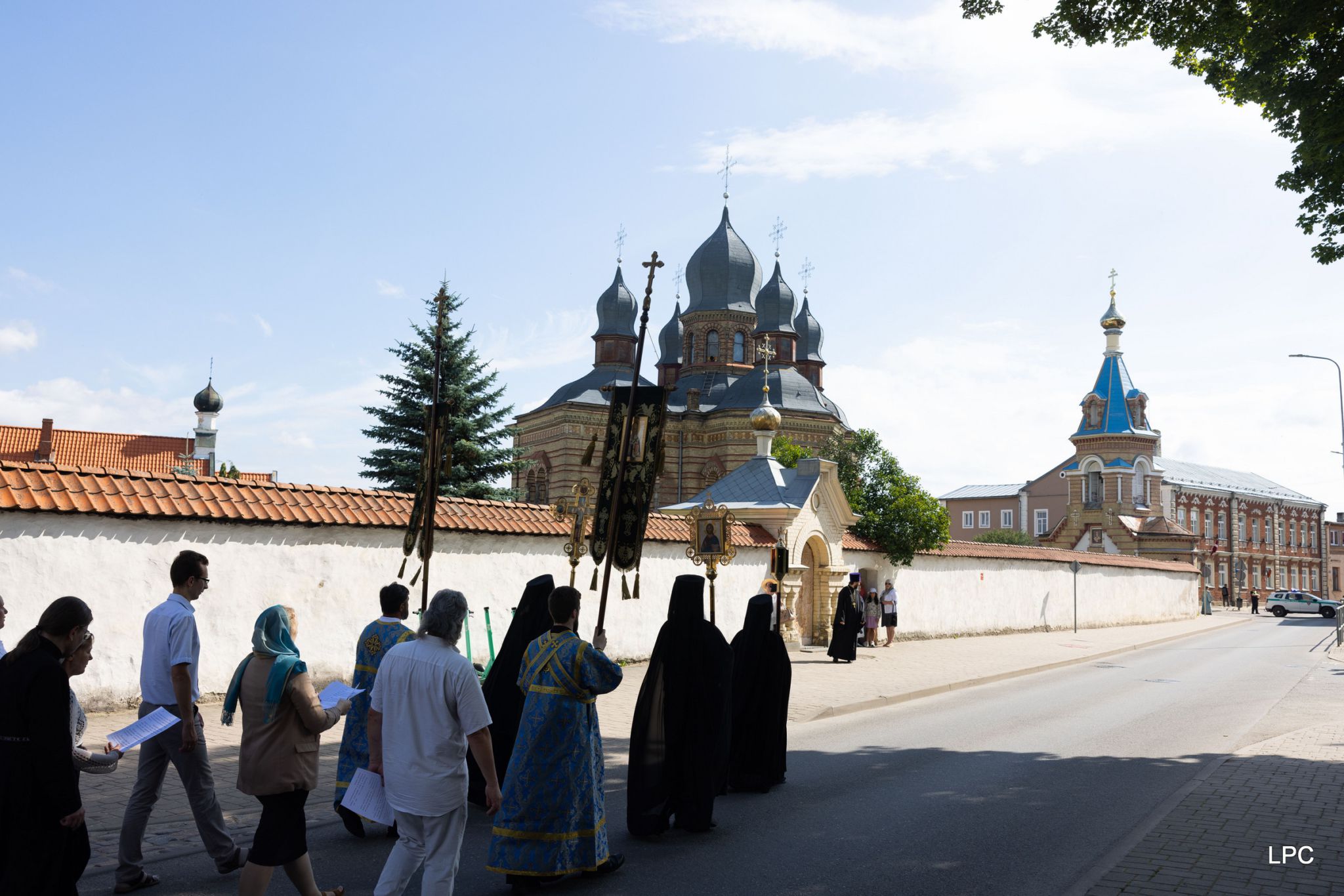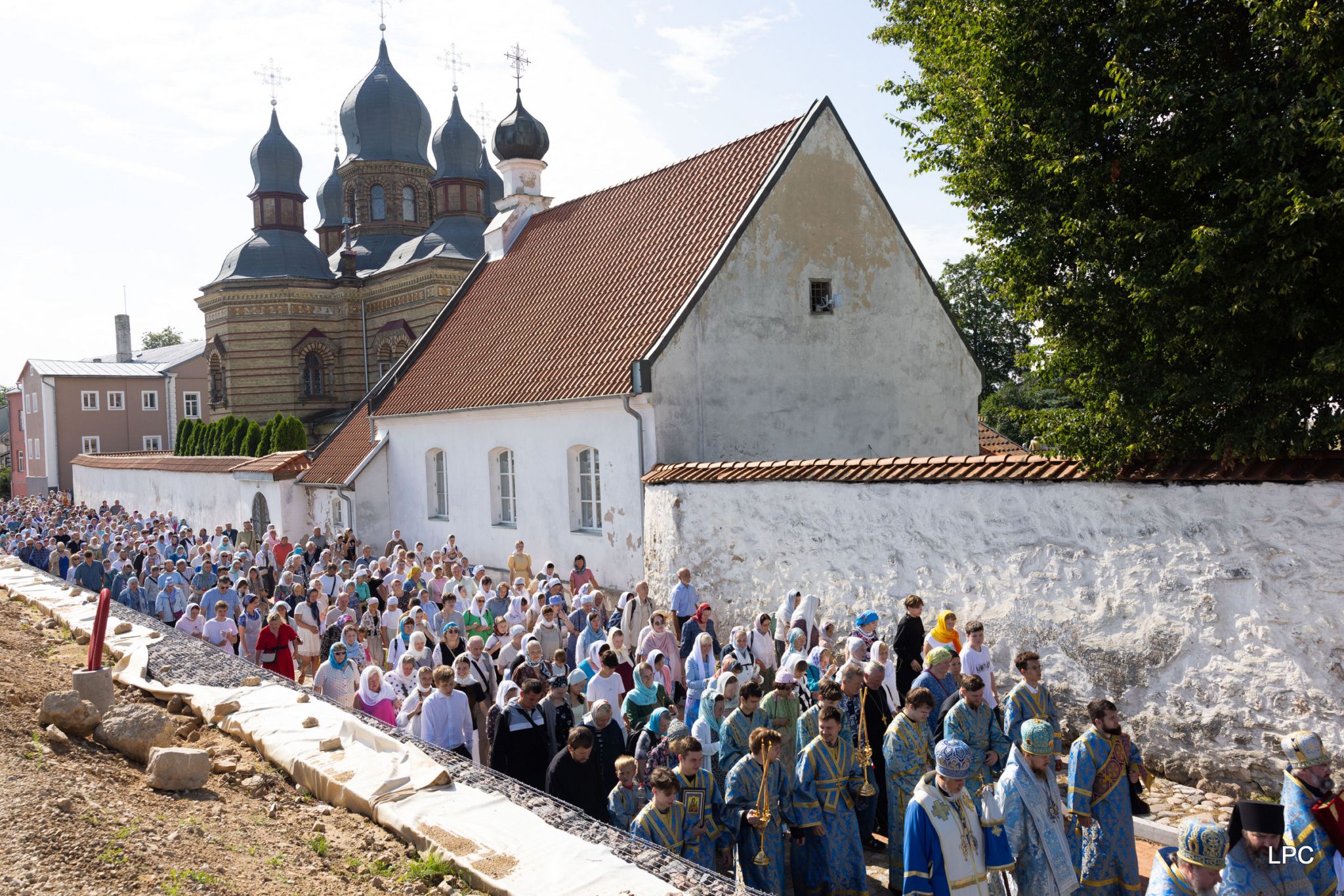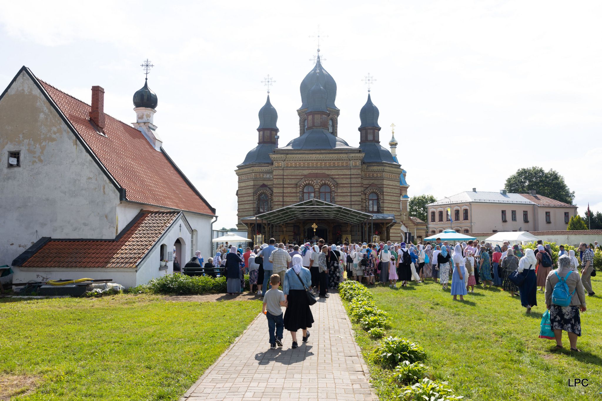 После отпуста литургии был совершён молебен с крестным ходом вокруг монастыря, во время которого священнослужители возносили прошения об умножении мира и милости Божией ко всей земле латвийской. А по отпусте молебна, после уставных многолетий, Владыка Архиепископ произнёс проповедь.