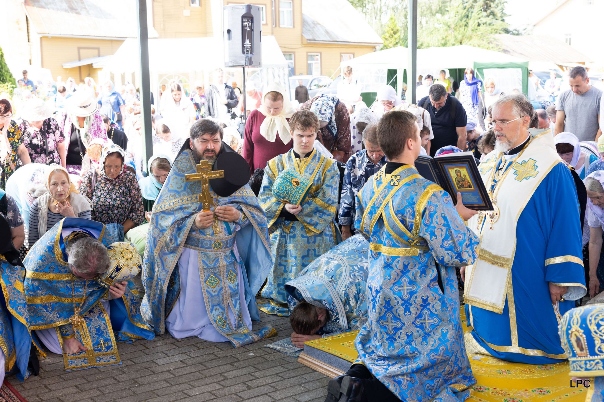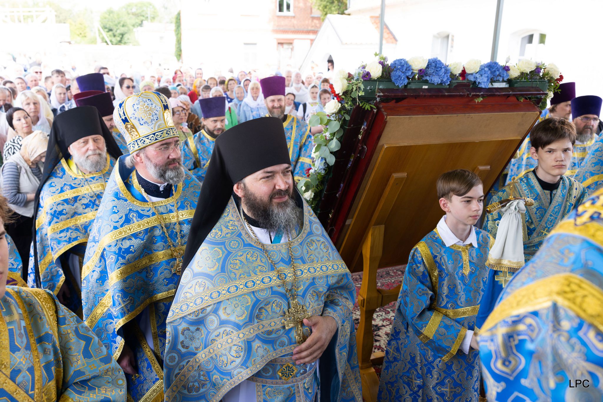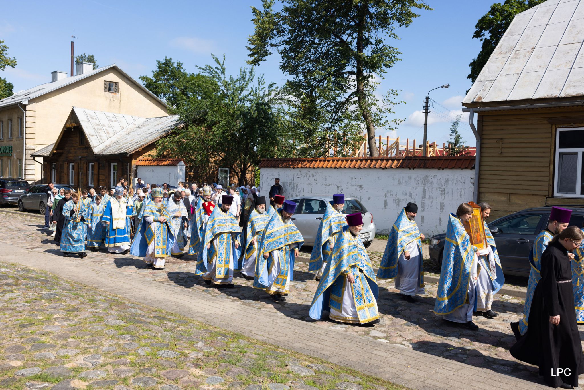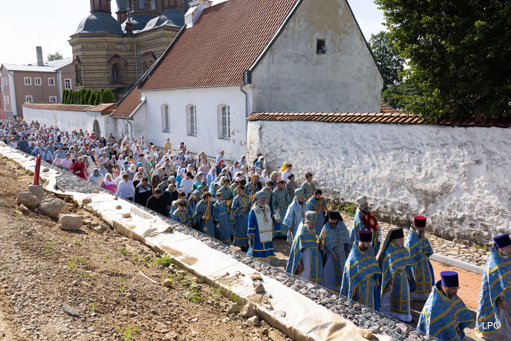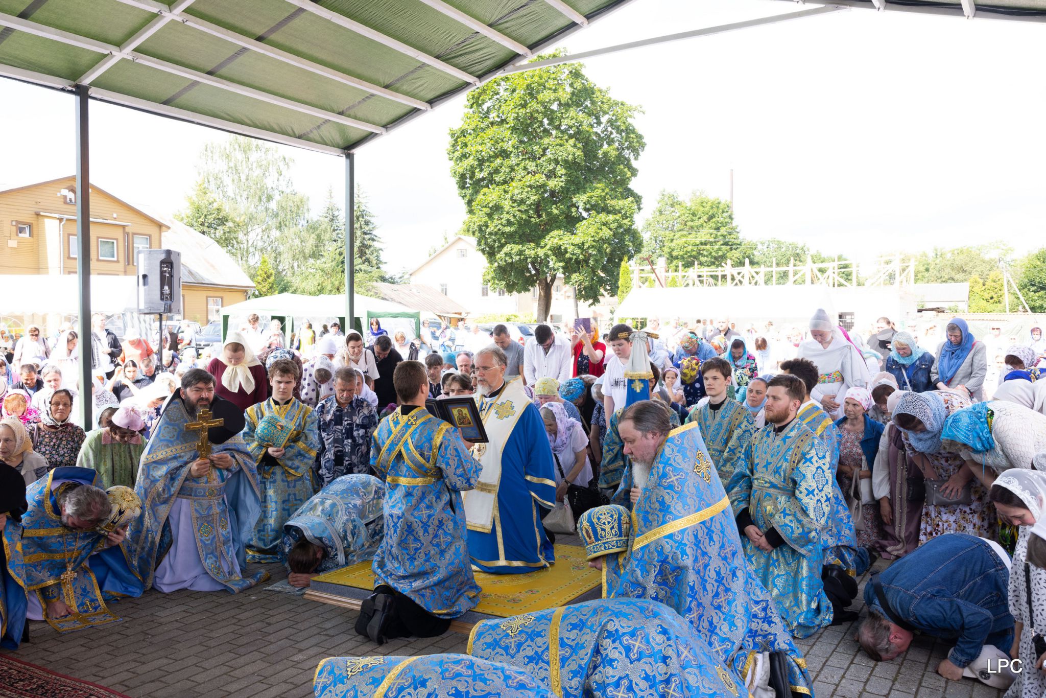 После отпуста литургии был совершён молебен с крестным ходом вокруг монастыря, во время которого священнослужители возносили прошения об умножении мира и милости Божией ко всей земле латвийской. А по отпусте молебна, после уставных многолетий, Владыка Архиепископ произнёс проповедь.