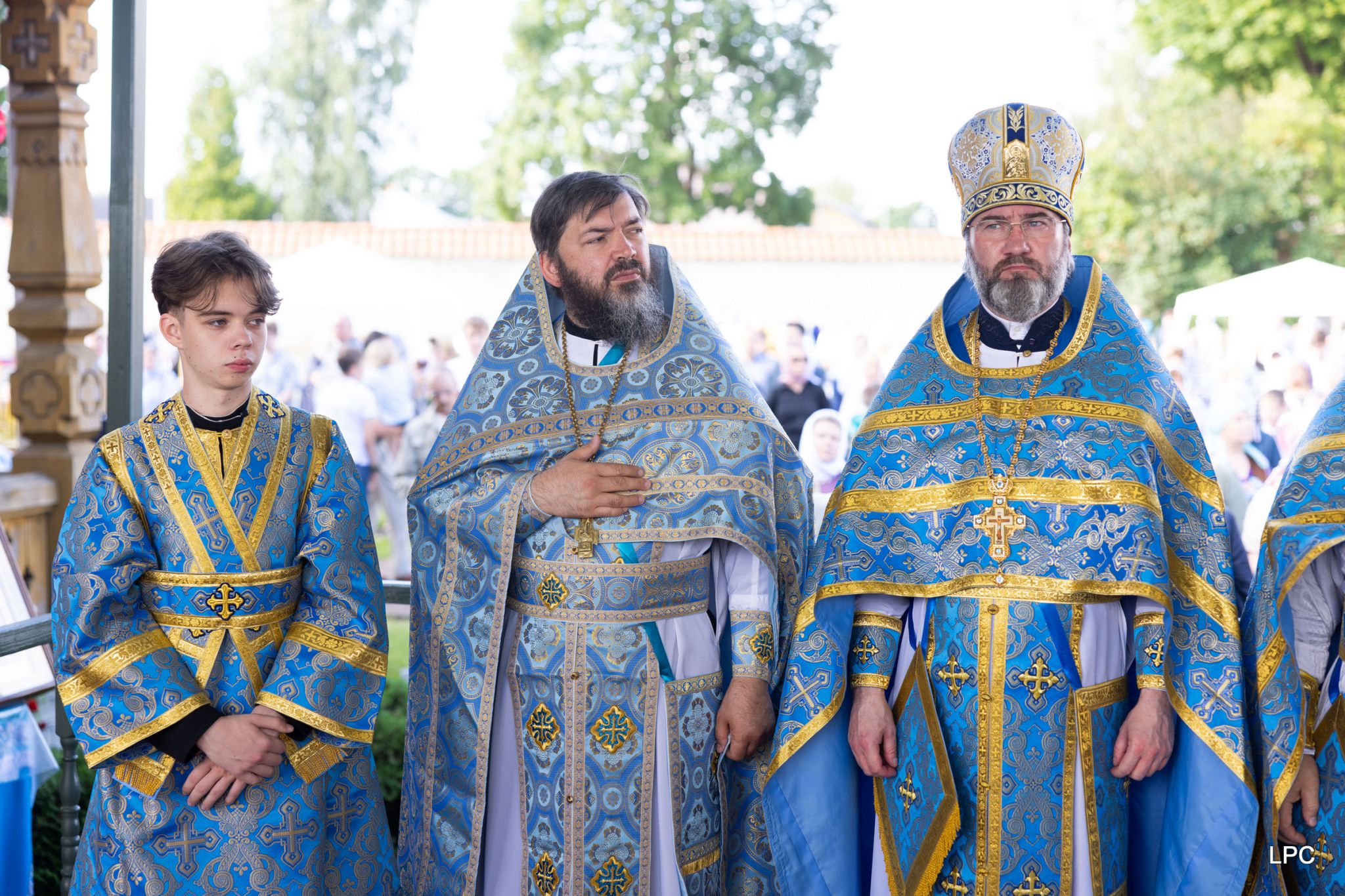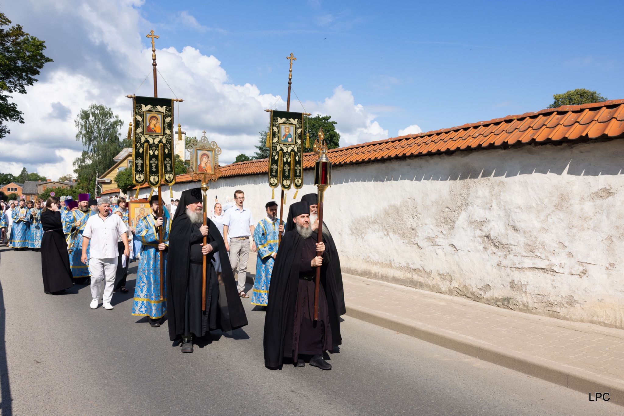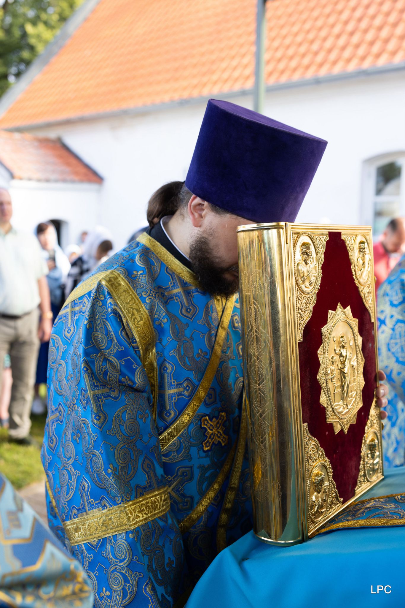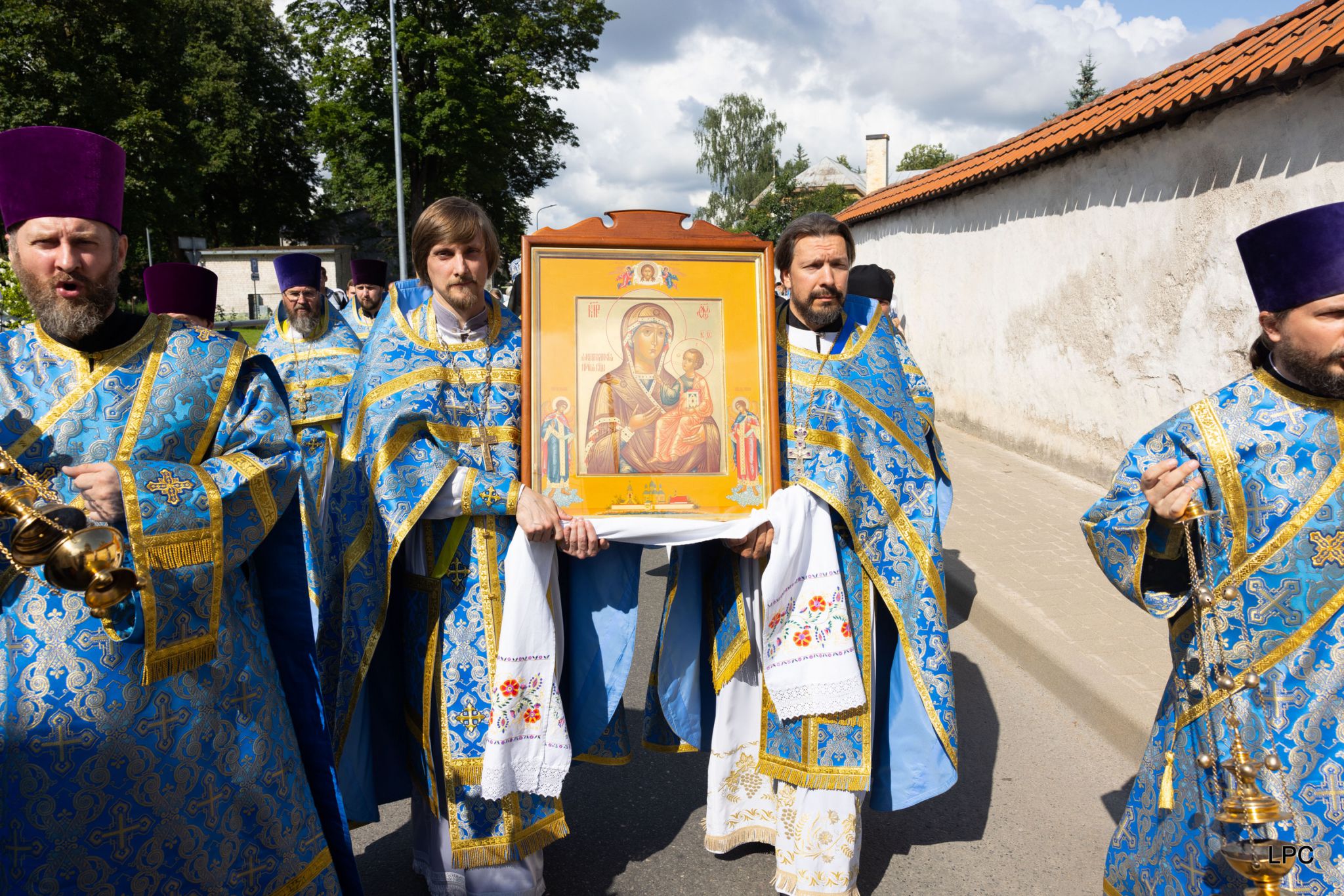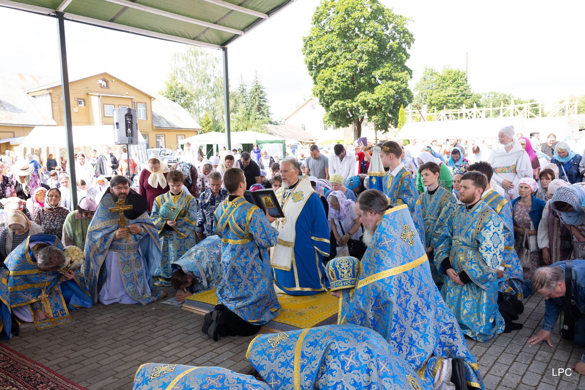 После отпуста литургии был совершён молебен с крестным ходом вокруг монастыря, во время которого священнослужители возносили прошения об умножении мира и милости Божией ко всей земле латвийской. А по отпусте молебна, после уставных многолетий, Владыка Архиепископ произнёс проповедь.