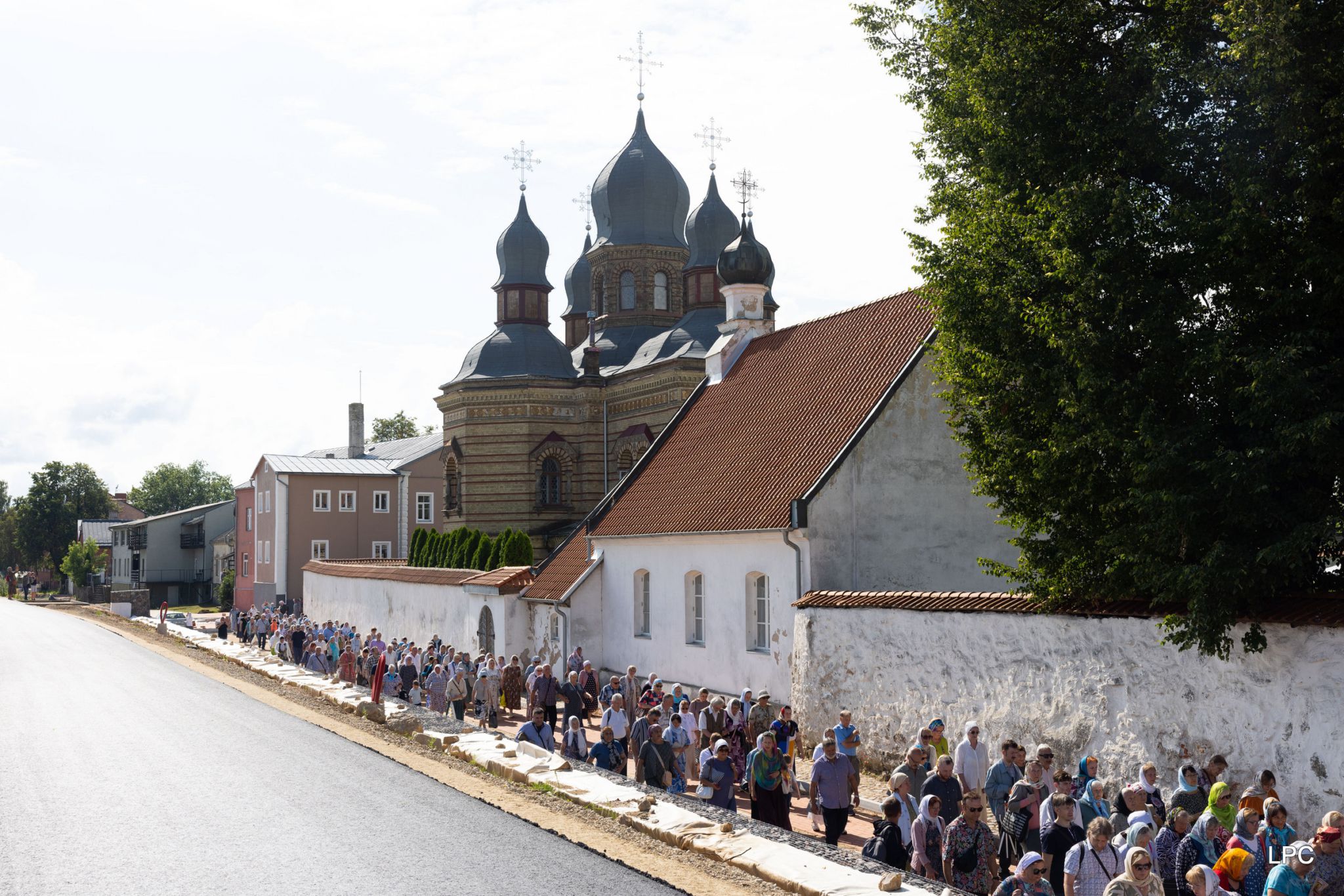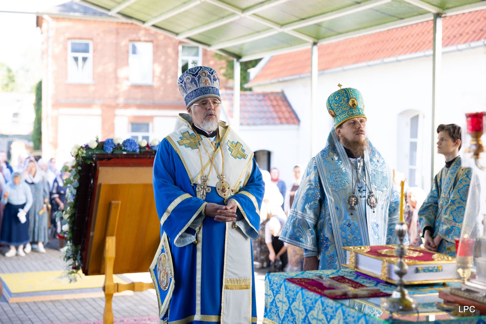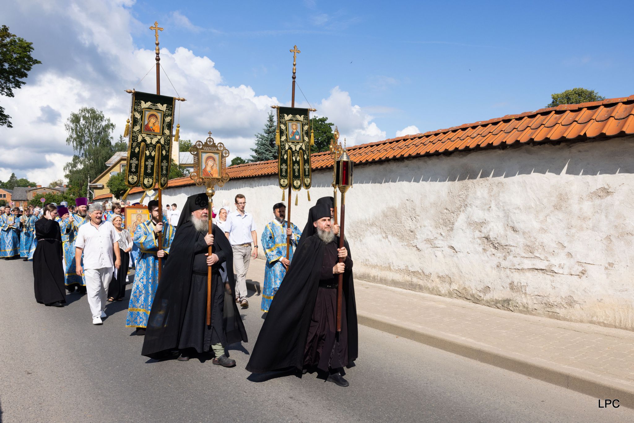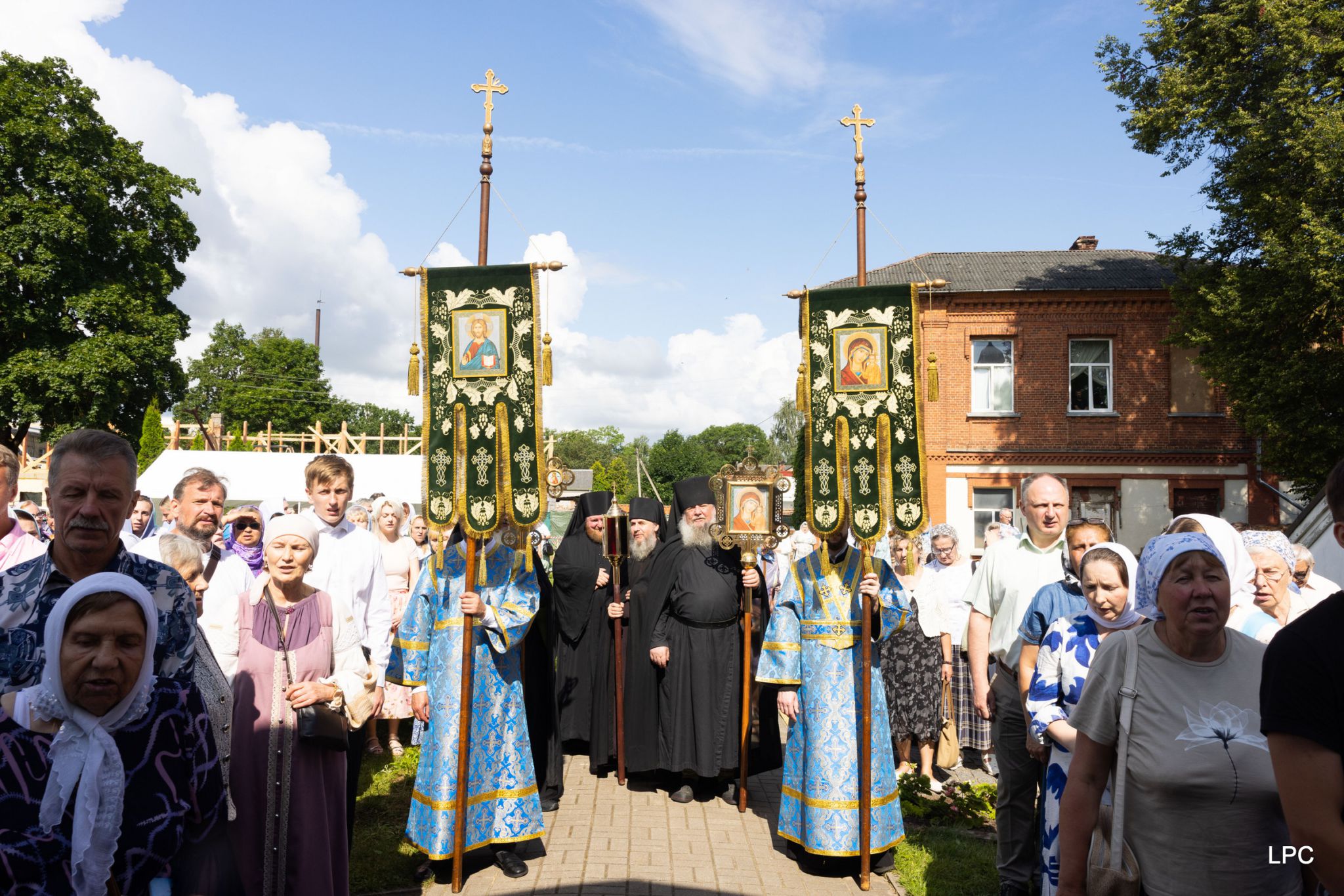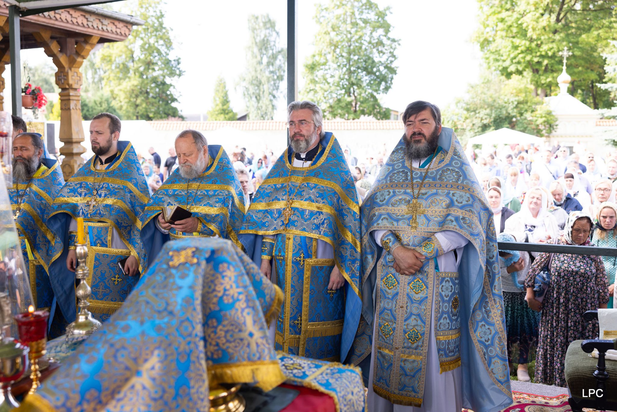 После отпуста литургии был совершён молебен с крестным ходом вокруг монастыря, во время которого священнослужители возносили прошения об умножении мира и милости Божией ко всей земле латвийской. А по отпусте молебна, после уставных многолетий, Владыка Архиепископ произнёс проповедь.