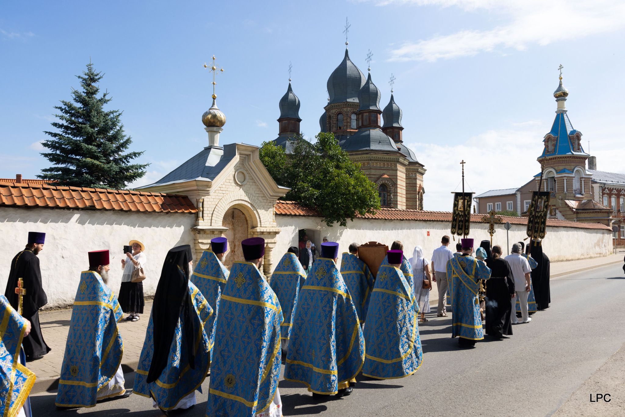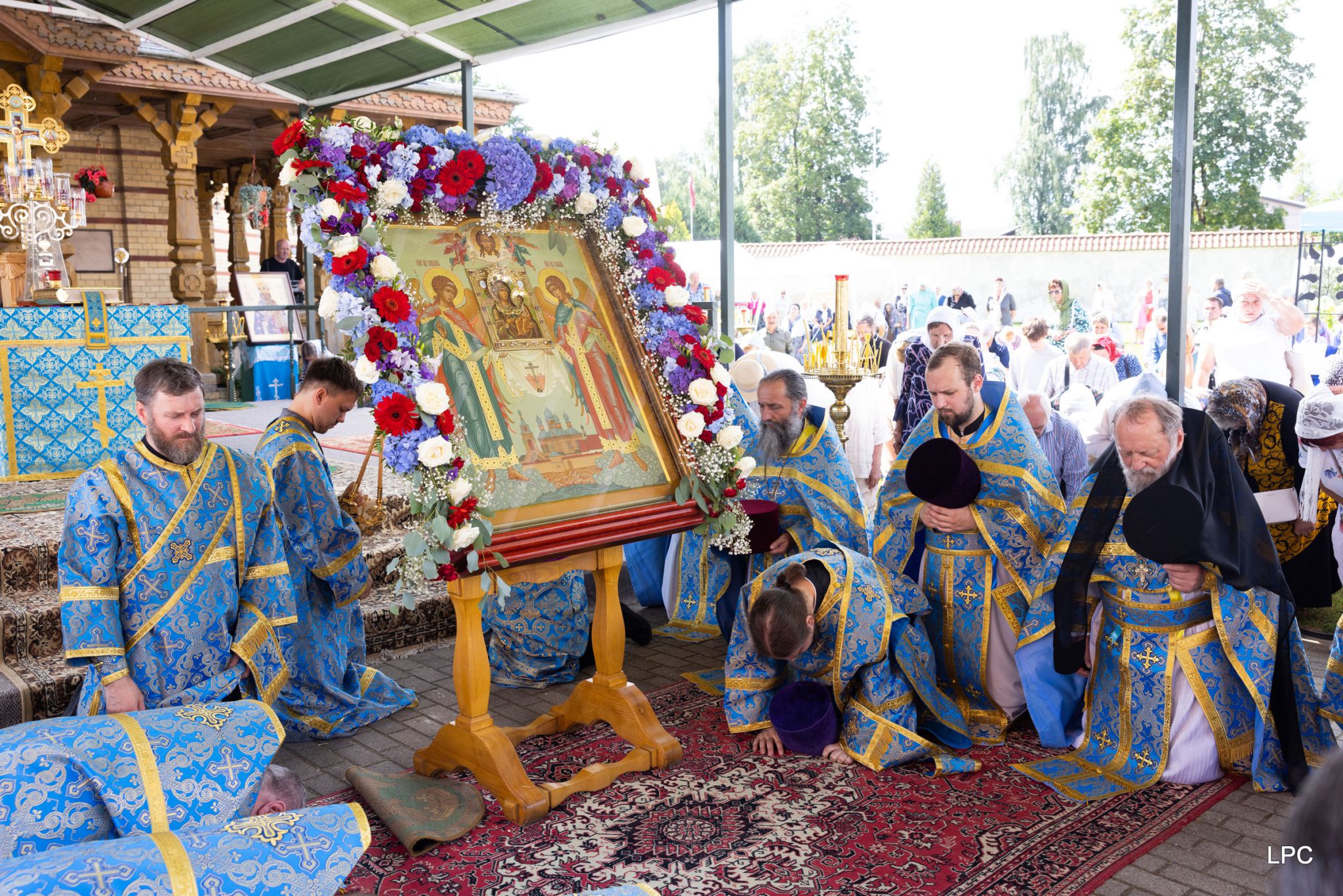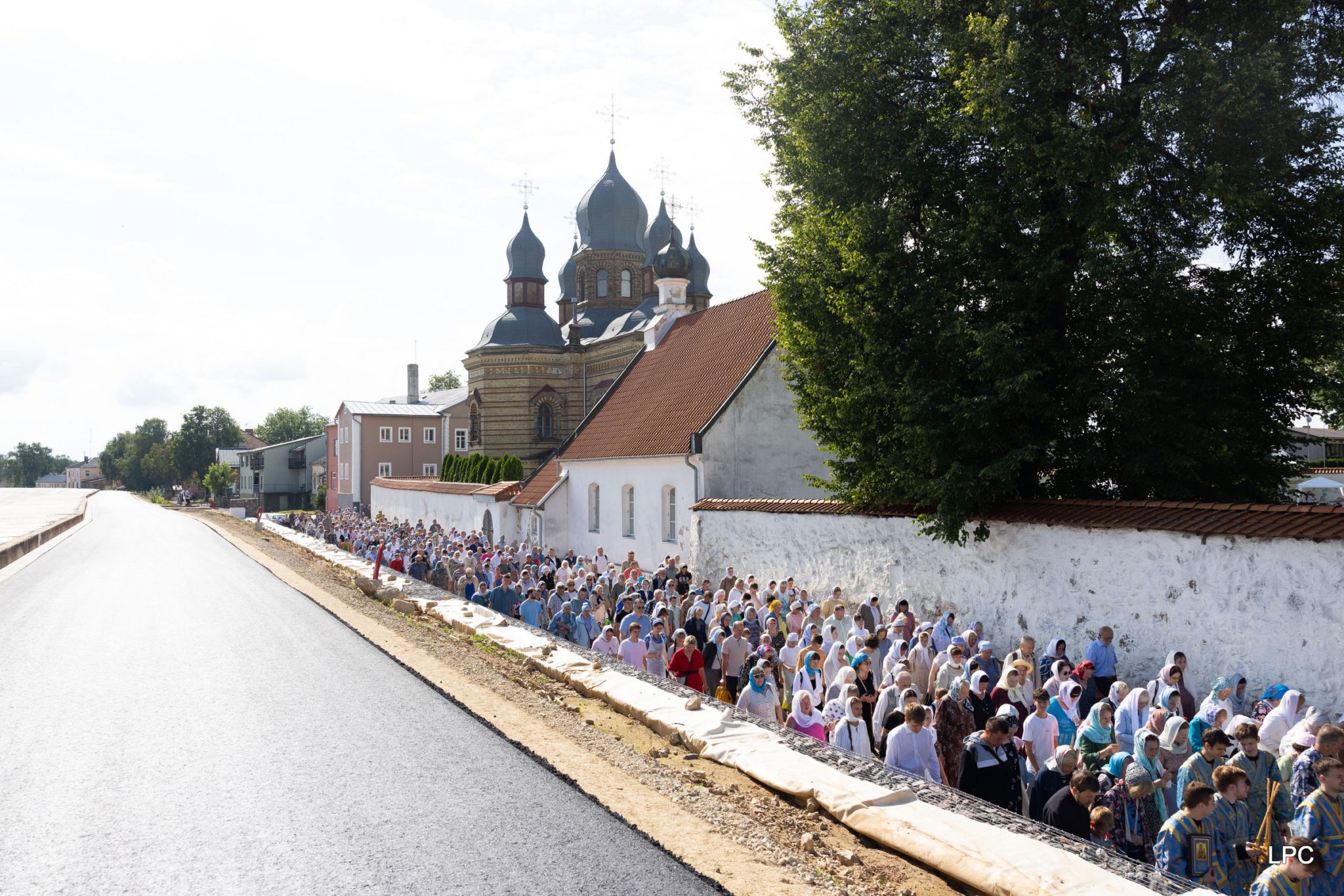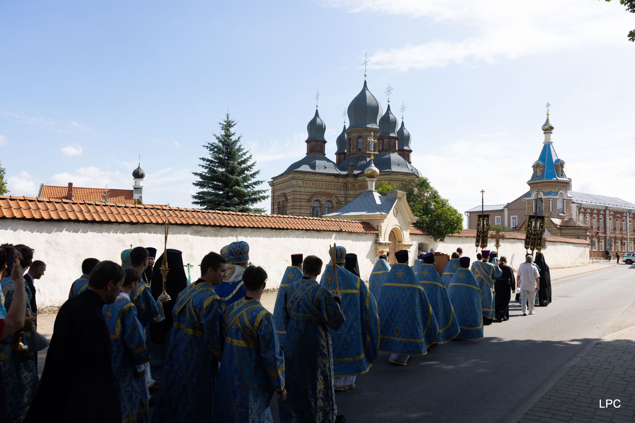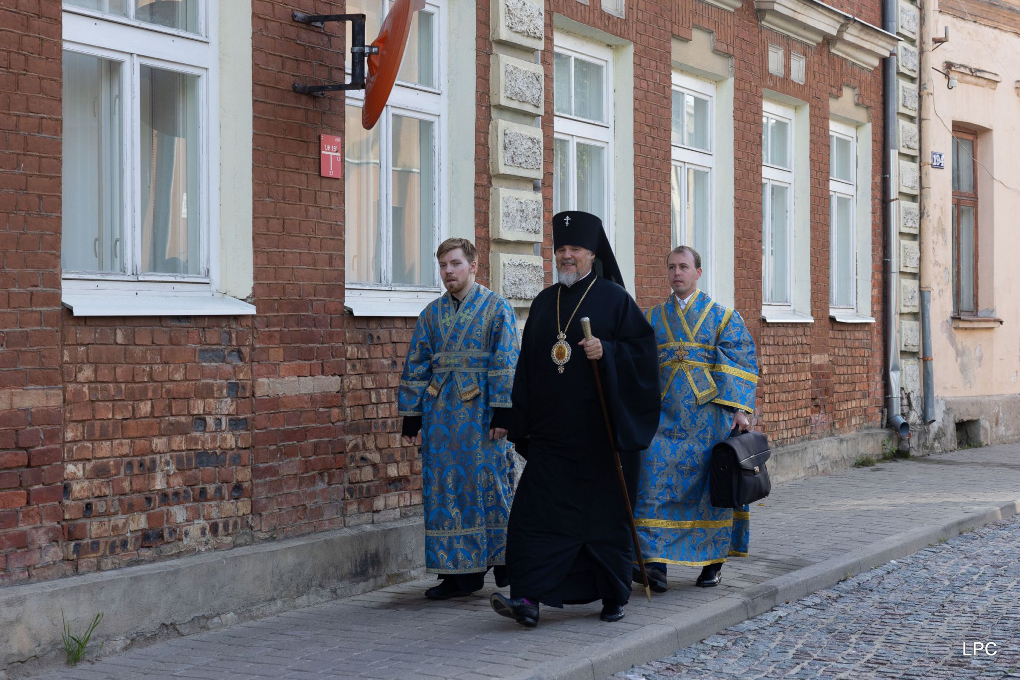 После отпуста литургии был совершён молебен с крестным ходом вокруг монастыря, во время которого священнослужители возносили прошения об умножении мира и милости Божией ко всей земле латвийской. А по отпусте молебна, после уставных многолетий, Владыка Архиепископ произнёс проповедь.