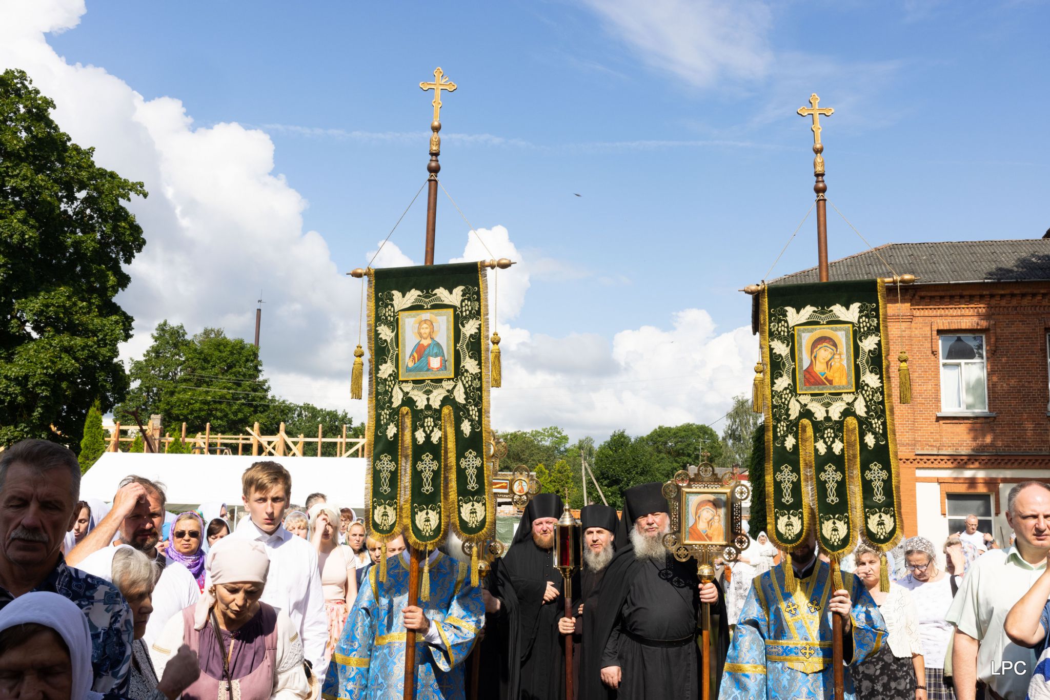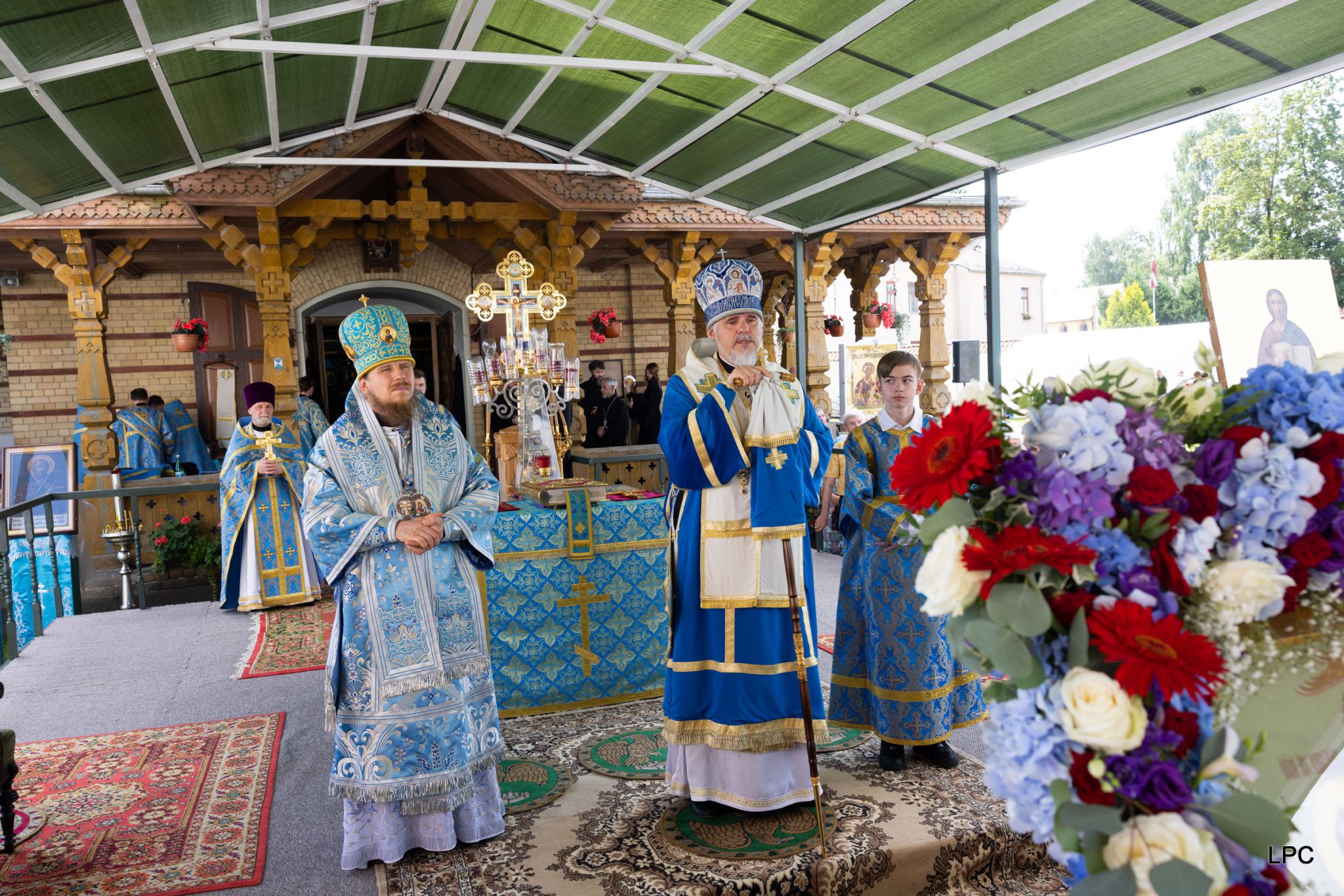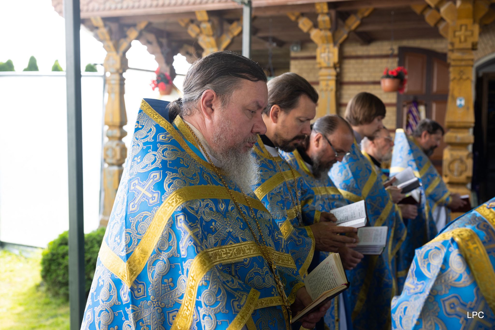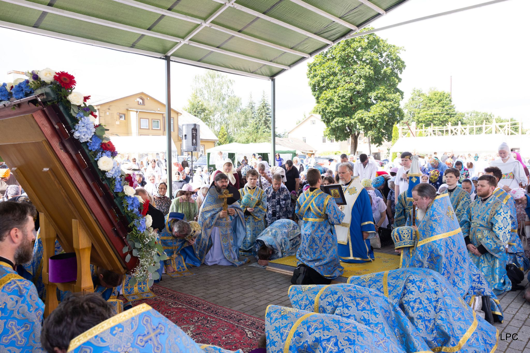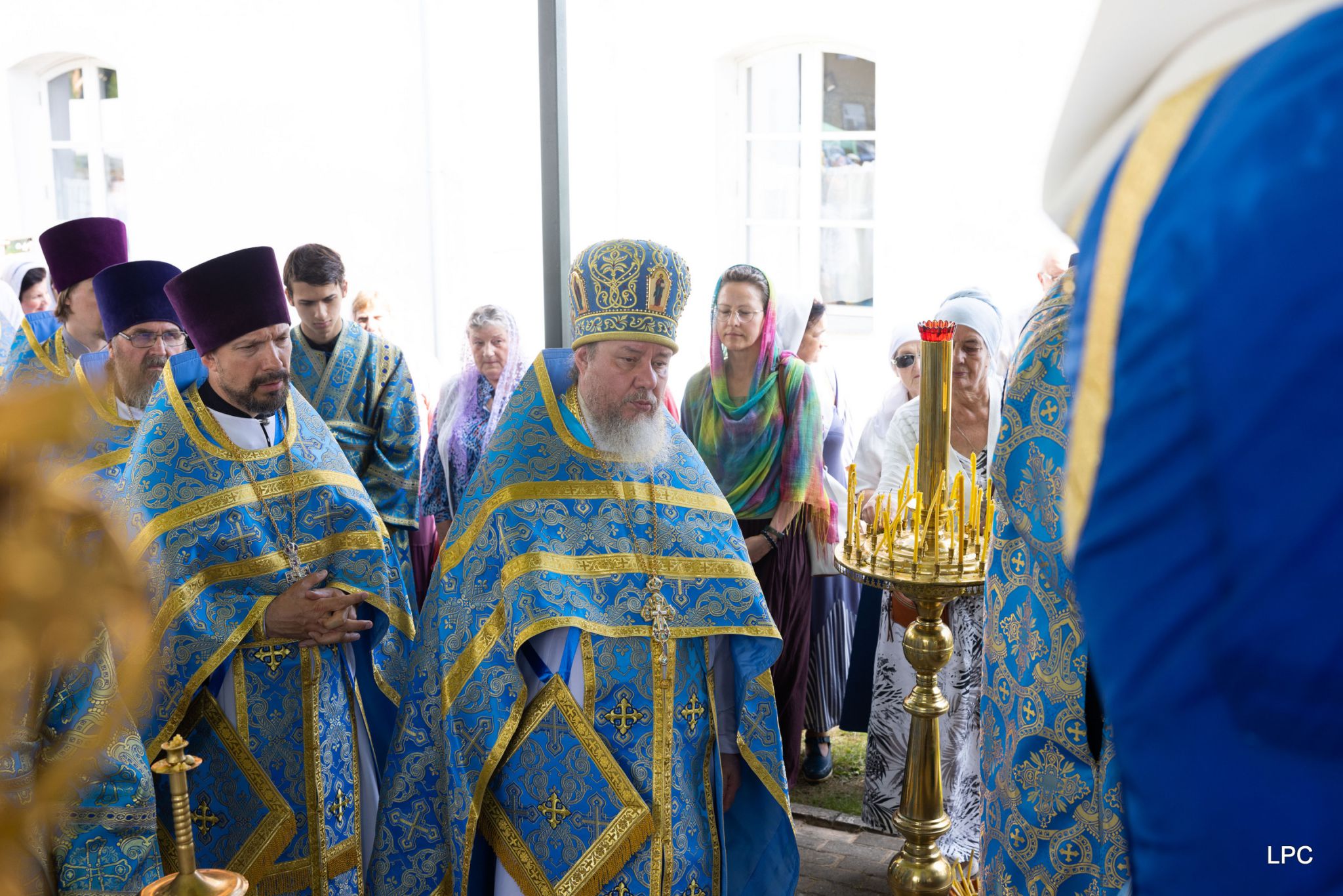После отпуста литургии был совершён молебен с крестным ходом вокруг монастыря, во время которого священнослужители возносили прошения об умножении мира и милости Божией ко всей земле латвийской. А по отпусте молебна, после уставных многолетий, Владыка Архиепископ произнёс проповедь.