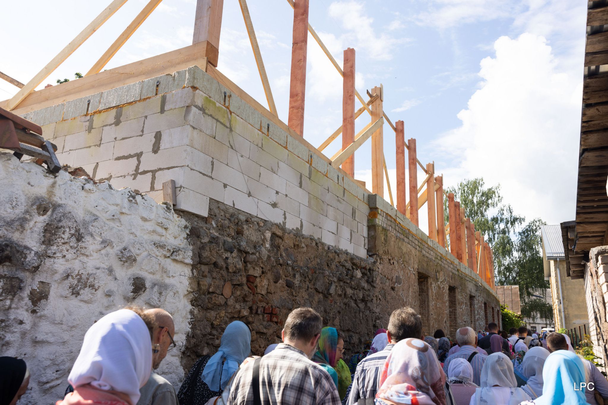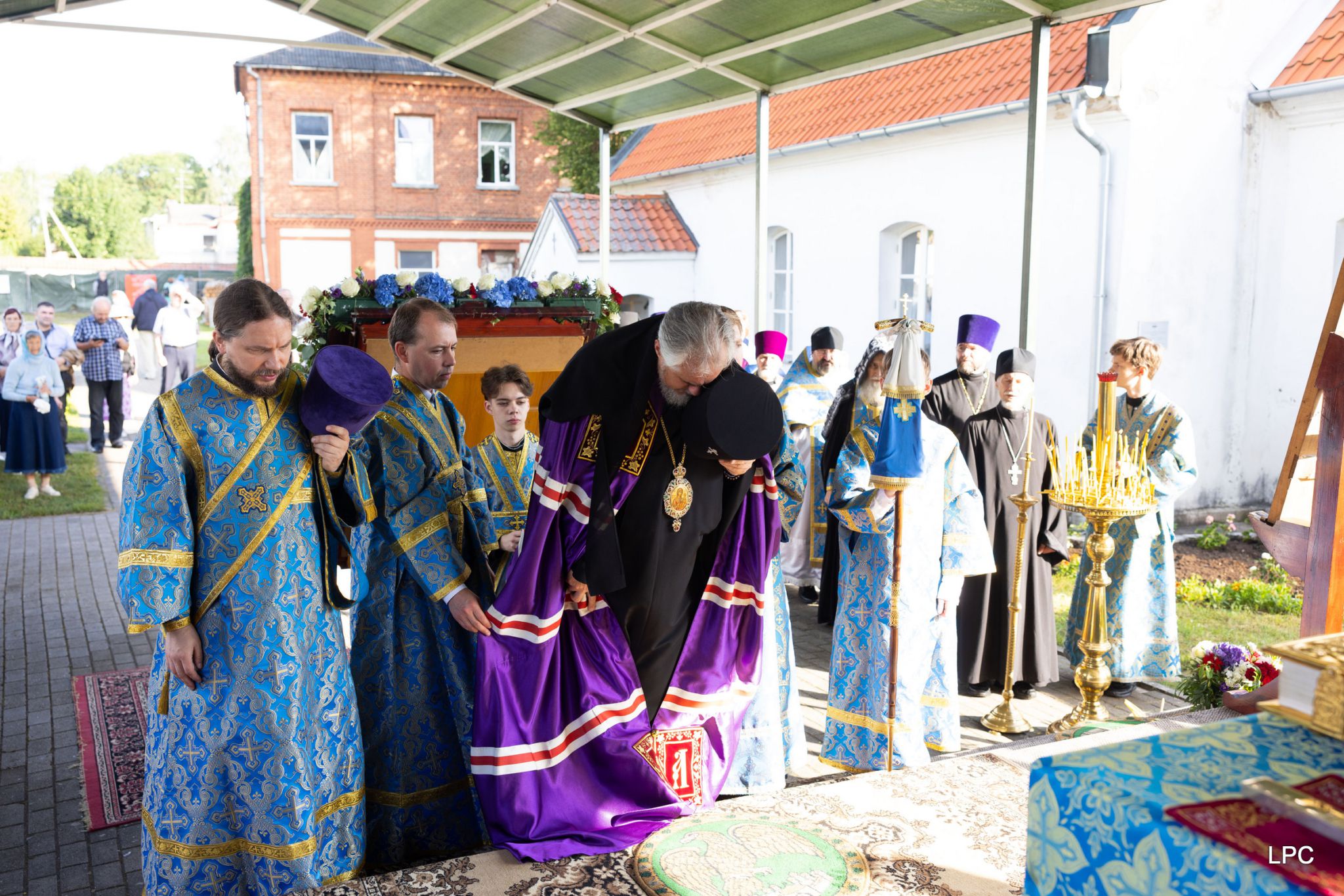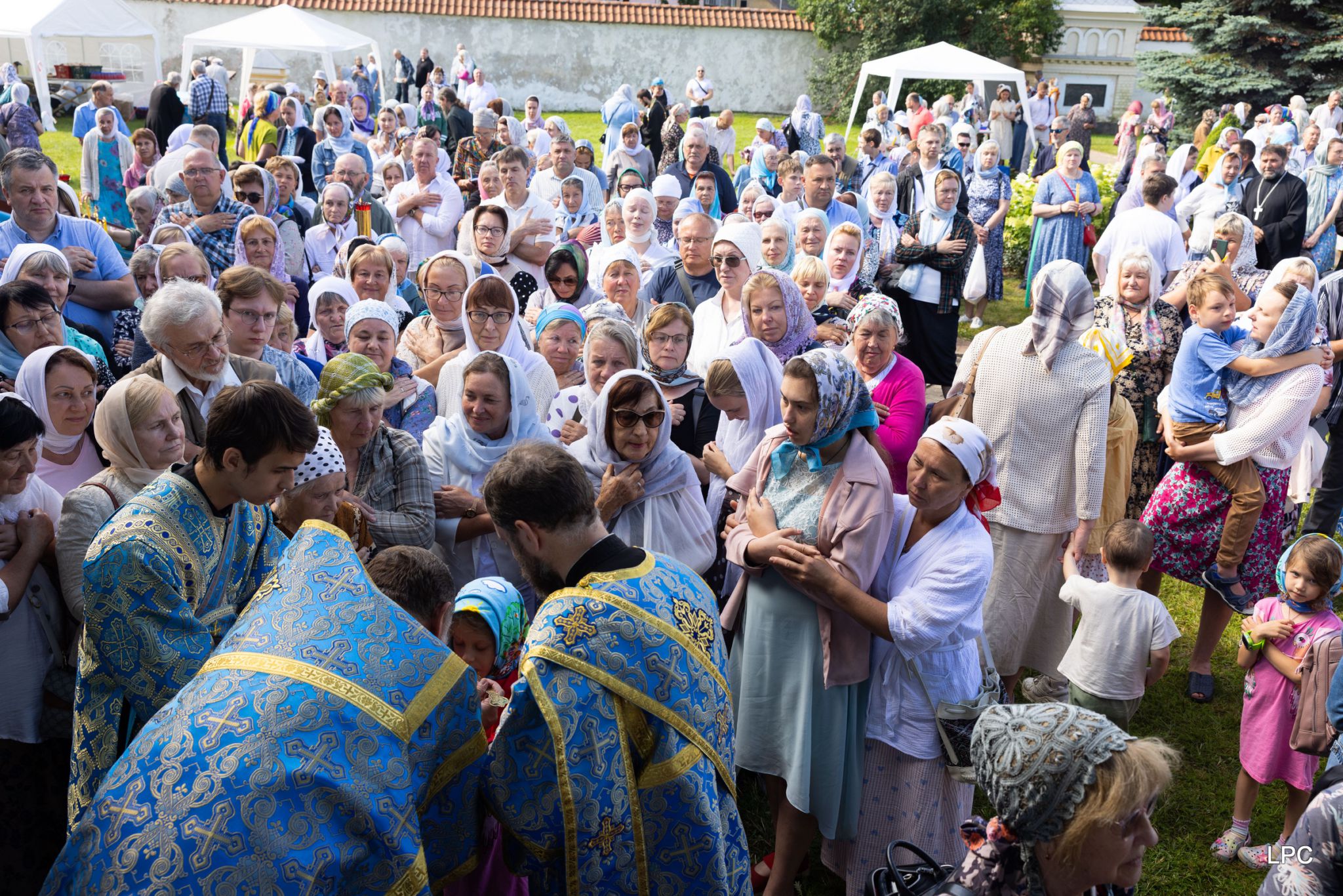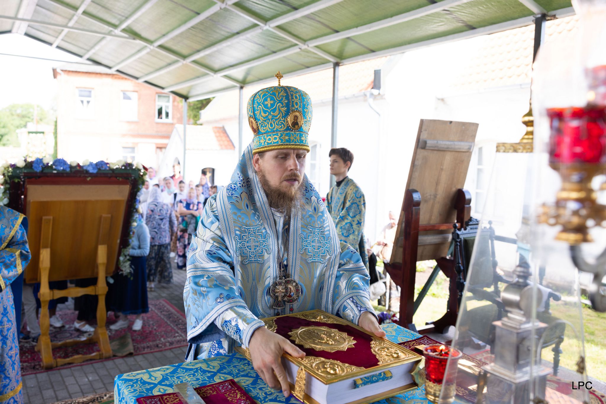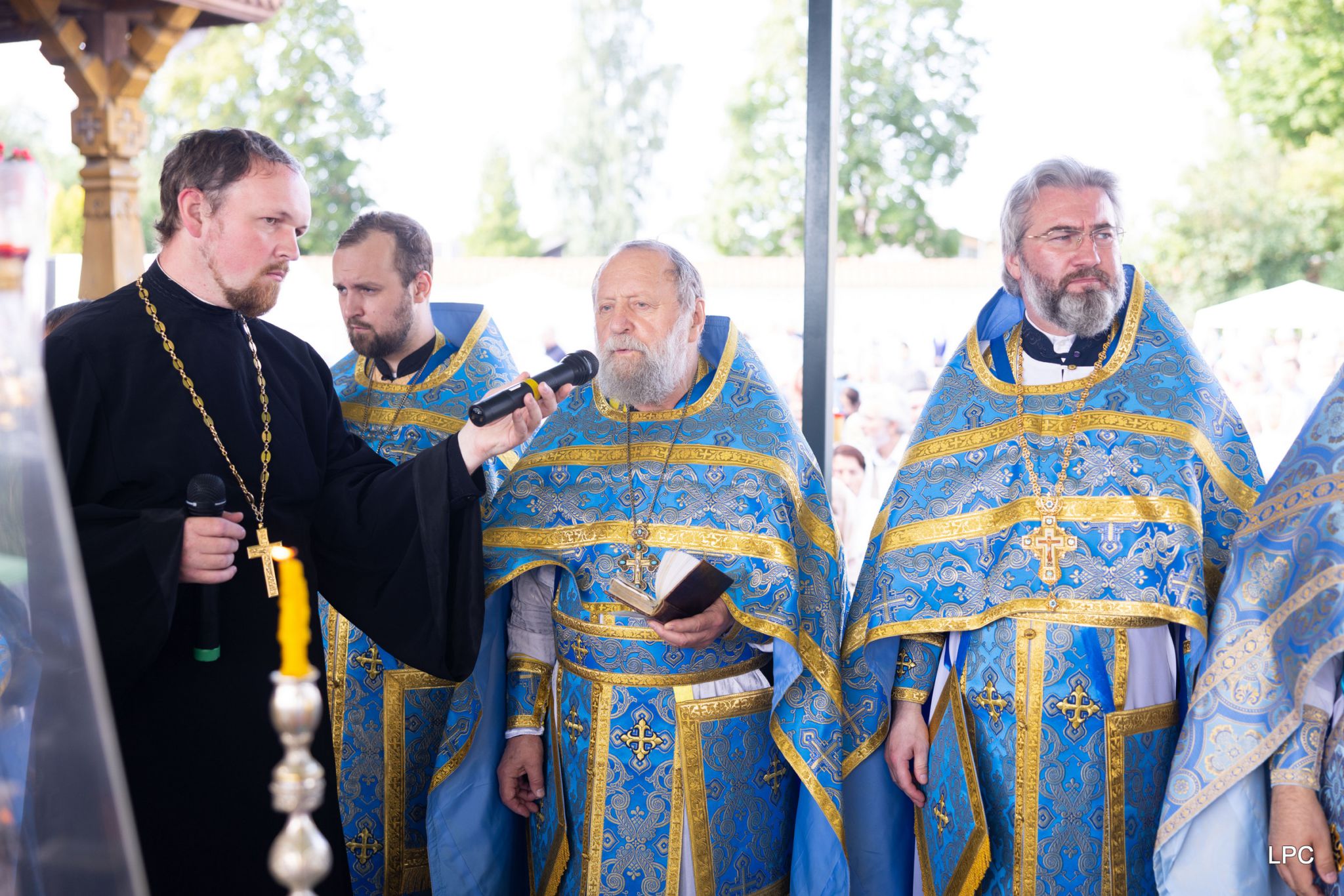 После отпуста литургии был совершён молебен с крестным ходом вокруг монастыря, во время которого священнослужители возносили прошения об умножении мира и милости Божией ко всей земле латвийской. А по отпусте молебна, после уставных многолетий, Владыка Архиепископ произнёс проповедь.