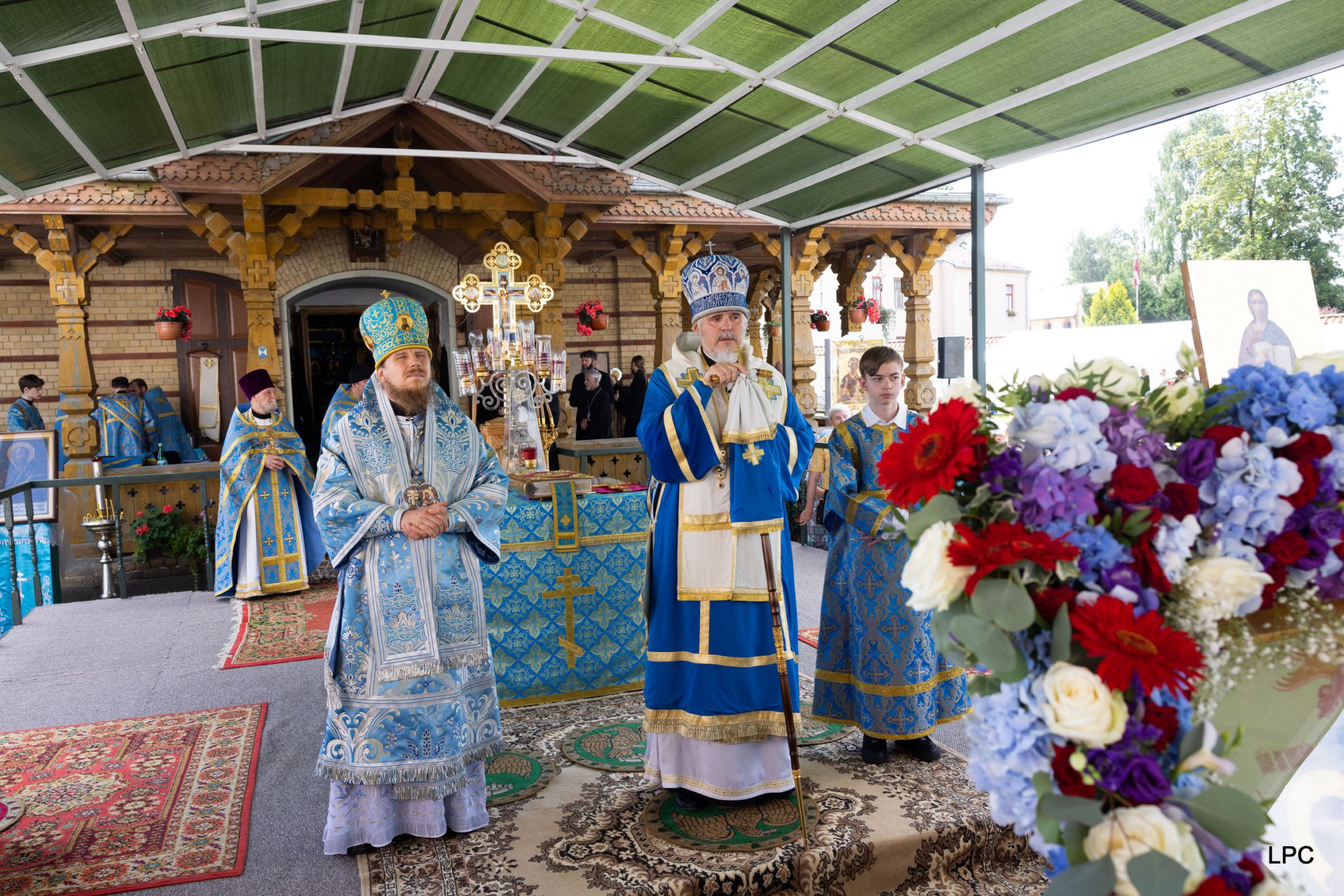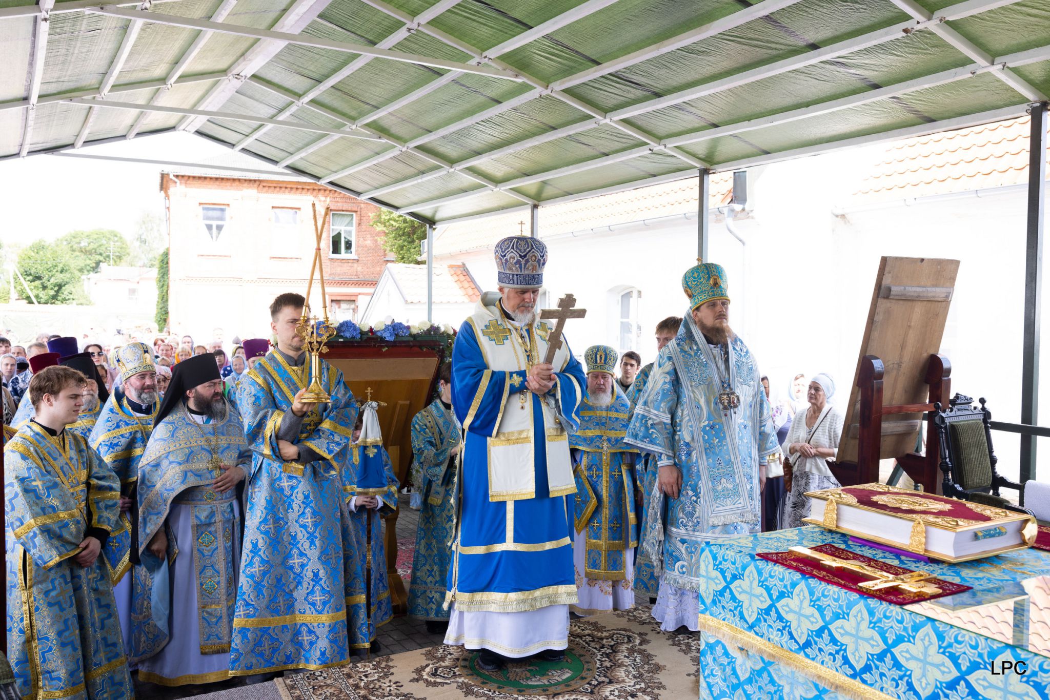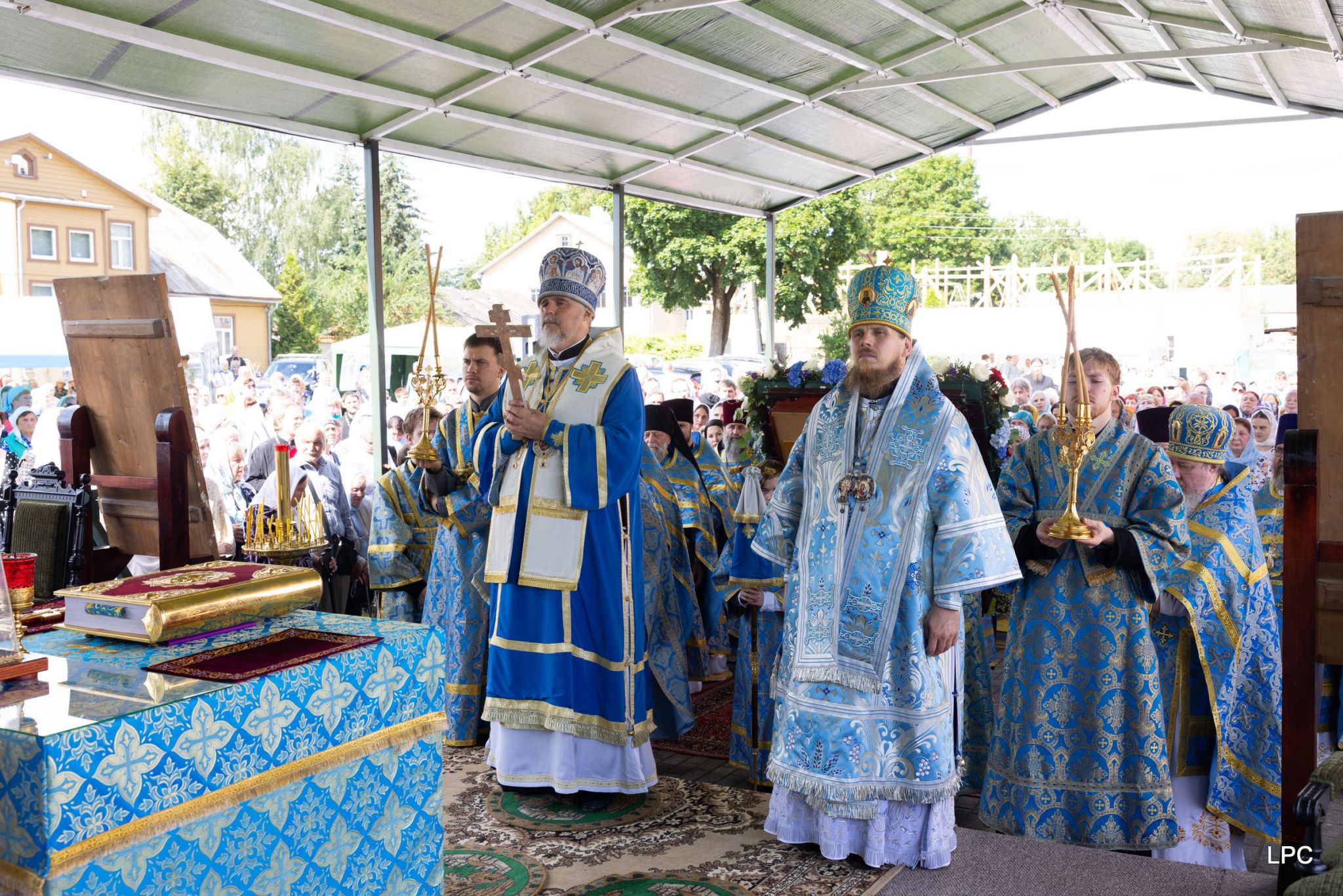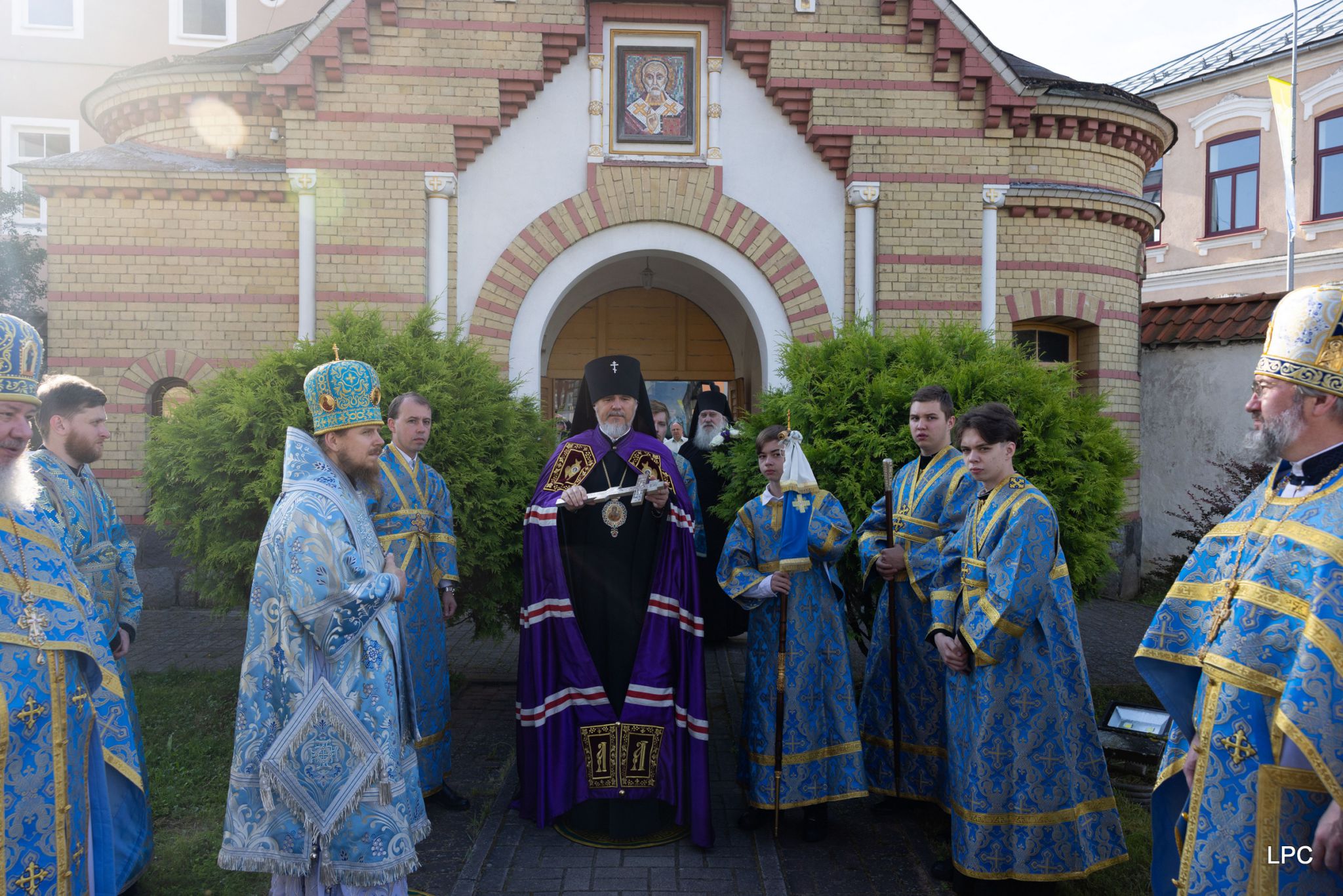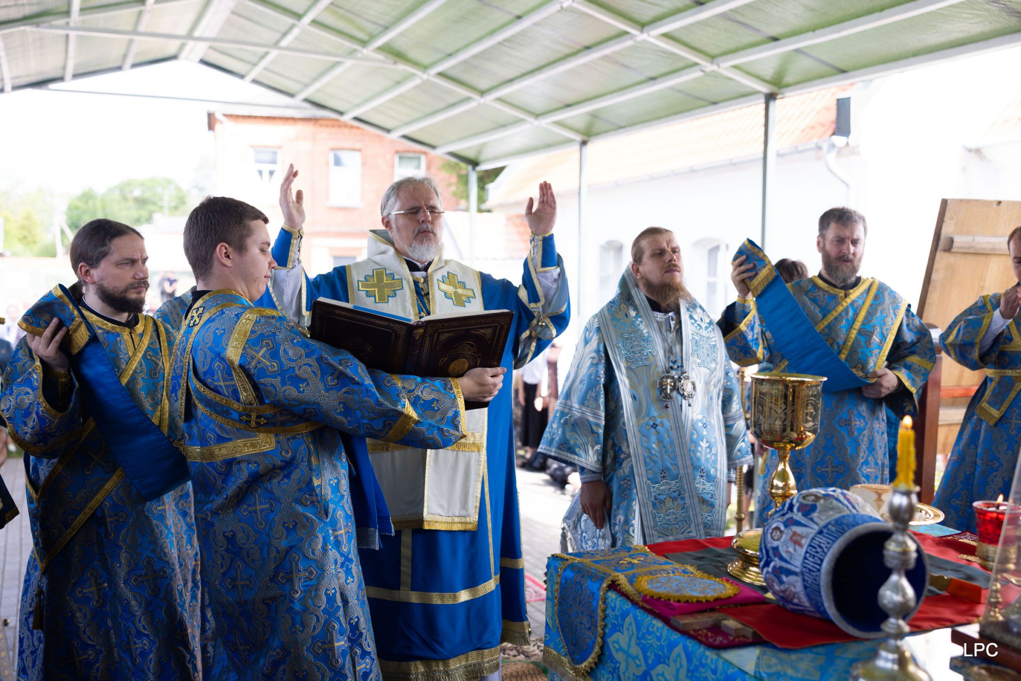 После отпуста литургии был совершён молебен с крестным ходом вокруг монастыря, во время которого священнослужители возносили прошения об умножении мира и милости Божией ко всей земле латвийской. А по отпусте молебна, после уставных многолетий, Владыка Архиепископ произнёс проповедь.