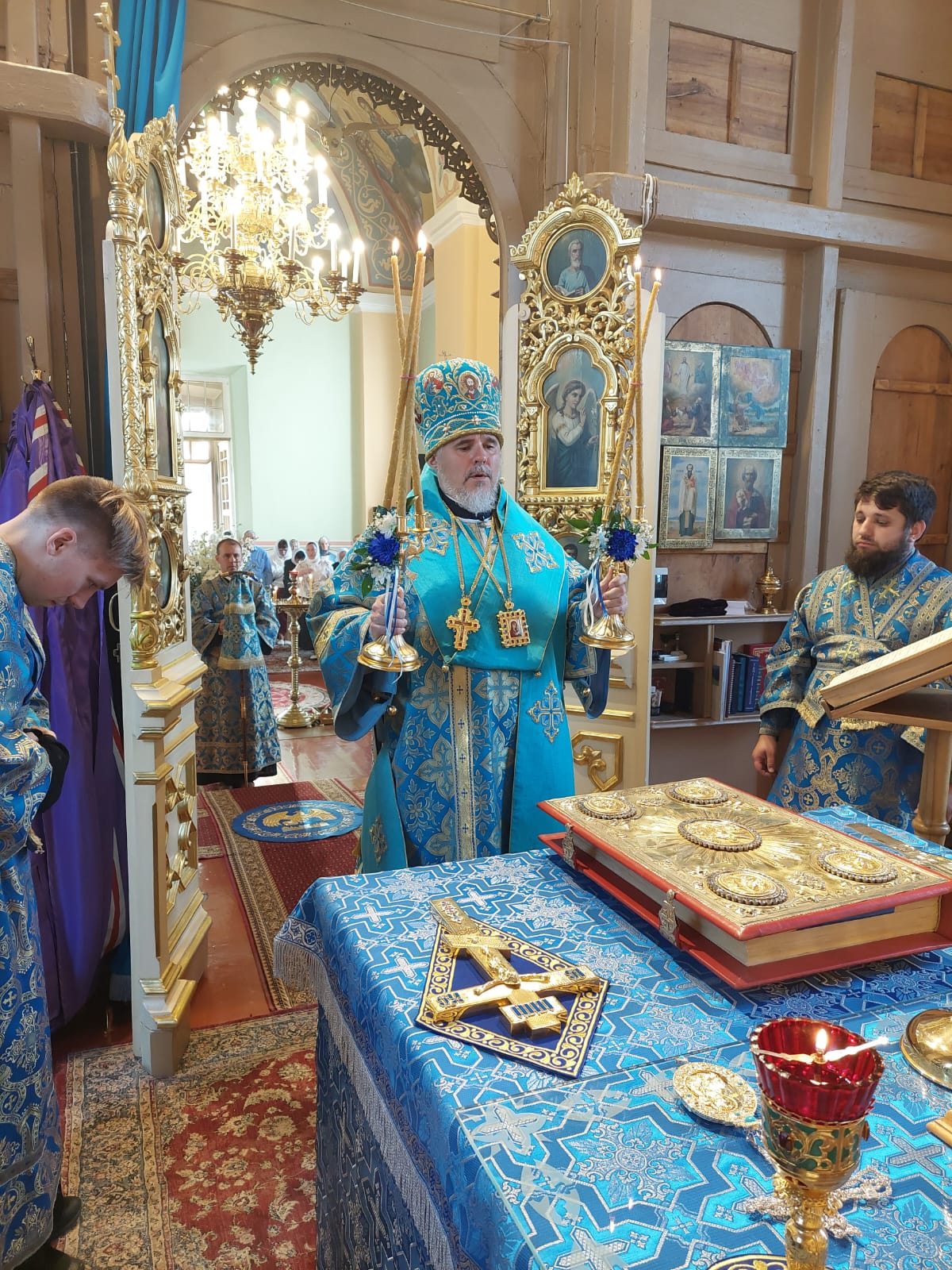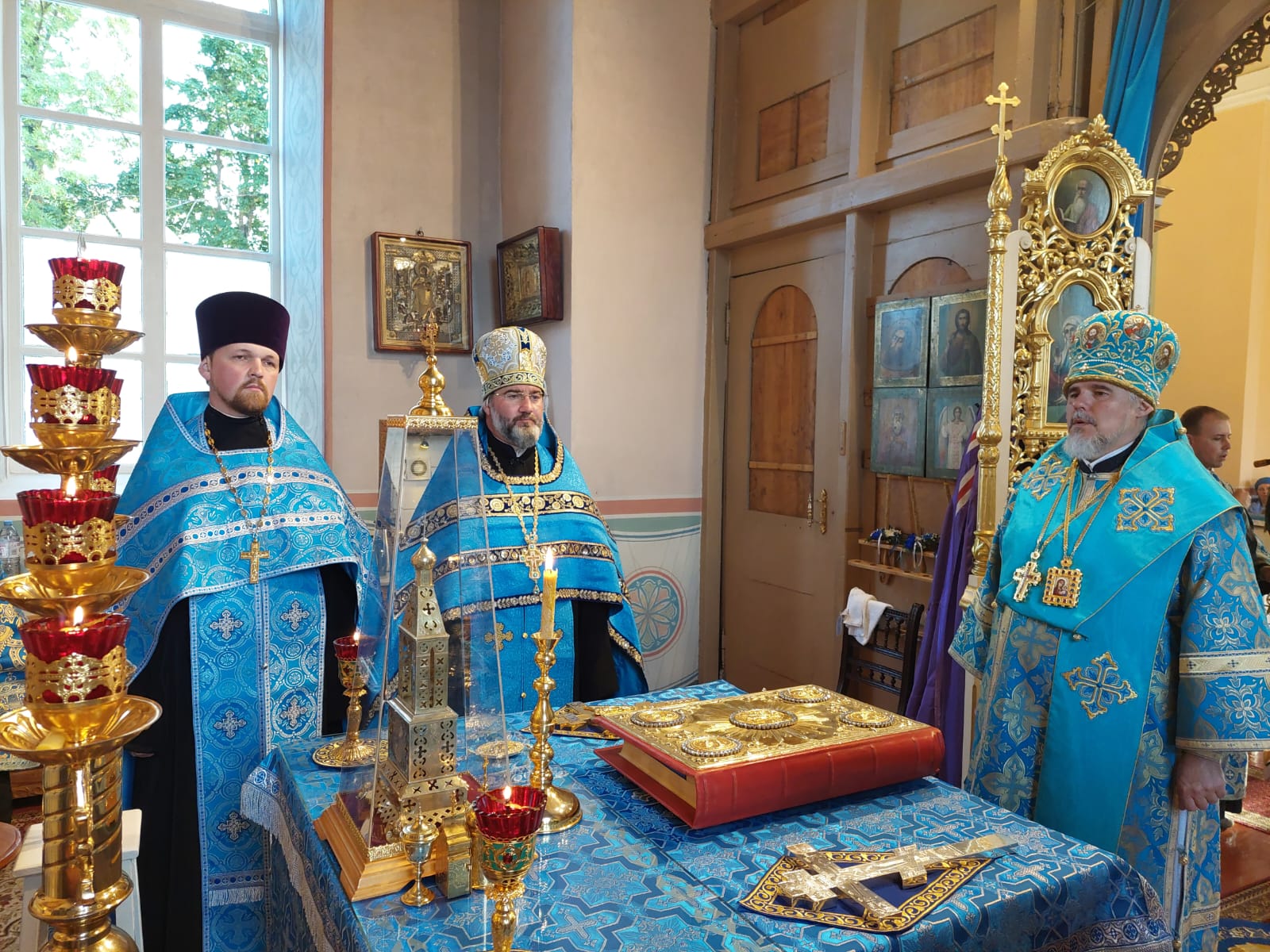 Его Высокопреосвященству сослужили: секретарь Даугавпилсского епархиального управления архимандрит Спиридон (Сергеев), благочинный Резекненского округа протоиерей Виктор Теплов, настоятель Лудзенского собора священник Сергий Кириченко, а также клирик Рижского Александро-Невского храма диакон Александр Акатов.