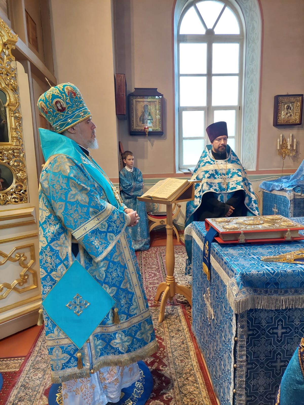 За богослужением Утрени было прочитано Евангелие от Луки (Лк. 1:39–49, 56), повествующее о посещении Пресвятой Девой праведной Елисаветы. В этом чтении открывается образ смиренной веры Пресвятой Владычицы Богородицы, Которая, исповедуя величие Господа, произносит пророческие слова: «…ибо призрел Он на смирение Рабы Своей; ибо отныне будут ублажать Меня все роды» (Лк. 1:48).