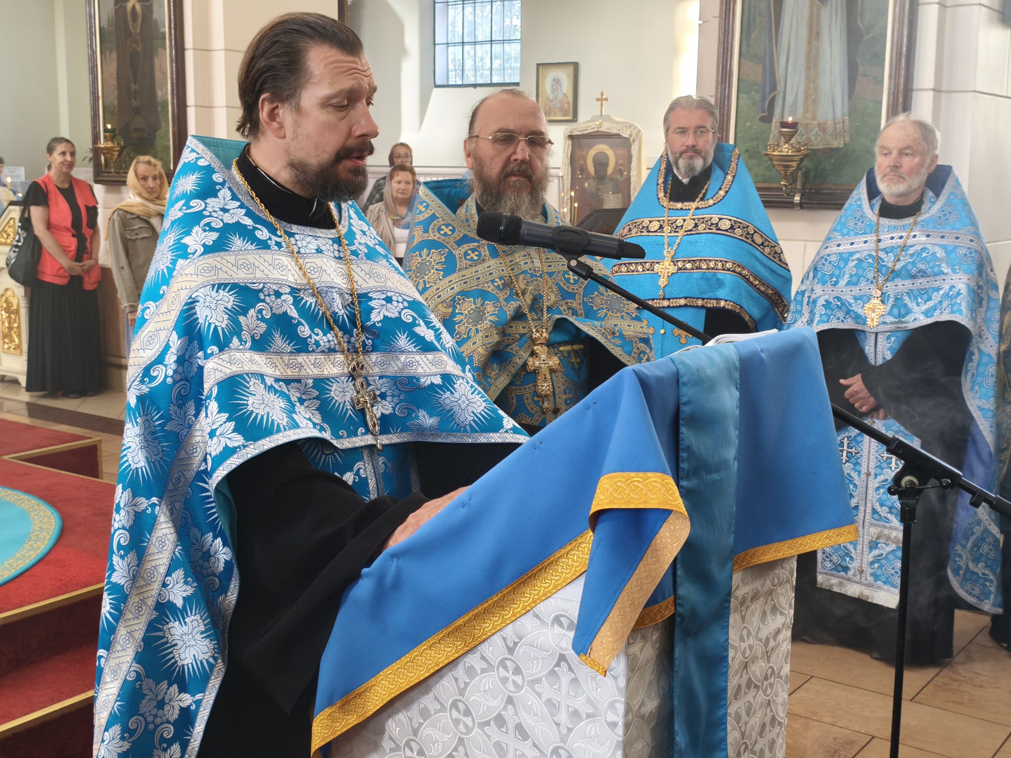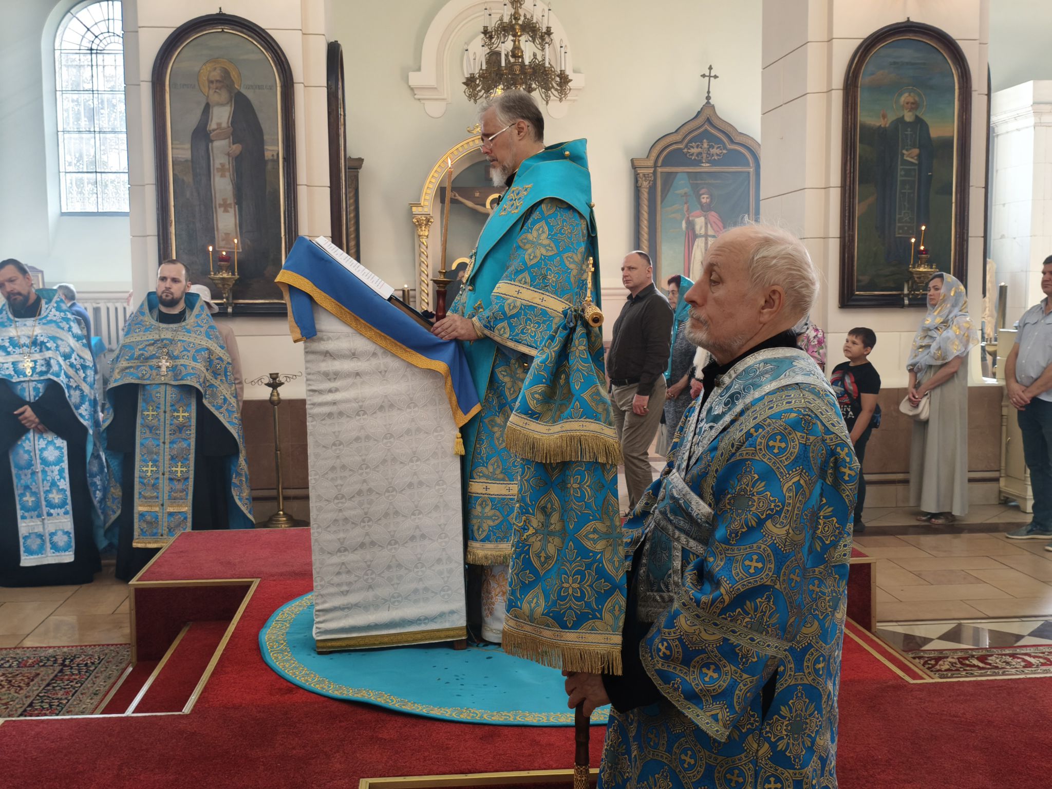 Его Высокопреосвященству сослужили: секретарь Даугавпилсского епархиального управления архимандрит Спиридон (Сергеев), благочинные Даугавпилсского, Резекненского и Мадонского округов и духовенство епархии. Диаконский чин возглавил клирик Рижской епархии ЛПЦ диакон Александр Акатов. Песнопения вечернего богослужения исполнил архиерейский хор под управлением регента Надежды Харламовой.