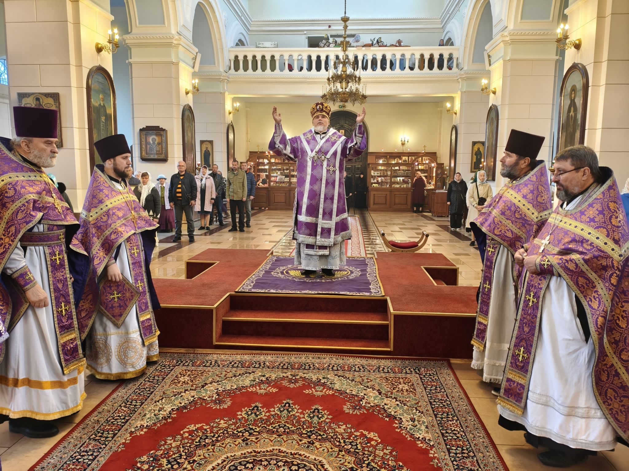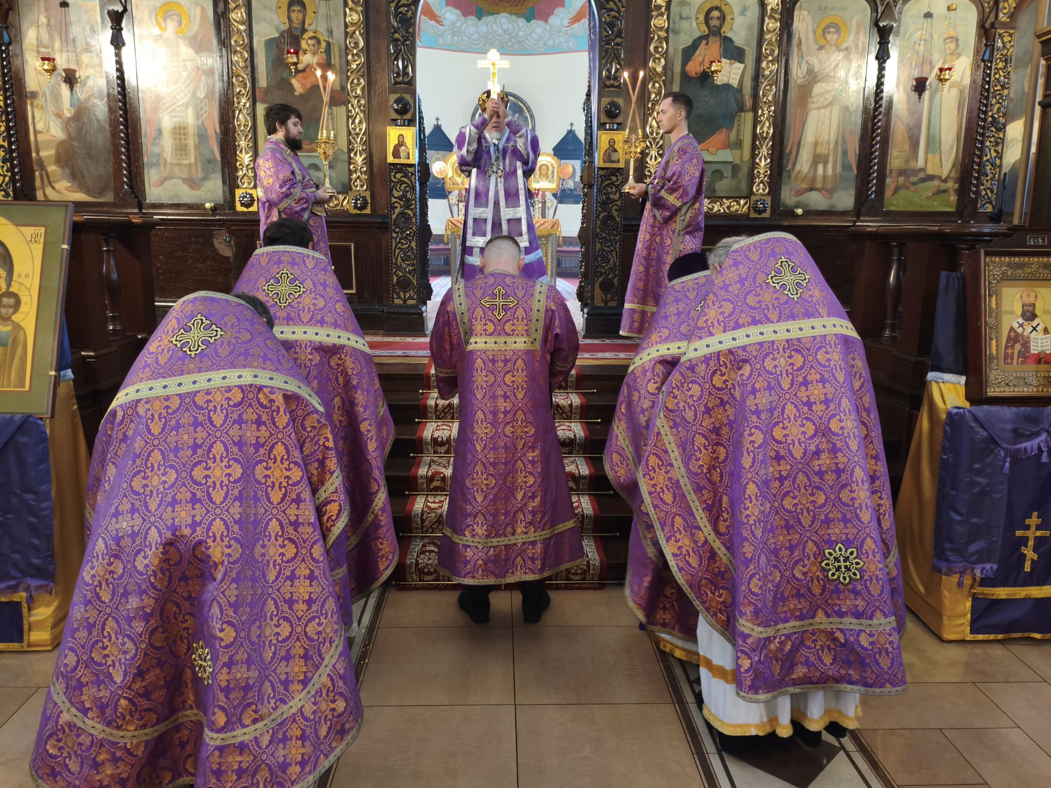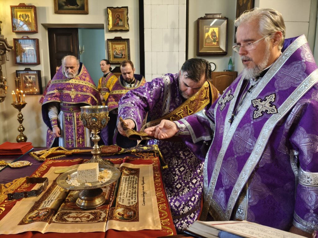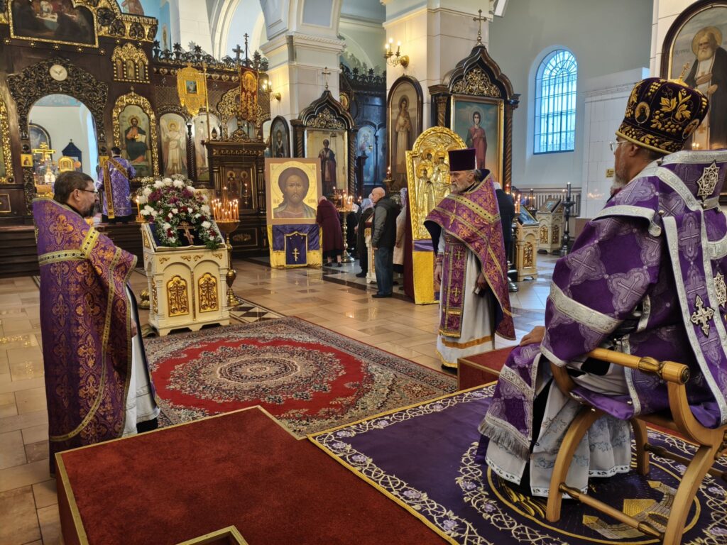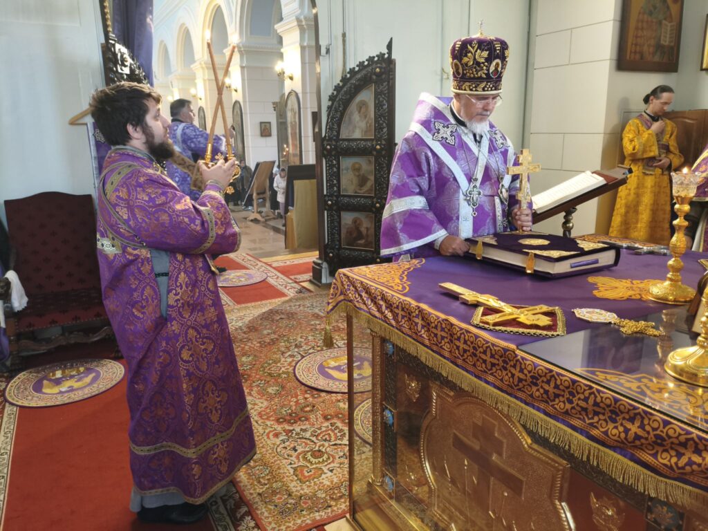По отпусте литургии было совершено славление с поклонением Честному и Животворящему Кресту Господню. Верующие с благоговением приложились ко Кресту, вознося молитвы о мире, о Церкви Христовой и о даровании каждому силы достойно нести свой жизненный крест.