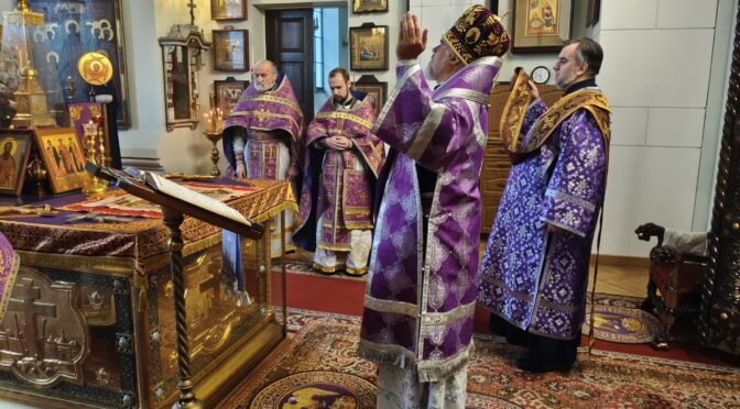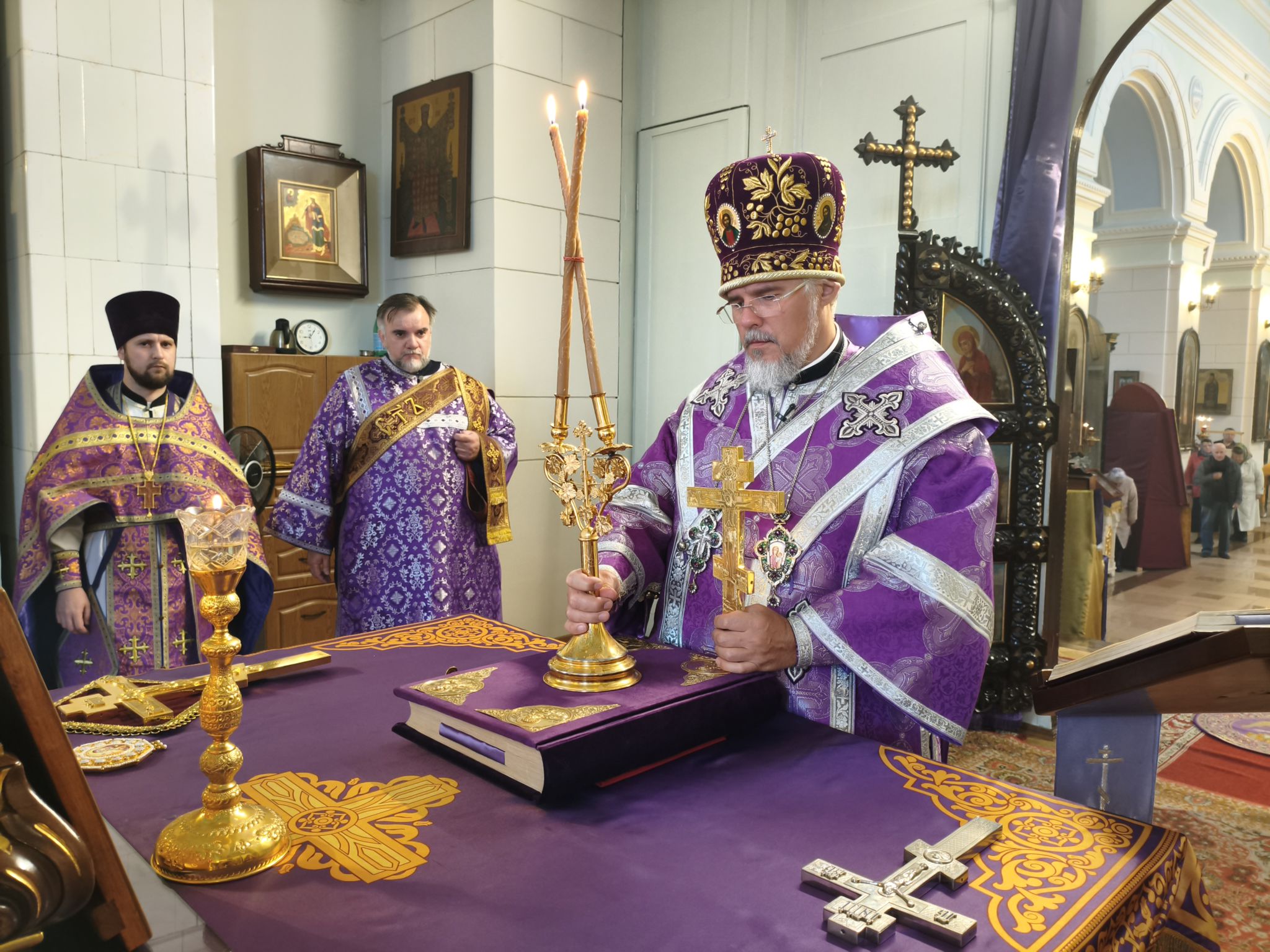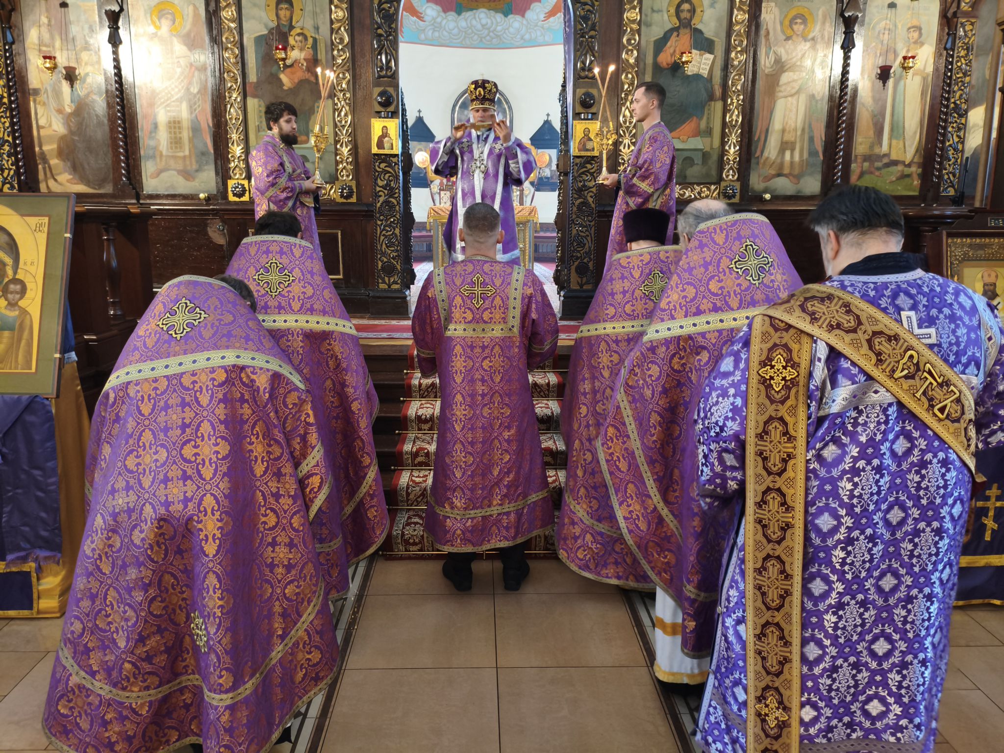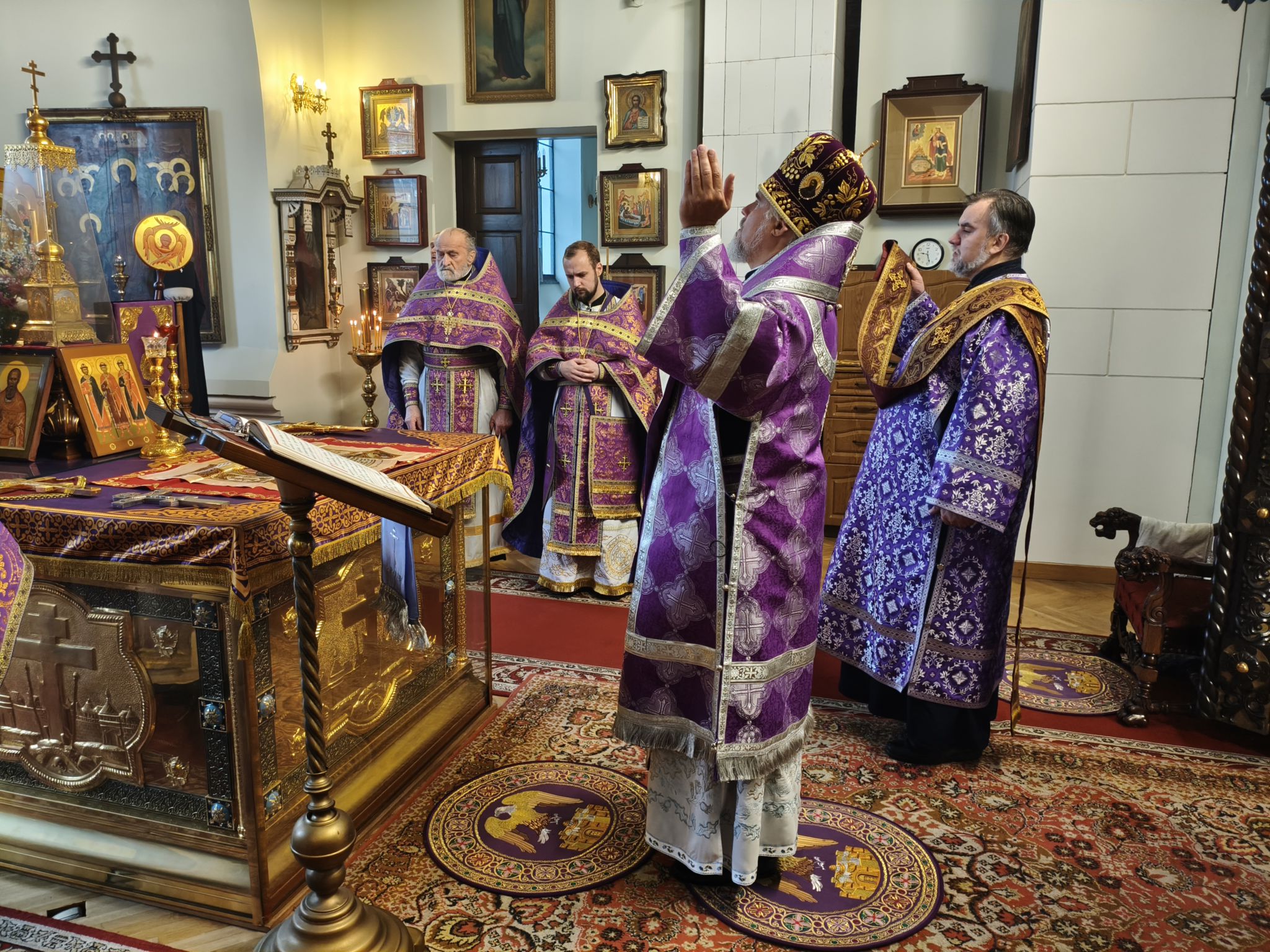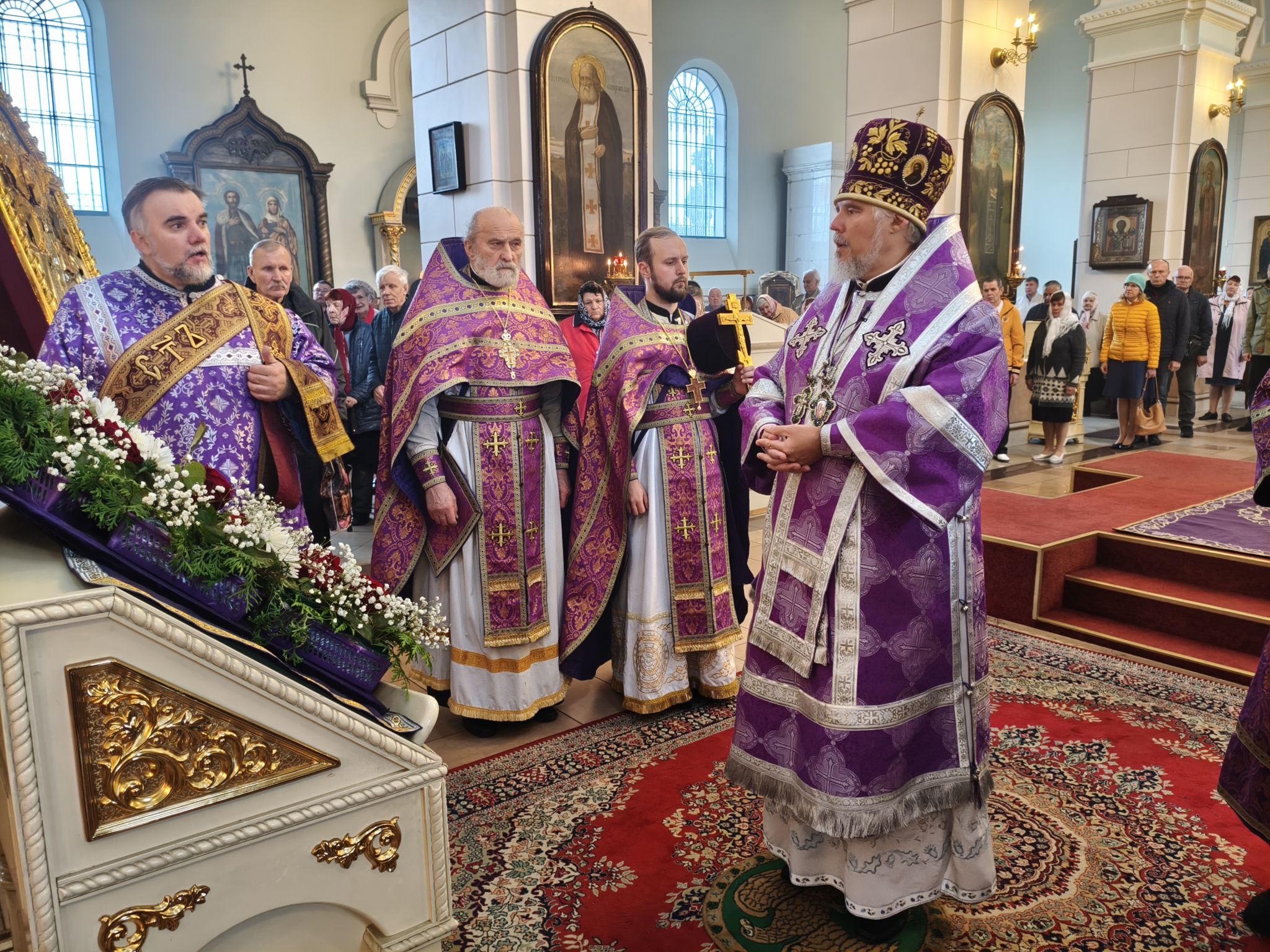 По отпусте литургии было совершено славление с поклонением Честному и Животворящему Кресту Господню. Верующие с благоговением приложились ко Кресту, вознося молитвы о мире, о Церкви Христовой и о даровании каждому силы достойно нести свой жизненный крест.