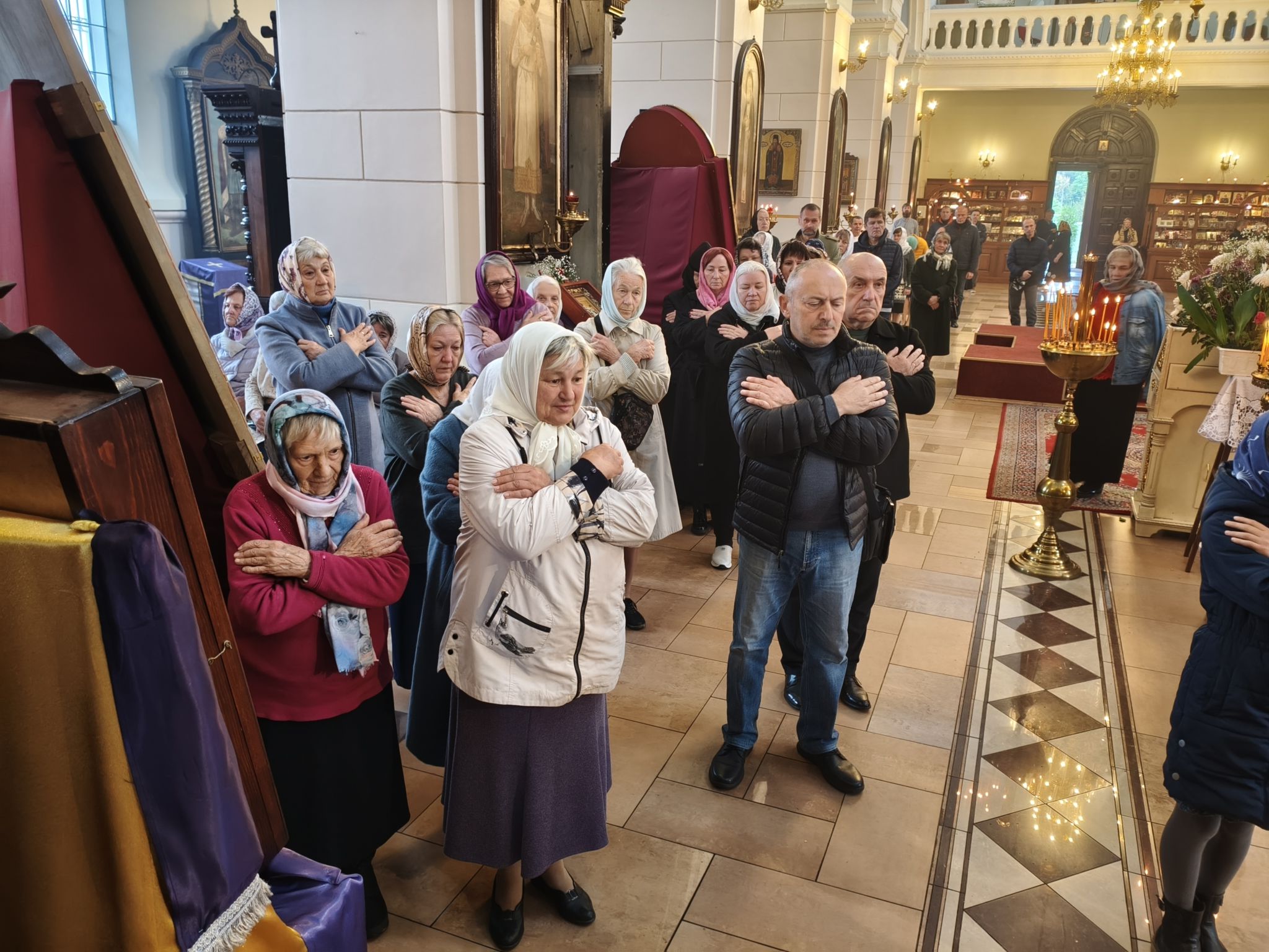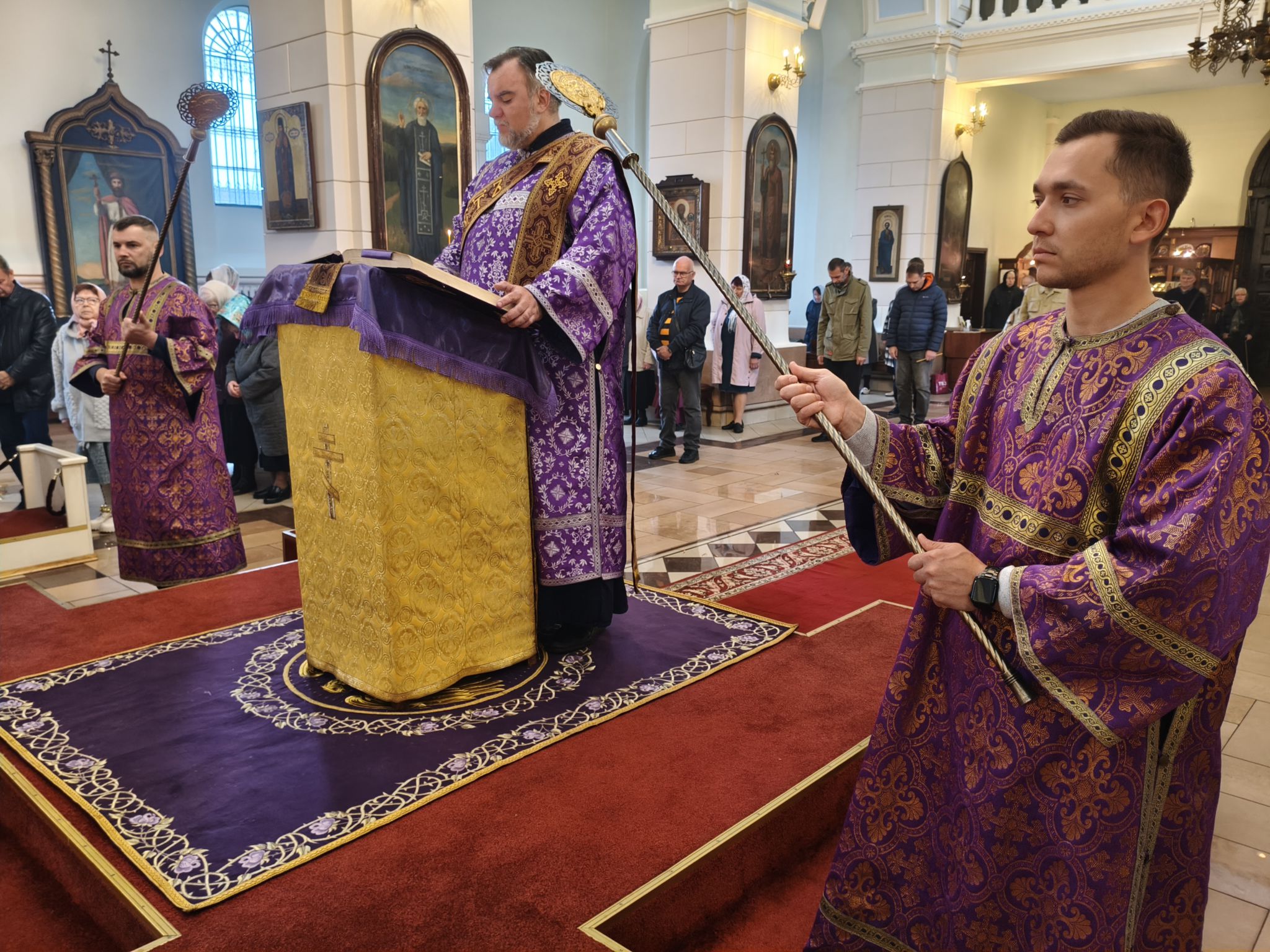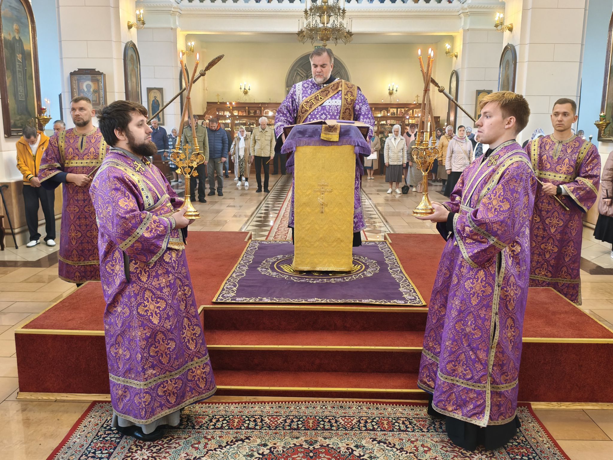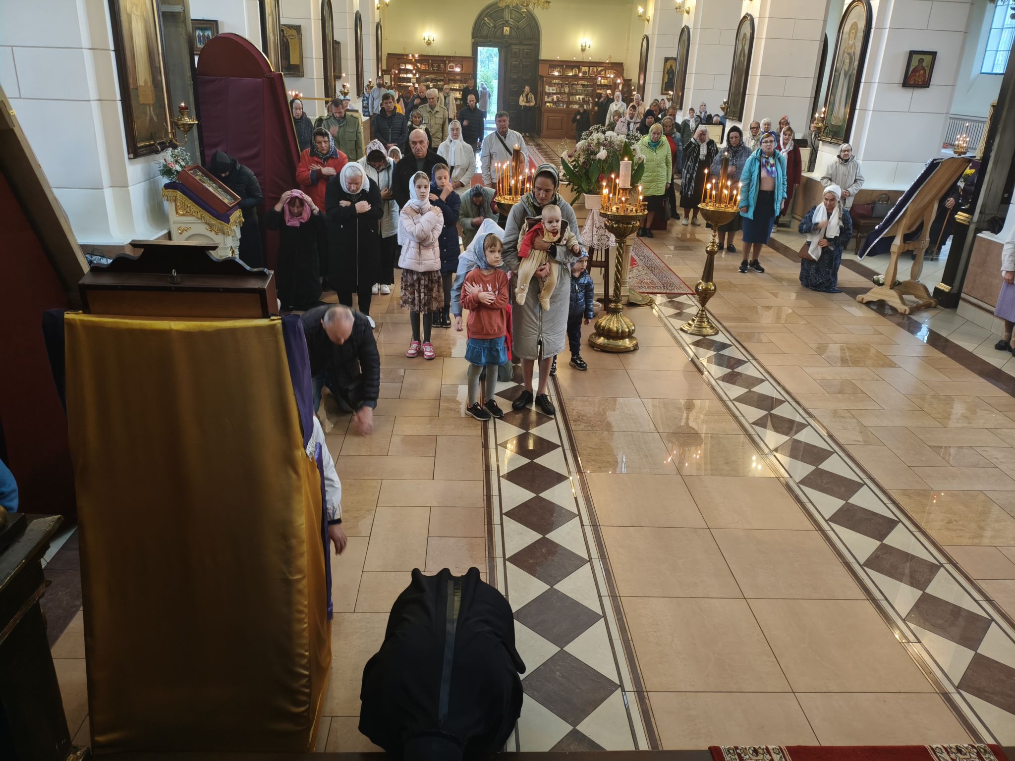 По отпусте литургии было совершено славление с поклонением Честному и Животворящему Кресту Господню. Верующие с благоговением приложились ко Кресту, вознося молитвы о мире, о Церкви Христовой и о даровании каждому силы достойно нести свой жизненный крест.