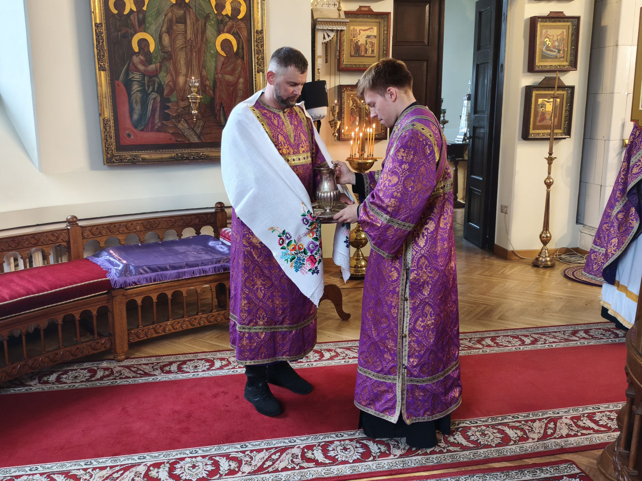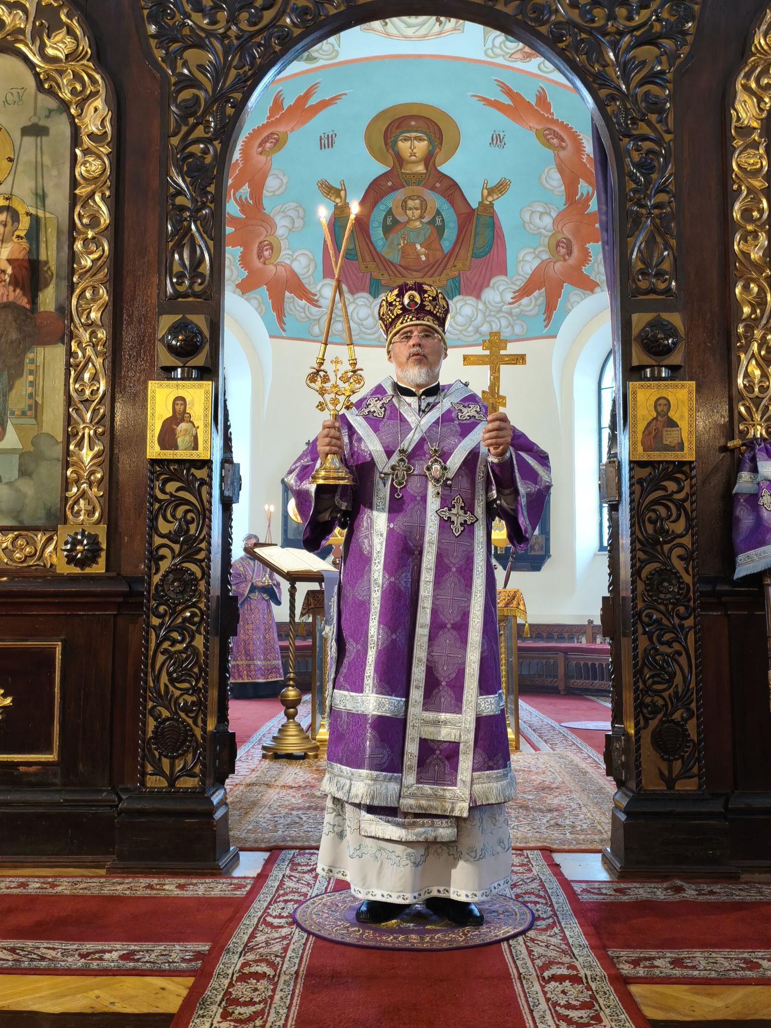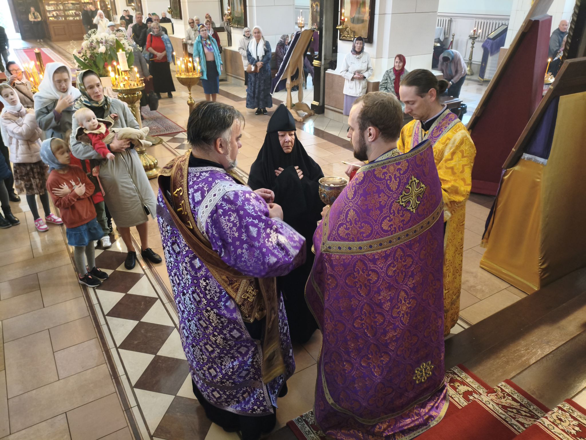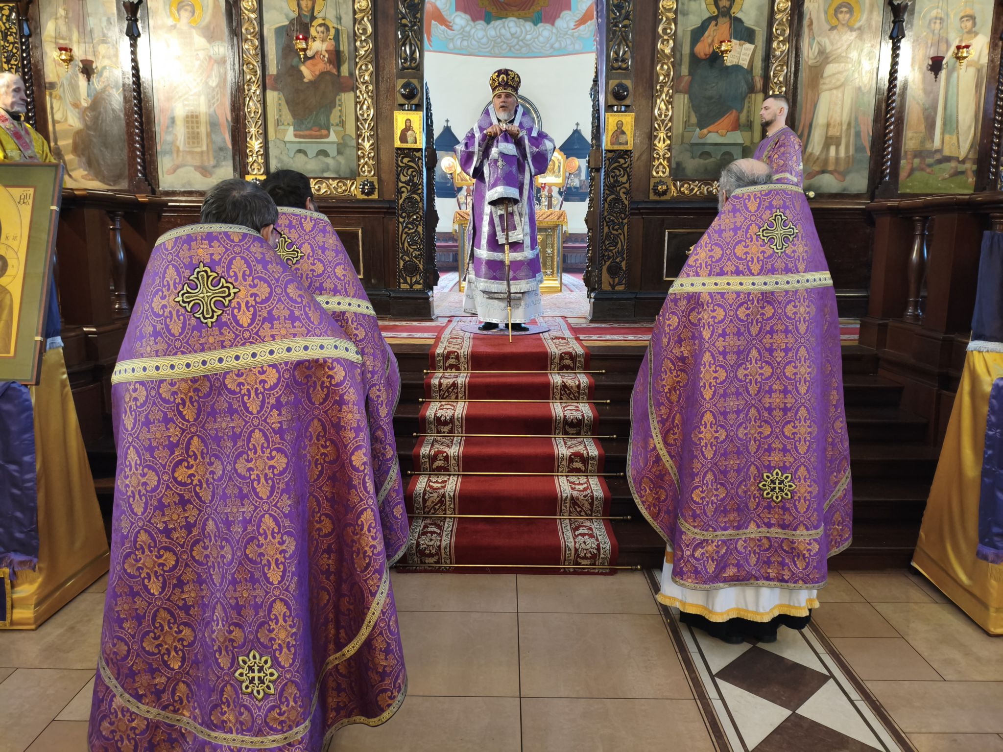 По отпусте литургии было совершено славление с поклонением Честному и Животворящему Кресту Господню. Верующие с благоговением приложились ко Кресту, вознося молитвы о мире, о Церкви Христовой и о даровании каждому силы достойно нести свой жизненный крест.