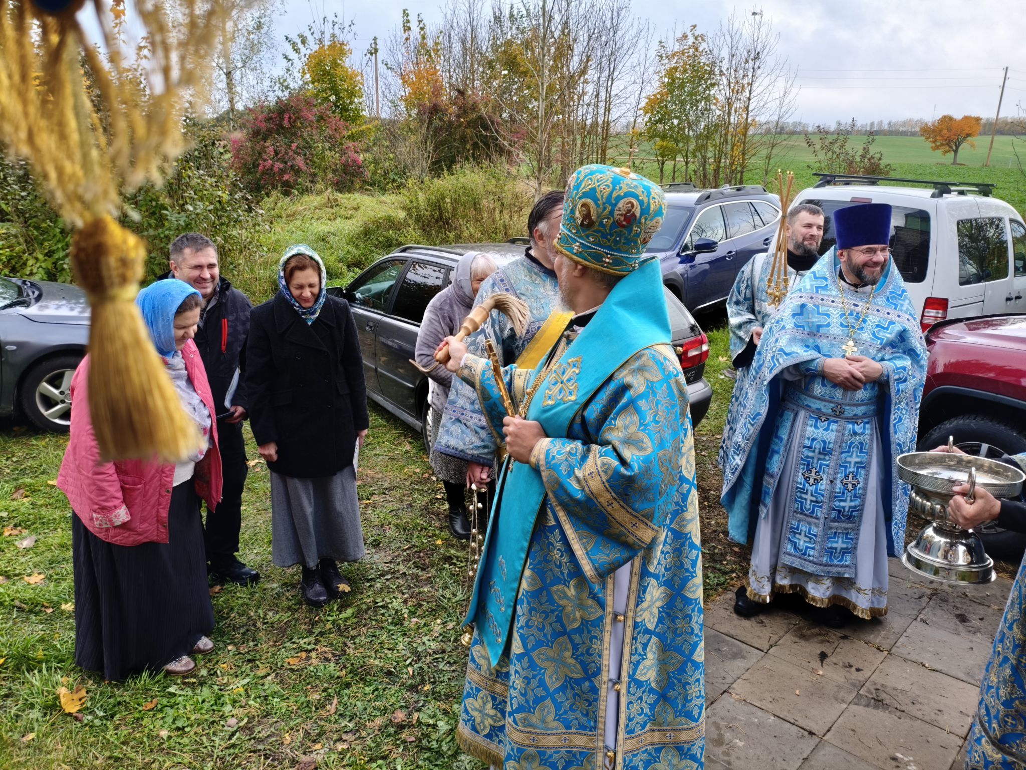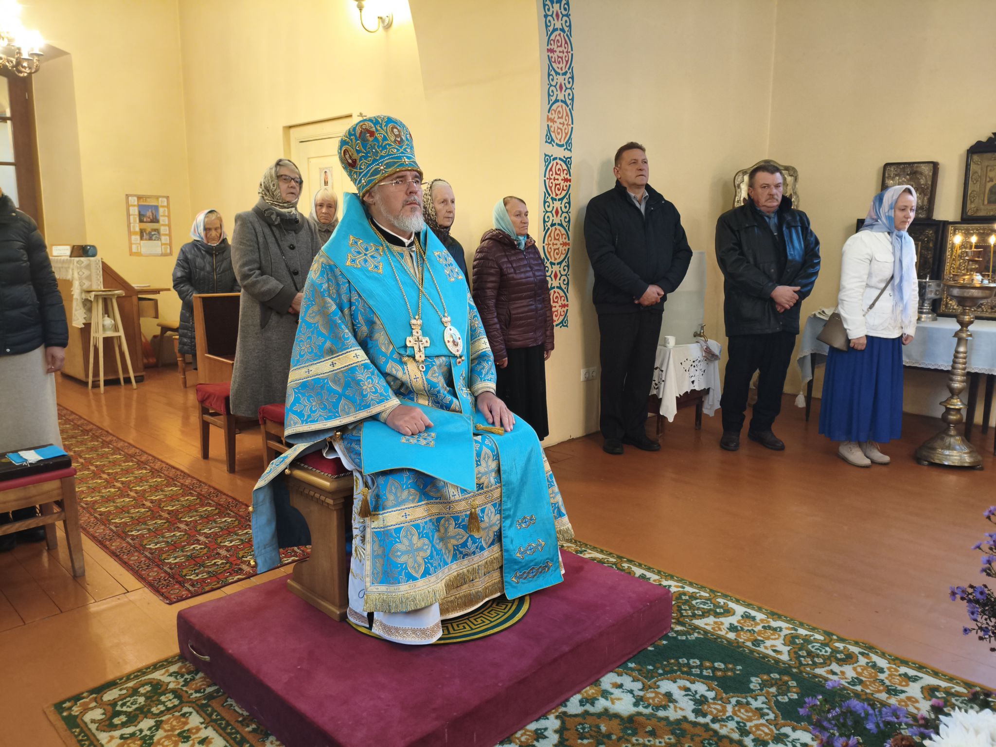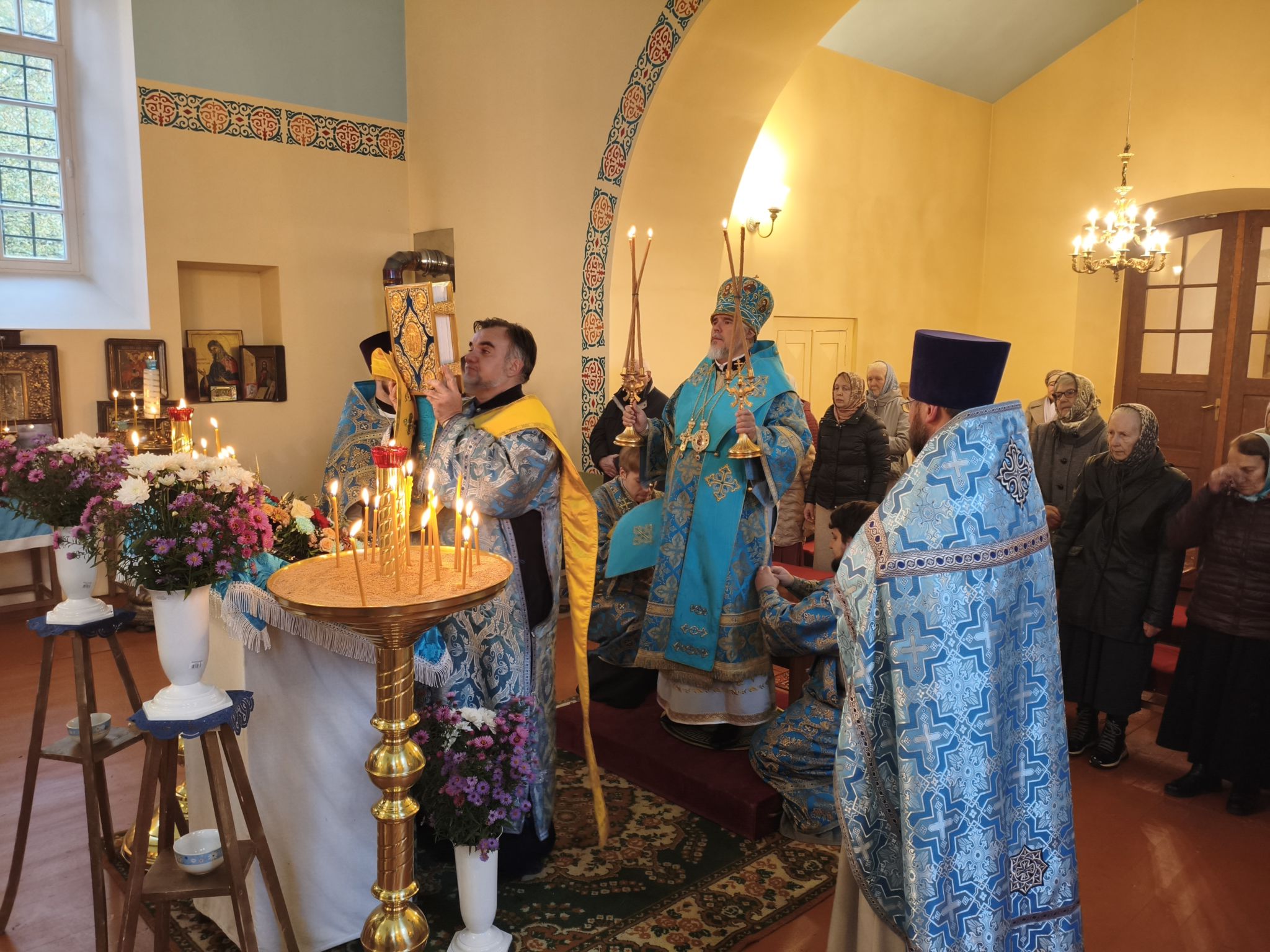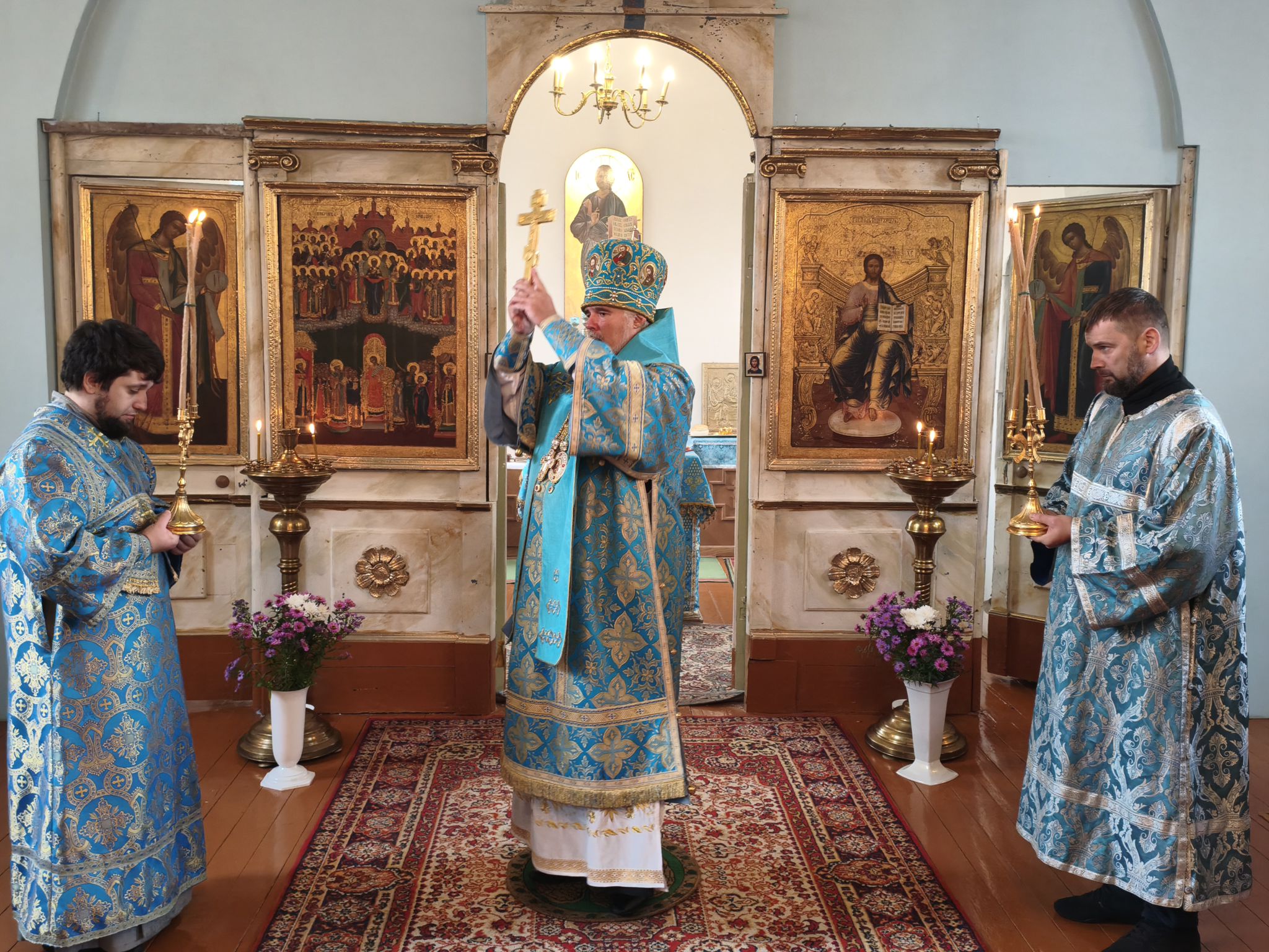 По отпусте Литургии, Его Высокопреосвященство возглавил молебен с крестным ходом вокруг храма; верующие были окроплены святой водой. В завершение богослужения, обращаясь к собравшимся, Владыка Архиепископ поздравил паству с праздником и произнёс проповедь. В ней Высокопреосвященнейший Архипастырь отметил, что «Покров — это не только ограждение от бед, но и близость Пречистой к каждому, кто в простоте сердца ищет помощи». Владыка напомнил слова Богородицы в Кане Галилейской: «Что скажет Он вам — то сделайте» (Ин. 2:5), подчеркнув: «Под Её Покровом мы научаемся слушать Христа и исполнять Его слово. Тогда и дом наш будет как дом Марии, где главное — слово Господне, и как дом Марфы, где всякий труд освящается любовью». Завершая слово, Архиепископ Александр призвал верующих «всё упование возлагать на Матерь Божию вознося к ней молитвословие: “Радуйся, Радосте наша, покрый нас от всякого зла честным Твоим омофором”» и поздравил настоятеля и приход с храмовым праздником.