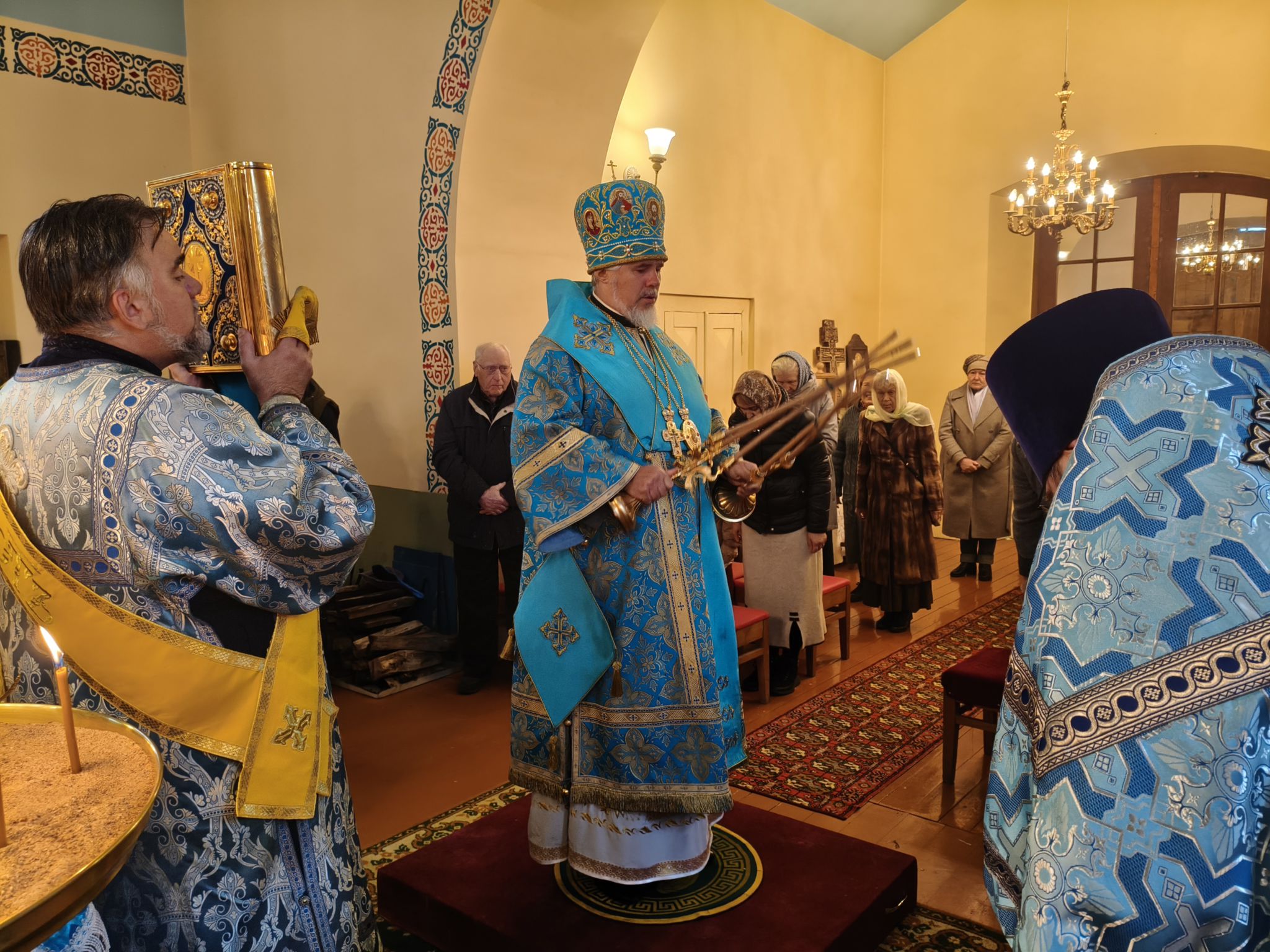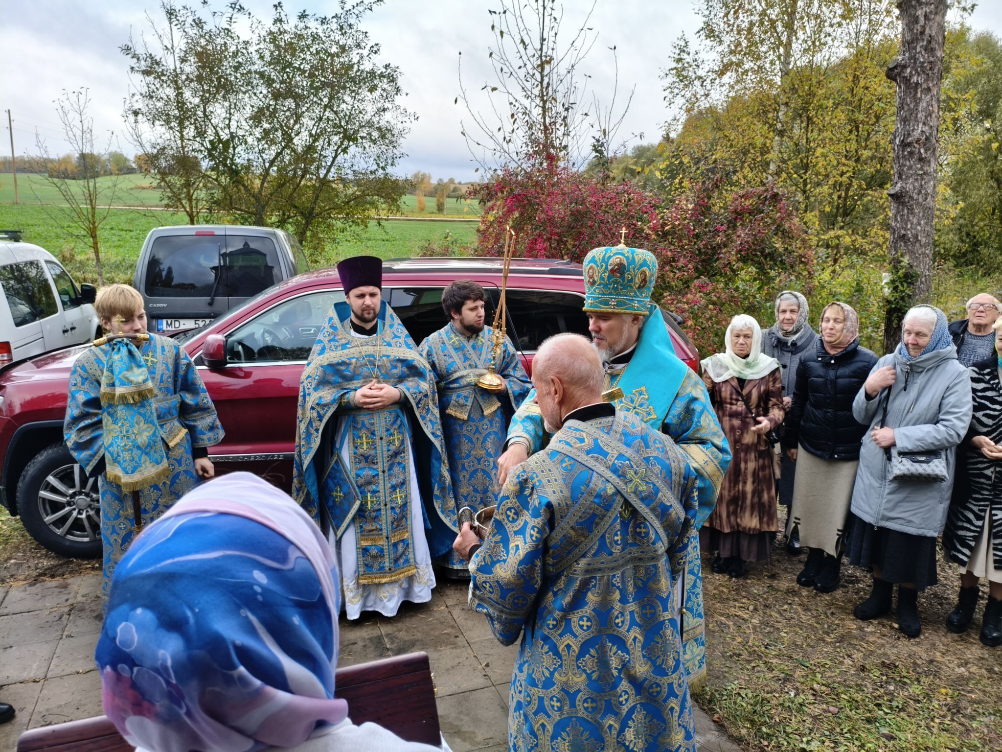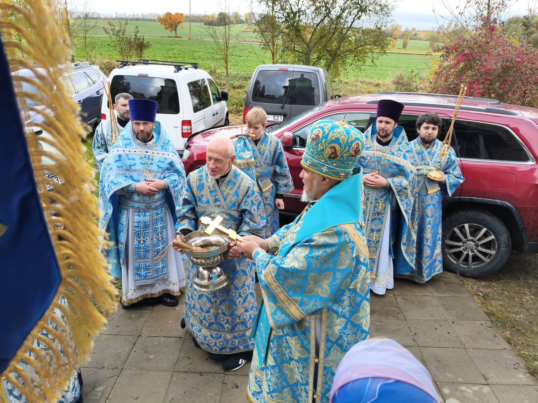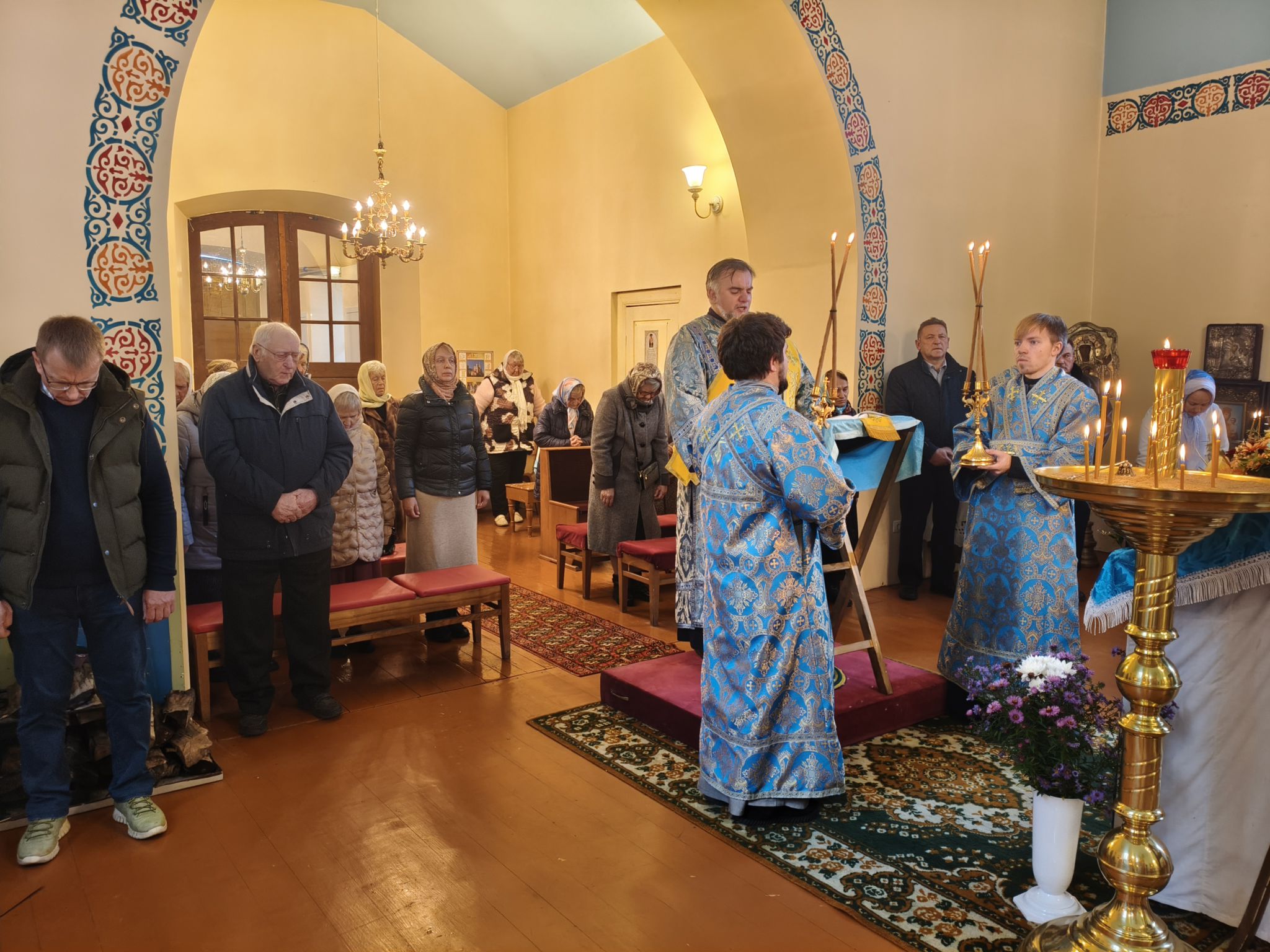 По отпусте Литургии, Его Высокопреосвященство возглавил молебен с крестным ходом вокруг храма; верующие были окроплены святой водой. В завершение богослужения, обращаясь к собравшимся, Владыка Архиепископ поздравил паству с праздником и произнёс проповедь. В ней Высокопреосвященнейший Архипастырь отметил, что «Покров — это не только ограждение от бед, но и близость Пречистой к каждому, кто в простоте сердца ищет помощи». Владыка напомнил слова Богородицы в Кане Галилейской: «Что скажет Он вам — то сделайте» (Ин. 2:5), подчеркнув: «Под Её Покровом мы научаемся слушать Христа и исполнять Его слово. Тогда и дом наш будет как дом Марии, где главное — слово Господне, и как дом Марфы, где всякий труд освящается любовью». Завершая слово, Архиепископ Александр призвал верующих «всё упование возлагать на Матерь Божию вознося к ней молитвословие: “Радуйся, Радосте наша, покрый нас от всякого зла честным Твоим омофором”» и поздравил настоятеля и приход с храмовым праздником.