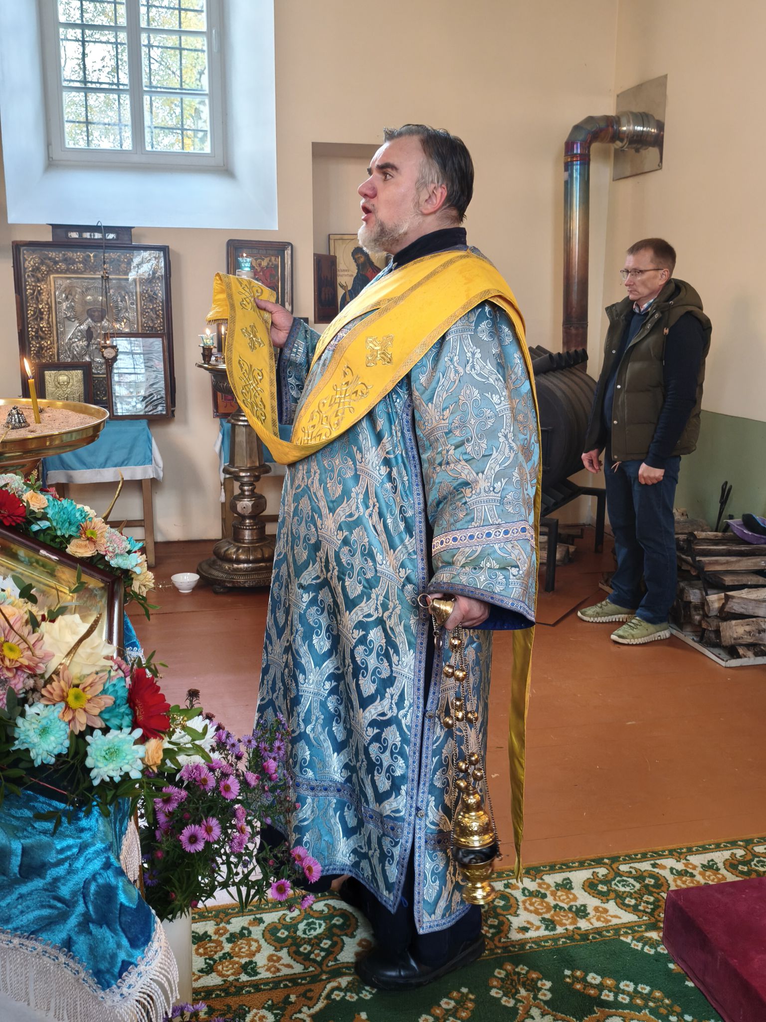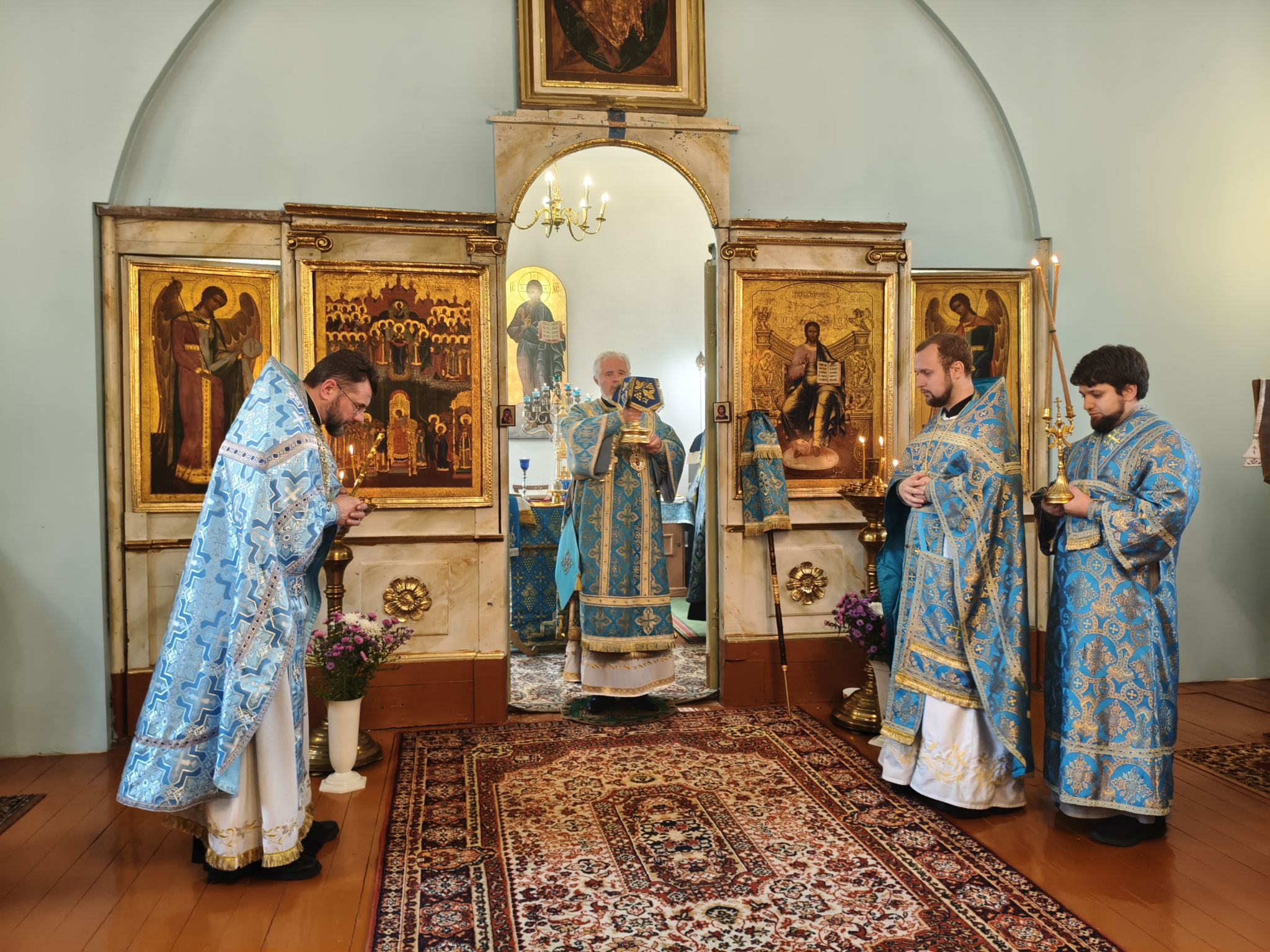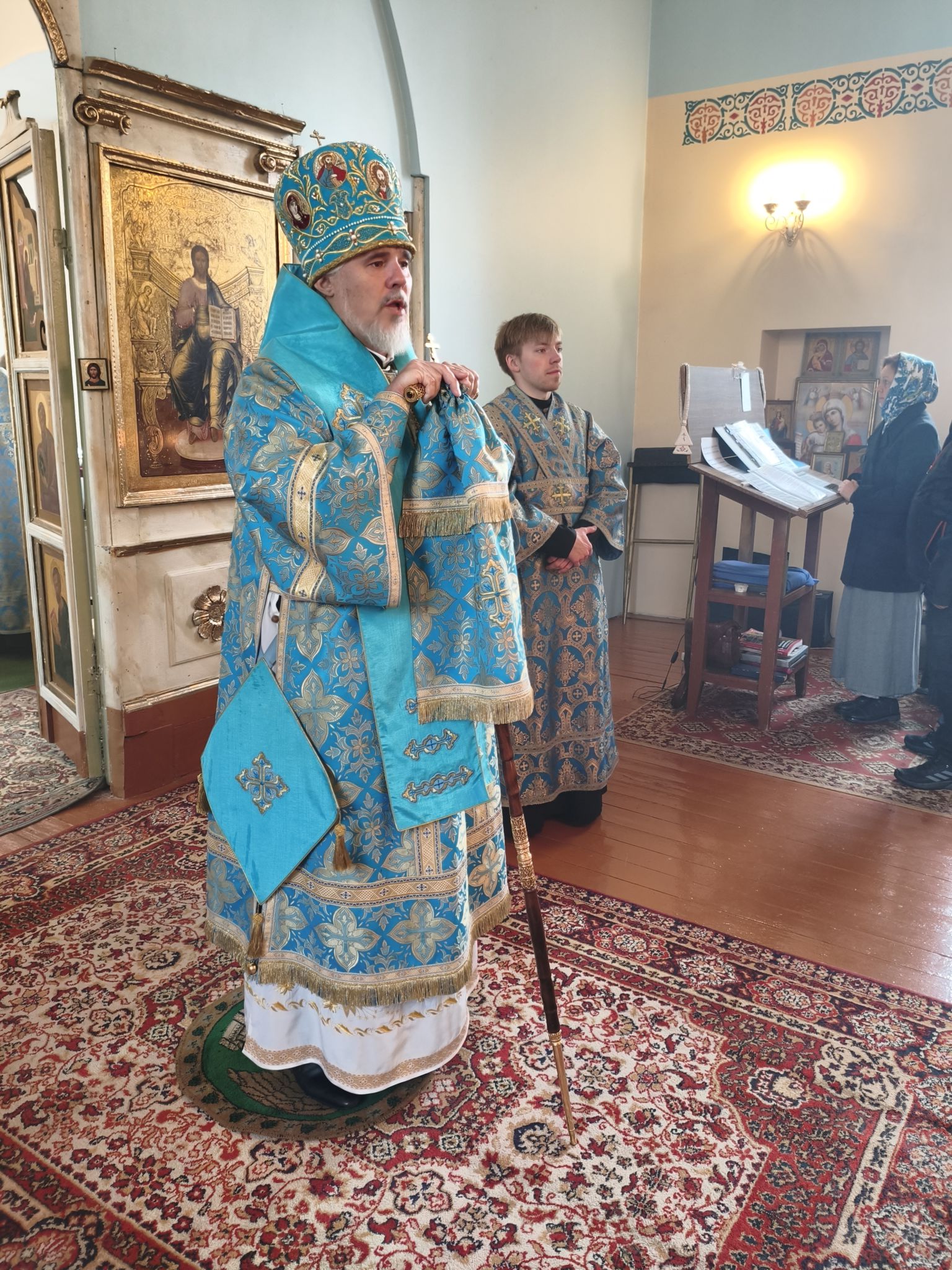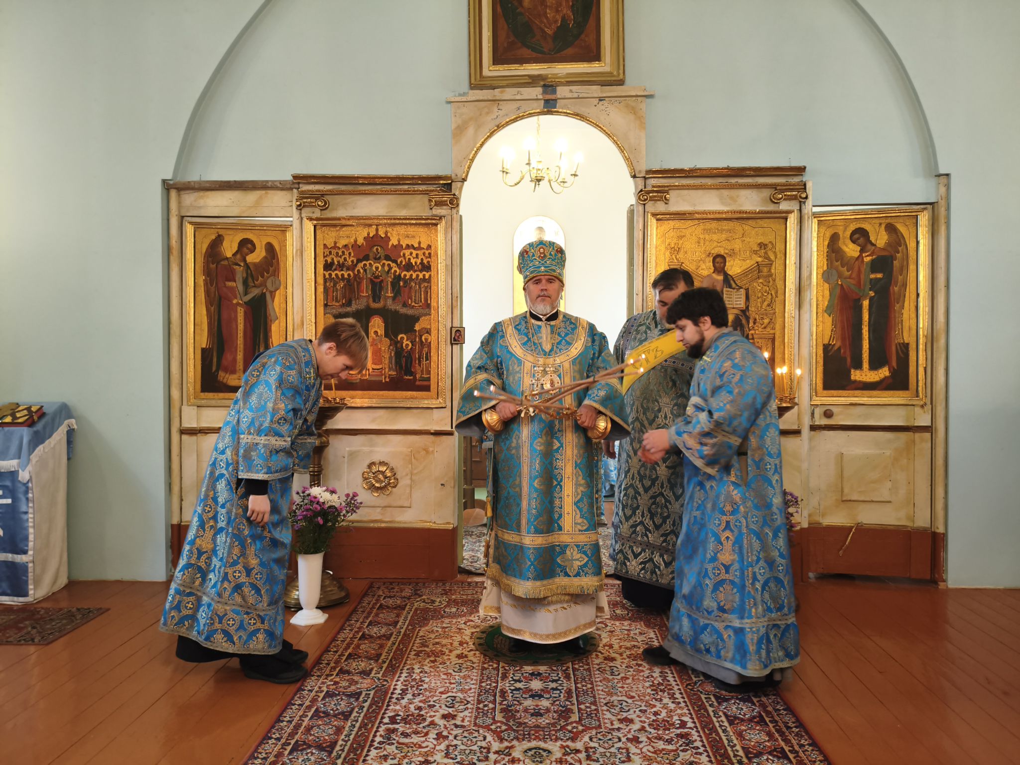 По отпусте Литургии, Его Высокопреосвященство возглавил молебен с крестным ходом вокруг храма; верующие были окроплены святой водой. В завершение богослужения, обращаясь к собравшимся, Владыка Архиепископ поздравил паству с праздником и произнёс проповедь. В ней Высокопреосвященнейший Архипастырь отметил, что «Покров — это не только ограждение от бед, но и близость Пречистой к каждому, кто в простоте сердца ищет помощи». Владыка напомнил слова Богородицы в Кане Галилейской: «Что скажет Он вам — то сделайте» (Ин. 2:5), подчеркнув: «Под Её Покровом мы научаемся слушать Христа и исполнять Его слово. Тогда и дом наш будет как дом Марии, где главное — слово Господне, и как дом Марфы, где всякий труд освящается любовью». Завершая слово, Архиепископ Александр призвал верующих «всё упование возлагать на Матерь Божию вознося к ней молитвословие: “Радуйся, Радосте наша, покрый нас от всякого зла честным Твоим омофором”» и поздравил настоятеля и приход с храмовым праздником.