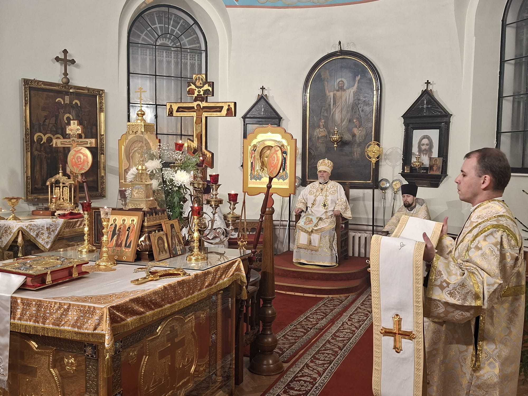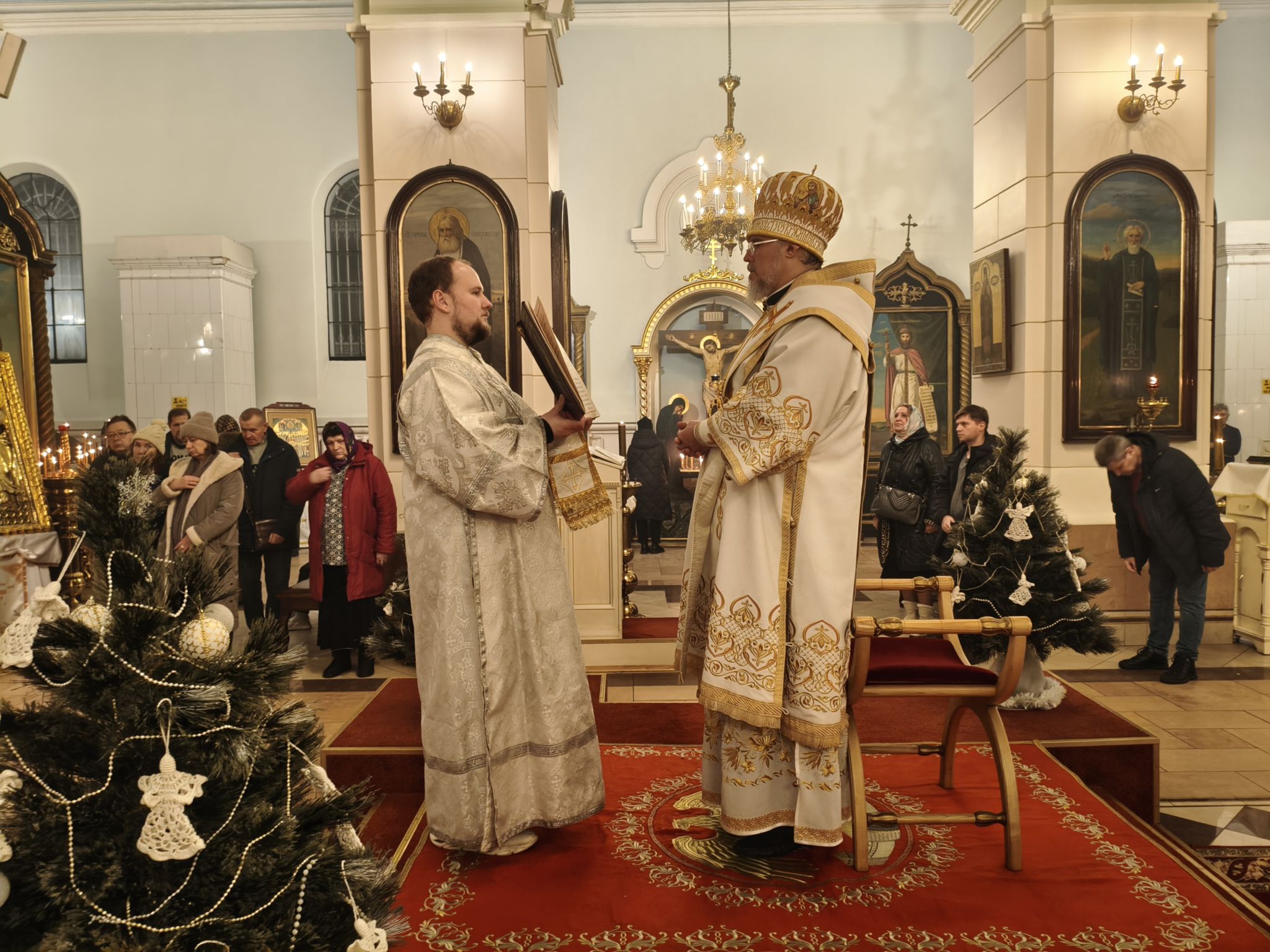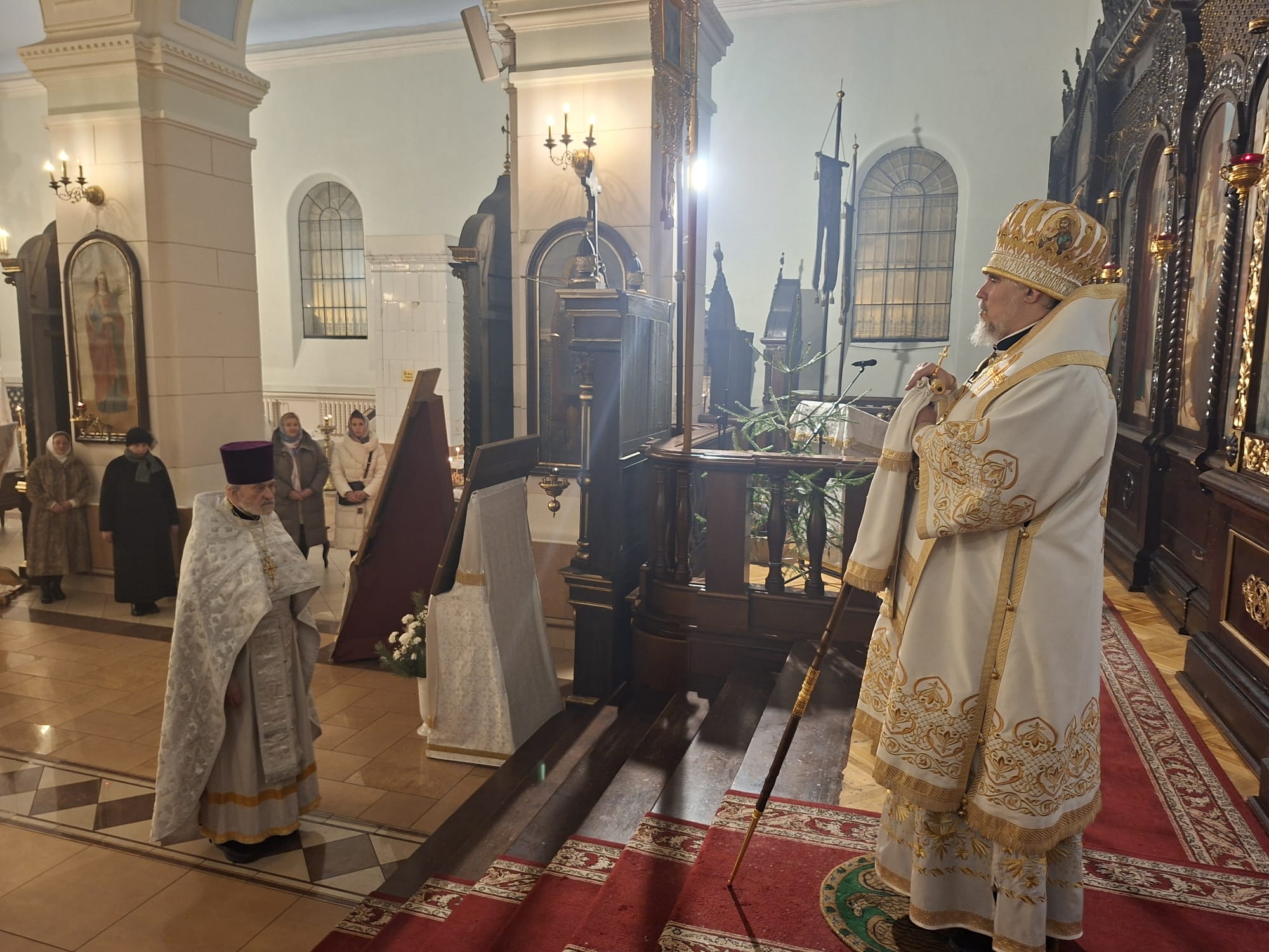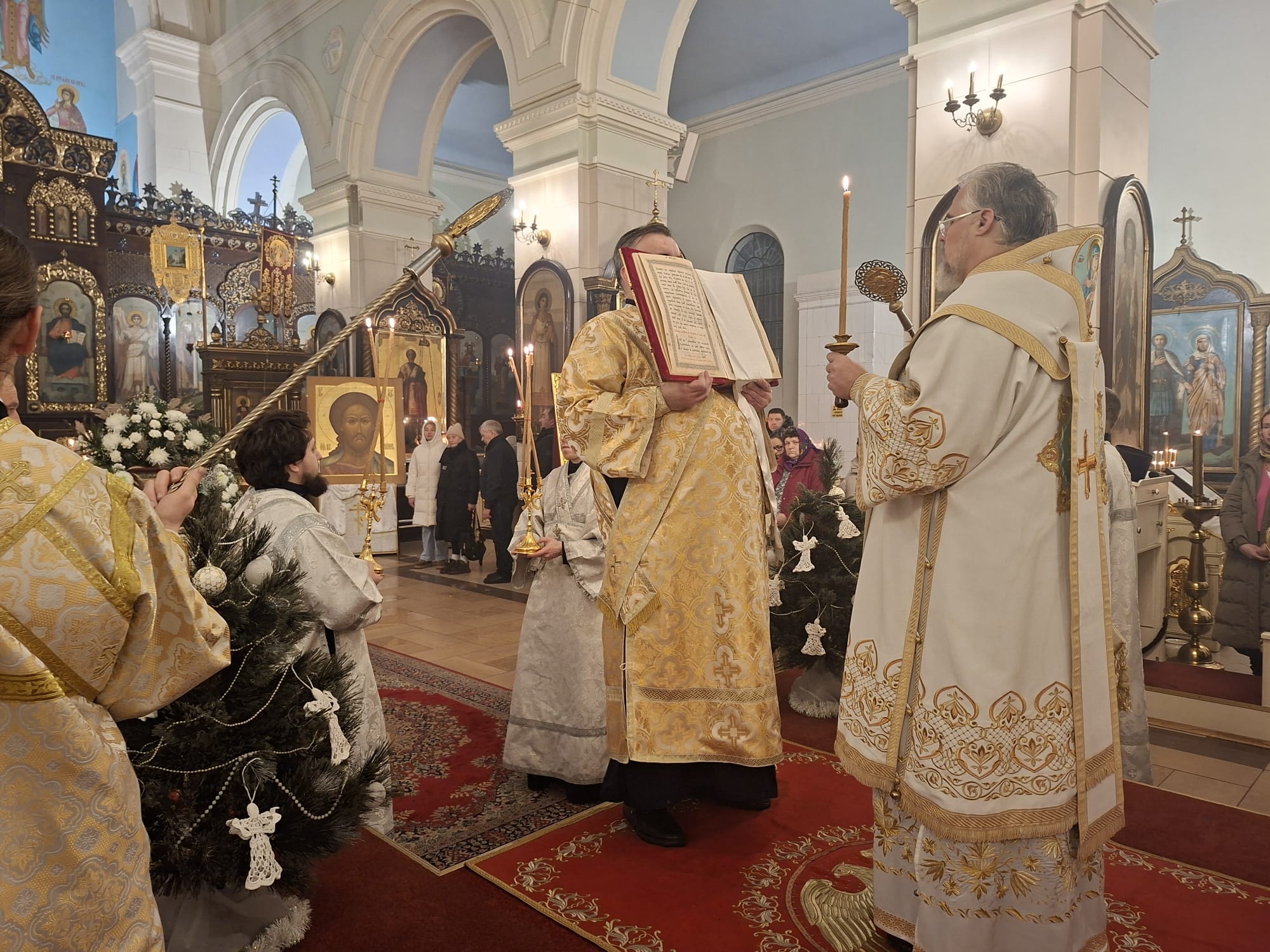По отпусте праздничной Литургии, после славления Рождества Христова, Высокопреосвященнейший Архиепископ Александр обратился к верующим со словом назидания. Архипастырь напомнил, что Церковь радостно возглашает: «Христос рождается — славите!», ибо в Рождестве Христовом явилась миру спасительная любовь Божия. Владыка указал, что Господь Сам ведёт ищущих к Себе, как некогда звезда привела волхвов к месту, где был Богомладенец, и призвал хранить в сердце мир Христов, являя радость праздника делами благодарения и любви к ближним. Также было подчеркнуто, что благодать Божия, по слову апостола, не только утешает, но и обновляет человека, возводя его к новому житию во Христе.