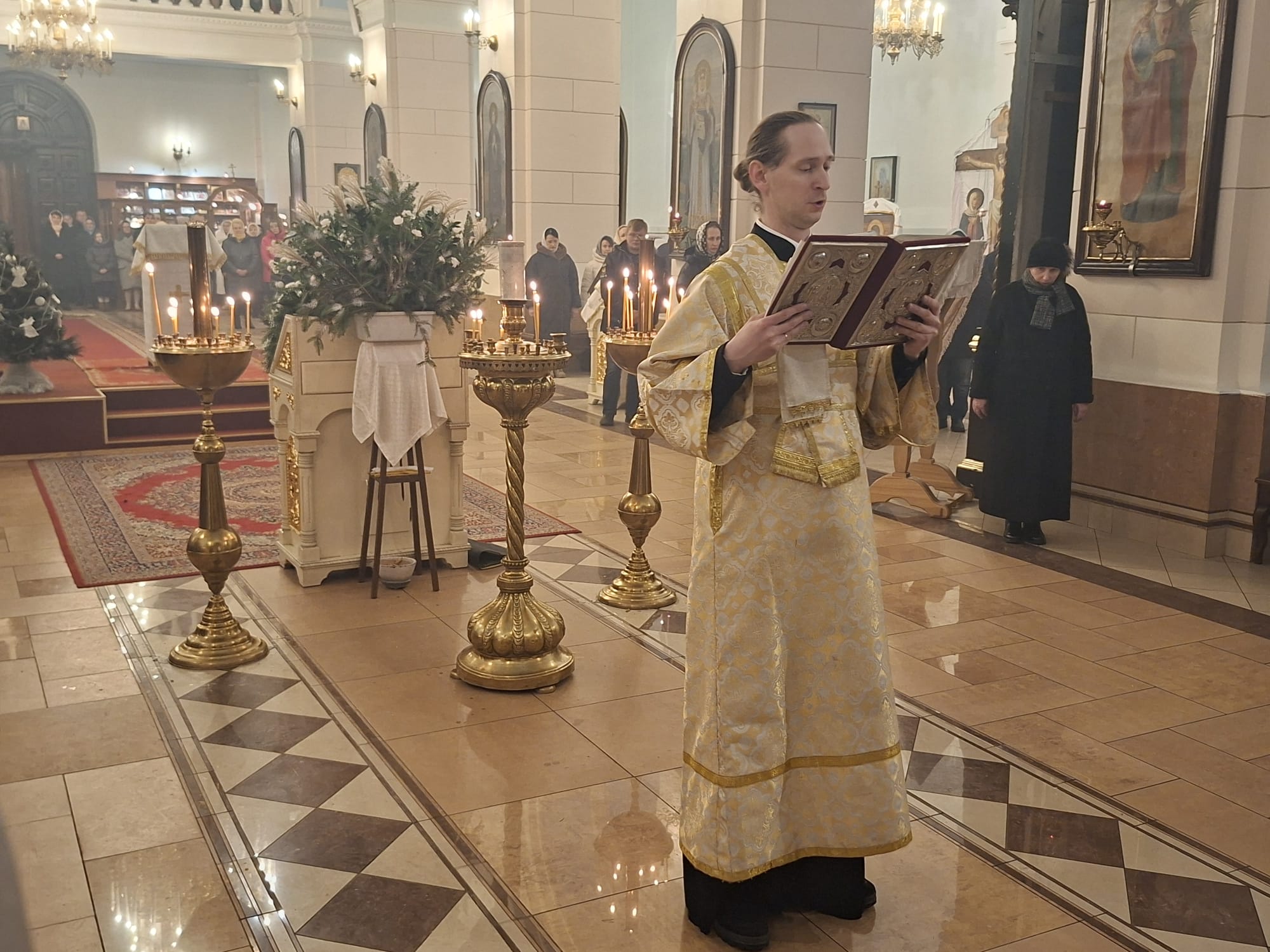 В ночь с 6 на 7 января 2026 года (вторник/среда), в великий двунадесятый праздник Рождества Господа и Спасителя нашего Иисуса Христа, в кафедральном соборе святых страстотерпцев великих князей Бориса и Глеба г. Даугавпилса были совершены всенощное бдение (состоящее из великого повечерия с литией, утрени и 1-го часа) и Божественная литургия святителя Иоанна Златоуста, которые возглавил Его Высокопреосвященство, Высокопреосвященнейший Александр, Архиепископ Даугавпилсский и Резекненский.
