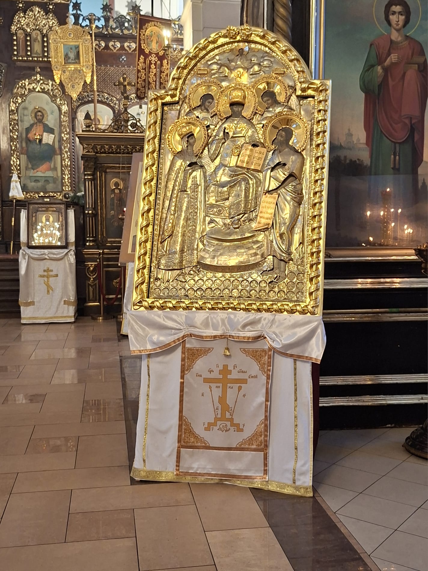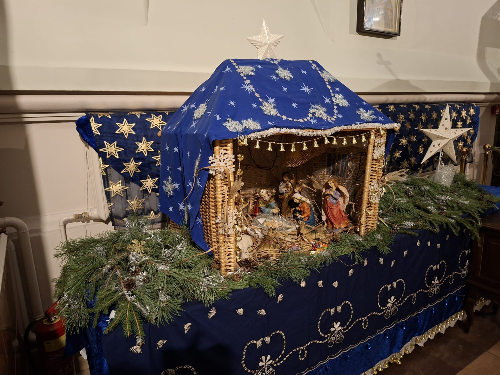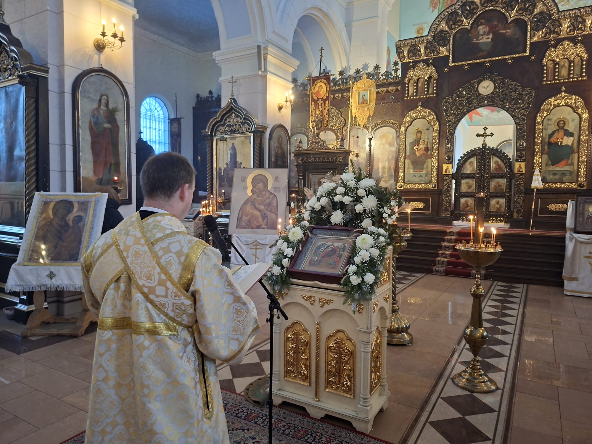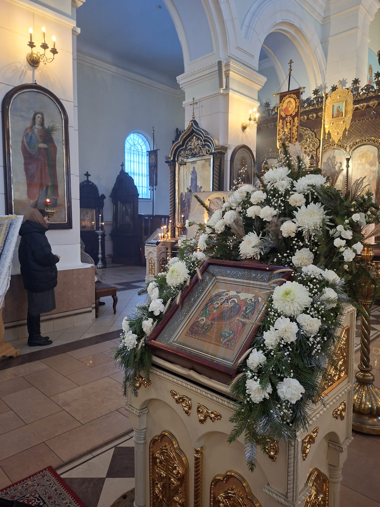 По окончании богослужения духовенство во главе с Высокопреосвященнейшим Владыкой Александром у праздничной иконы Рождества Христова и рождественской свечи, символизирующей Вифлеемскую звезду, совершило славление, во время которого были пропеты тропарь и кондак празднику Рождества Христова.