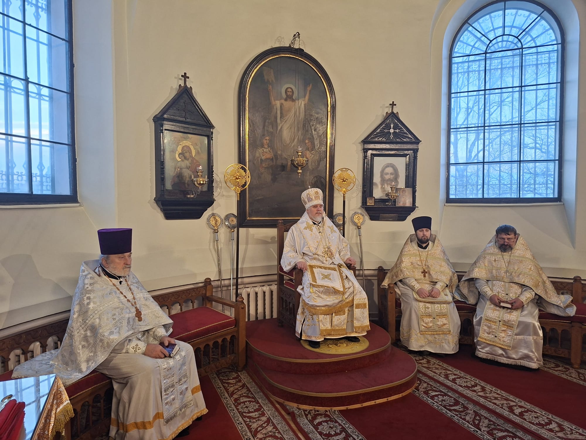 Говоря о словах Евангелия «не было им места», Архиепископ Александр призвал каждого испытать свою совесть: не бывает ли так, что и в душе «не находится места» Христу, когда сердце теснится от попечений, раздражения и обид. Вместе с тем Владыка указал на кротость и милость Спасителя, Который не принуждает, но ожидает свободного ответа человека, — и потому истинная подготовка к празднику начинается с покаяния, примирения и дел милосердия. Наконец, напоминая о пастырях, первыми услышавших ангельское благовестие, Высокопреосвященнейший Владыка подчеркнул, что путь к яслям Христовым открывается простоте веры и чистоте сердца, а плодом встречи со Спасителем становится обновление внутреннего человека и мир Божий, превосходящий всякий ум.