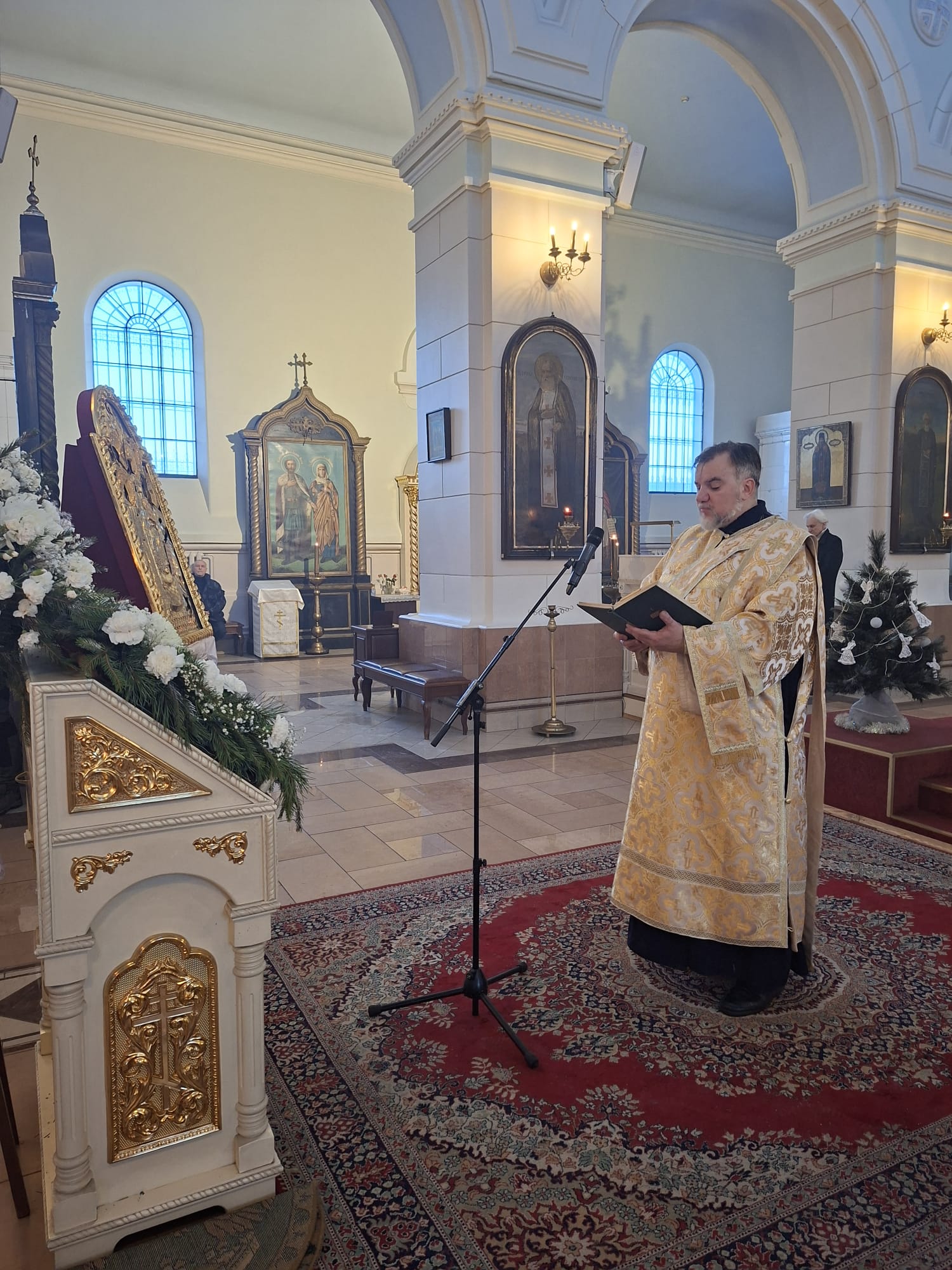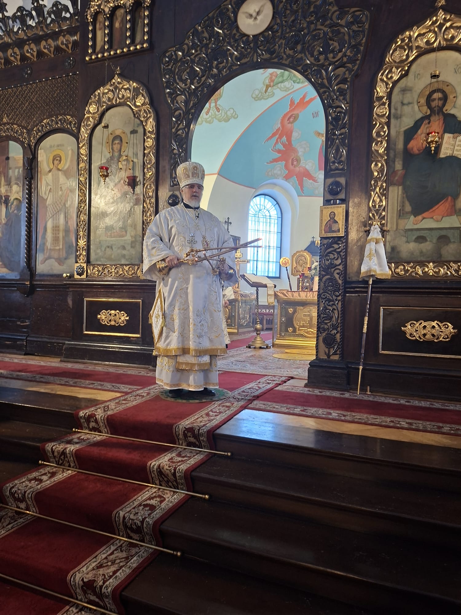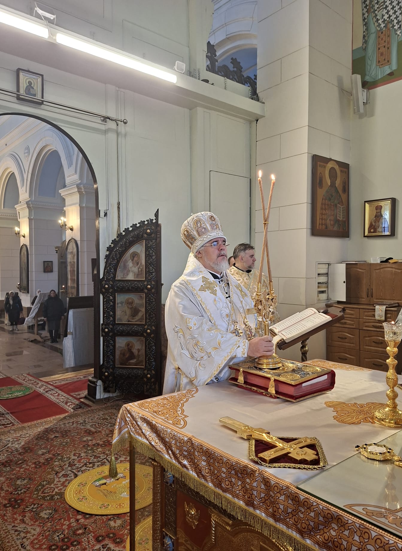Затем, Владыка Александр обратился к молящимся с архипастырским словом. В своём наставлении Высокопреосвященнейший Архипастырь напомнил, что Навечерие Рождества Христова ставит верующего «на пороге великой тайны» и призывает к бодрствованию сердца, дабы встретить грядущего Господа не внешними приготовлениями, но внутренним вниманием. Особо было отмечено, что евангельское свидетельство о Рождестве раскрывает глубину смирения Боговоплощения: Тот, Кто держит всё словом, силы Своей, приходит в убогости и тишине, — и тем самым освящает человеческую немощь и скорби, обращая их в путь спасения.