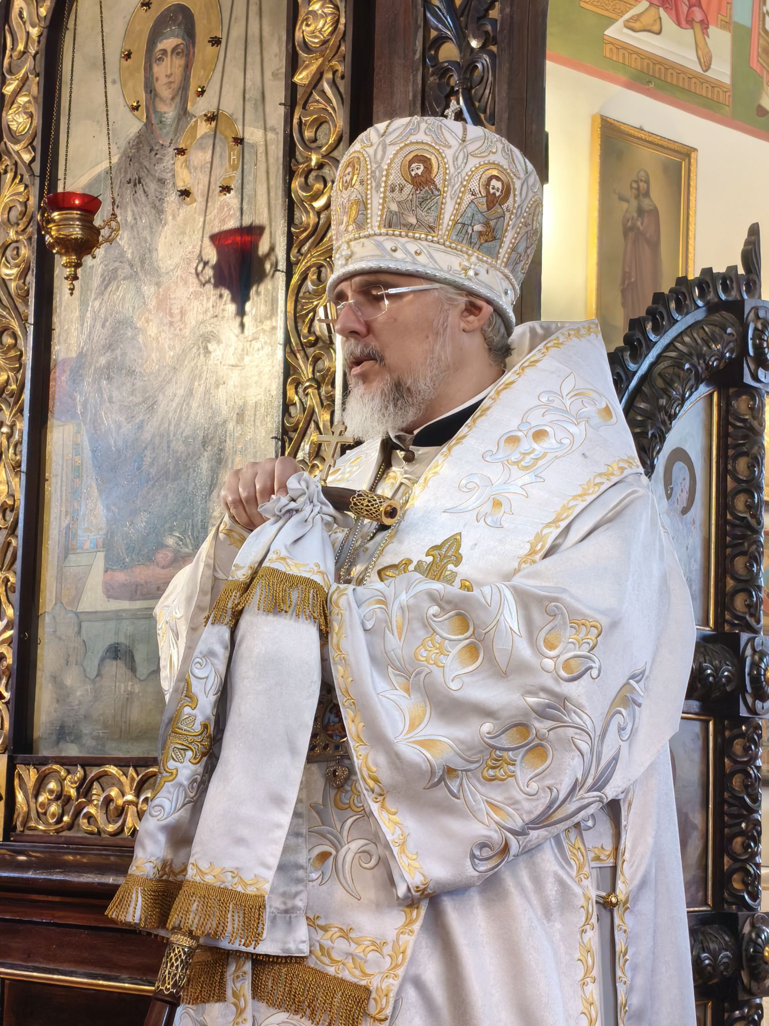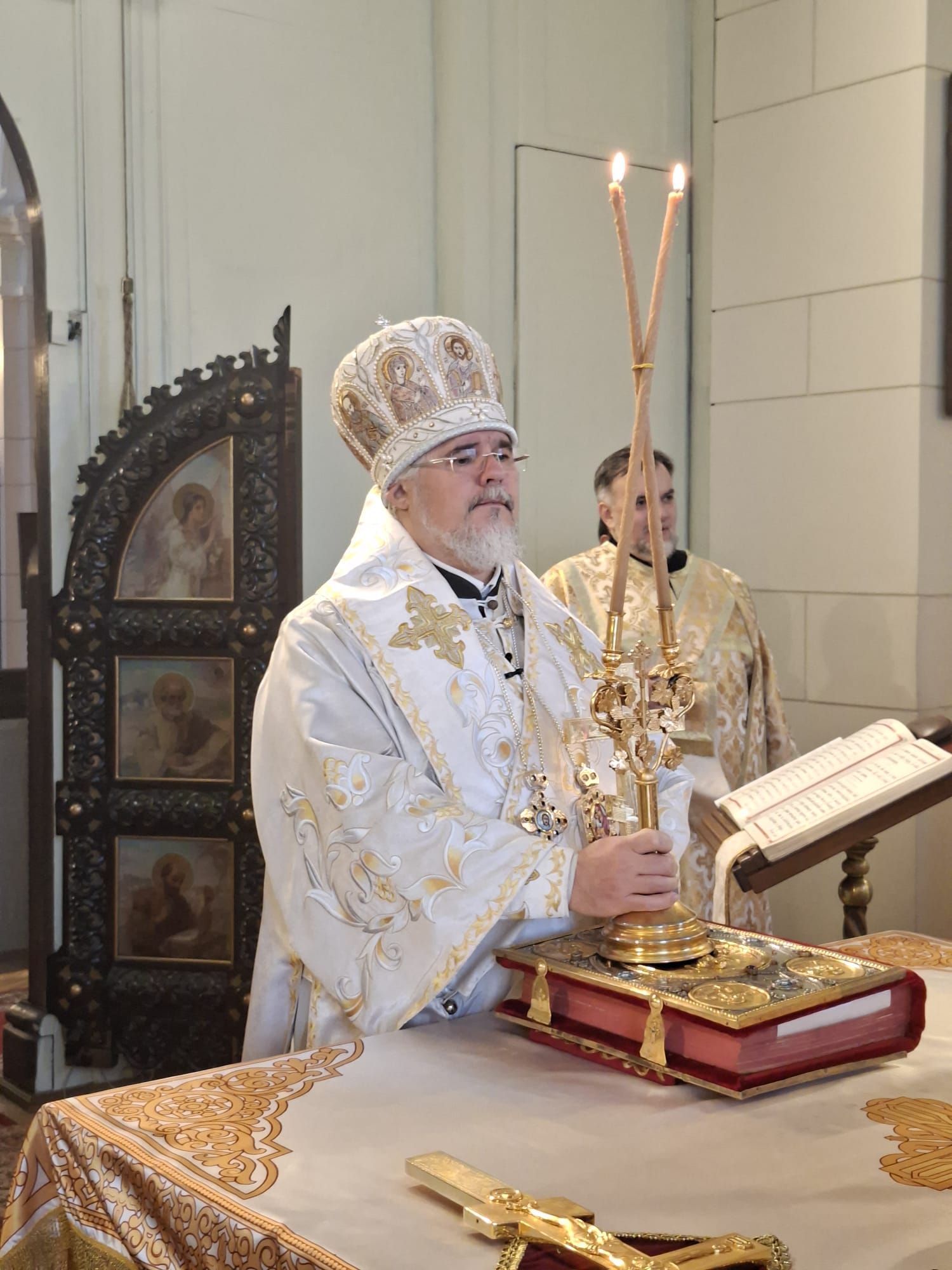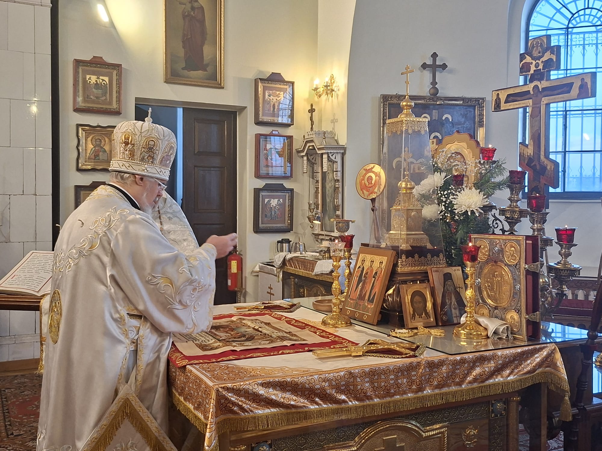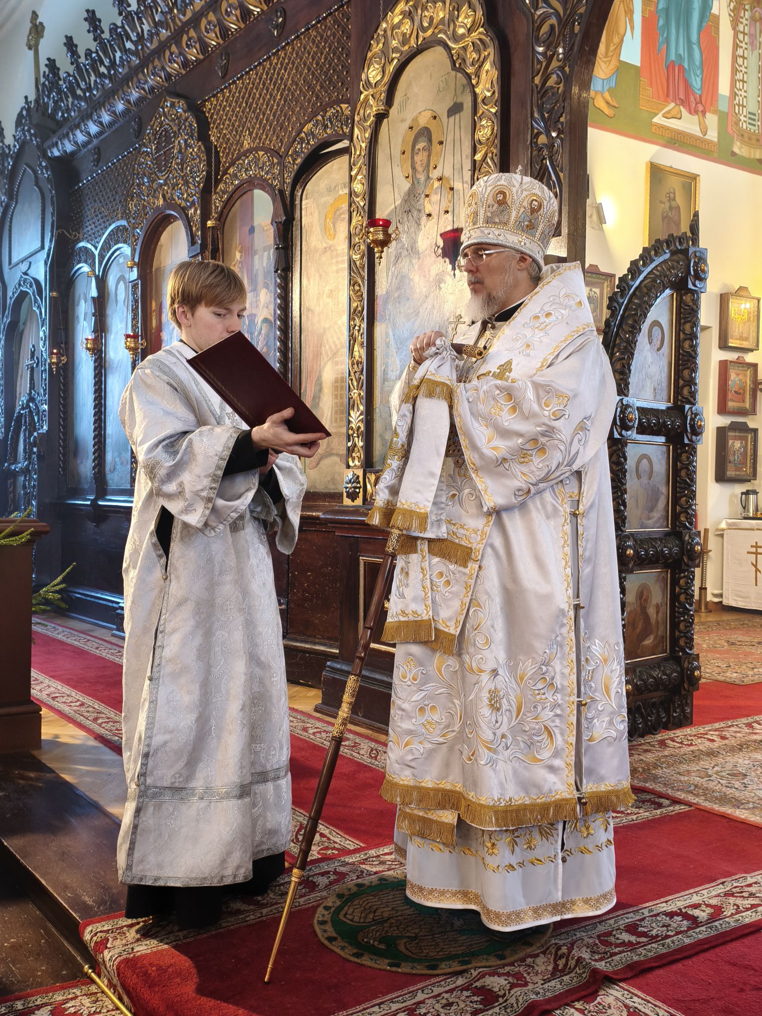 Затем, Владыка Александр обратился к молящимся с архипастырским словом. В своём наставлении Высокопреосвященнейший Архипастырь напомнил, что Навечерие Рождества Христова ставит верующего «на пороге великой тайны» и призывает к бодрствованию сердца, дабы встретить грядущего Господа не внешними приготовлениями, но внутренним вниманием. Особо было отмечено, что евангельское свидетельство о Рождестве раскрывает глубину смирения Боговоплощения: Тот, Кто держит всё словом, силы Своей, приходит в убогости и тишине, — и тем самым освящает человеческую немощь и скорби, обращая их в путь спасения.