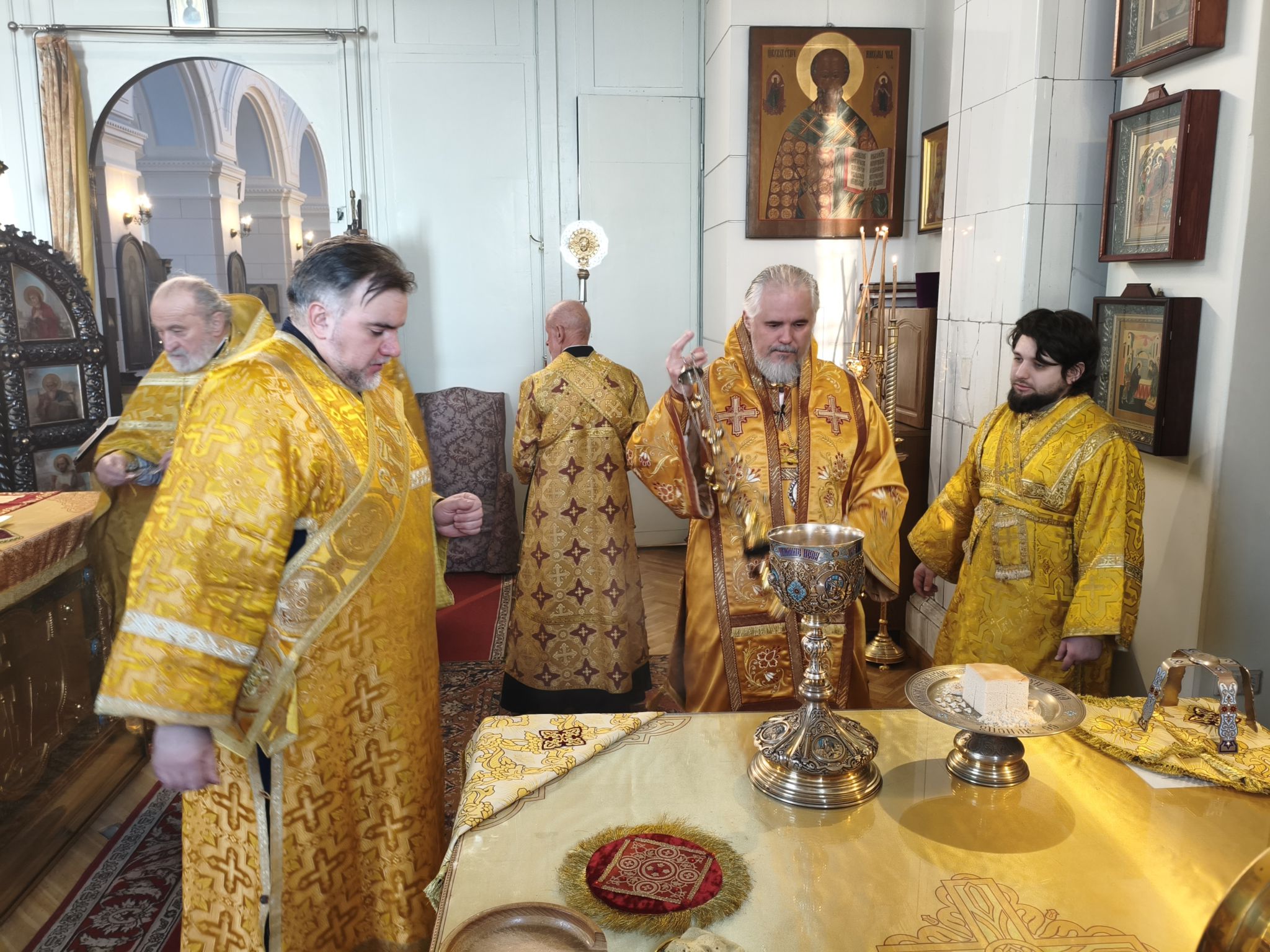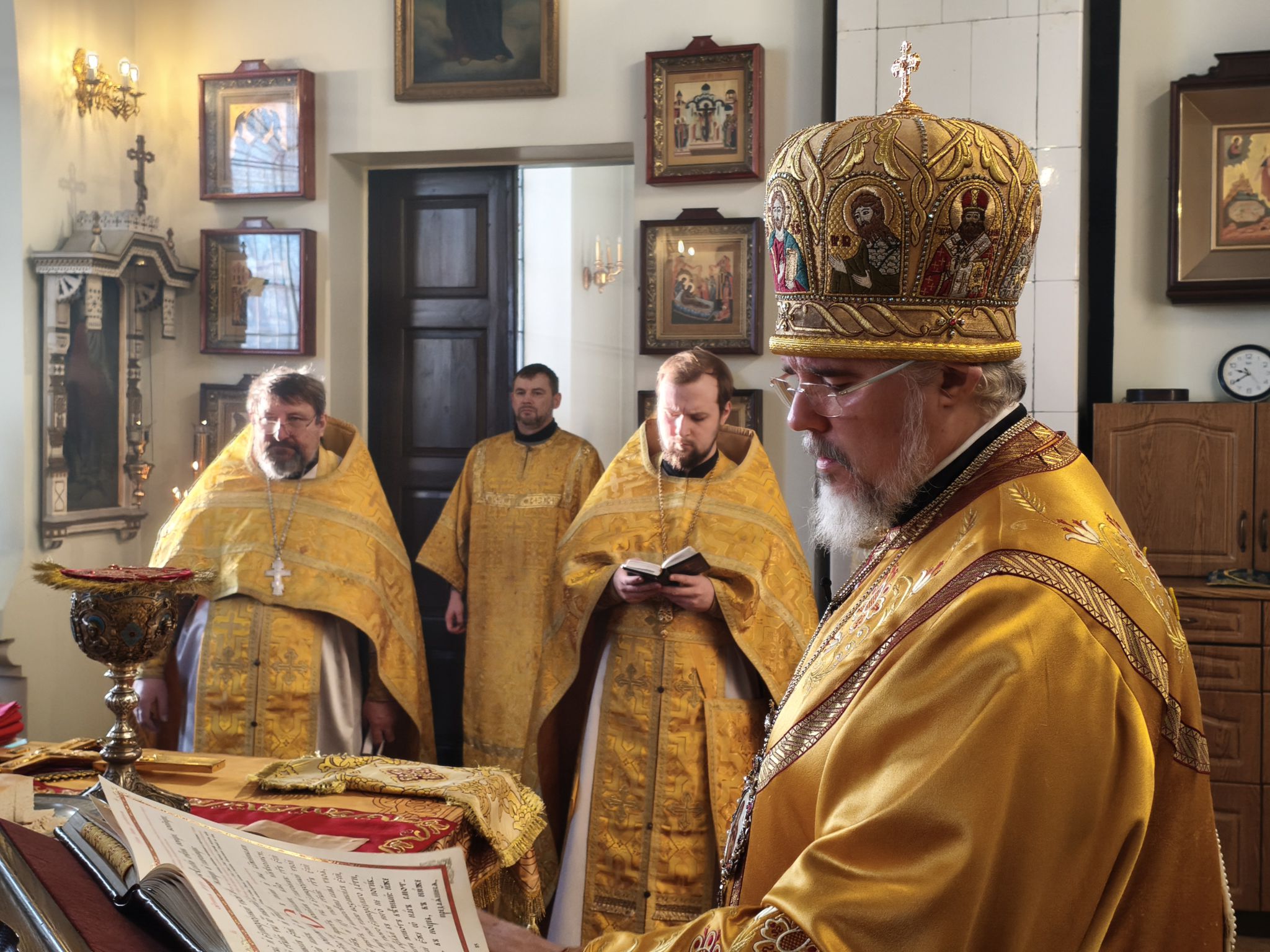 Во время Литургии возносились сугубые молитвы о мире и благоденствии Святой Церкви. По окончании же проповеди Архиепископ Александр еще раз поздравил прихожан с воскресным днем и преподал всем Божие благословение.