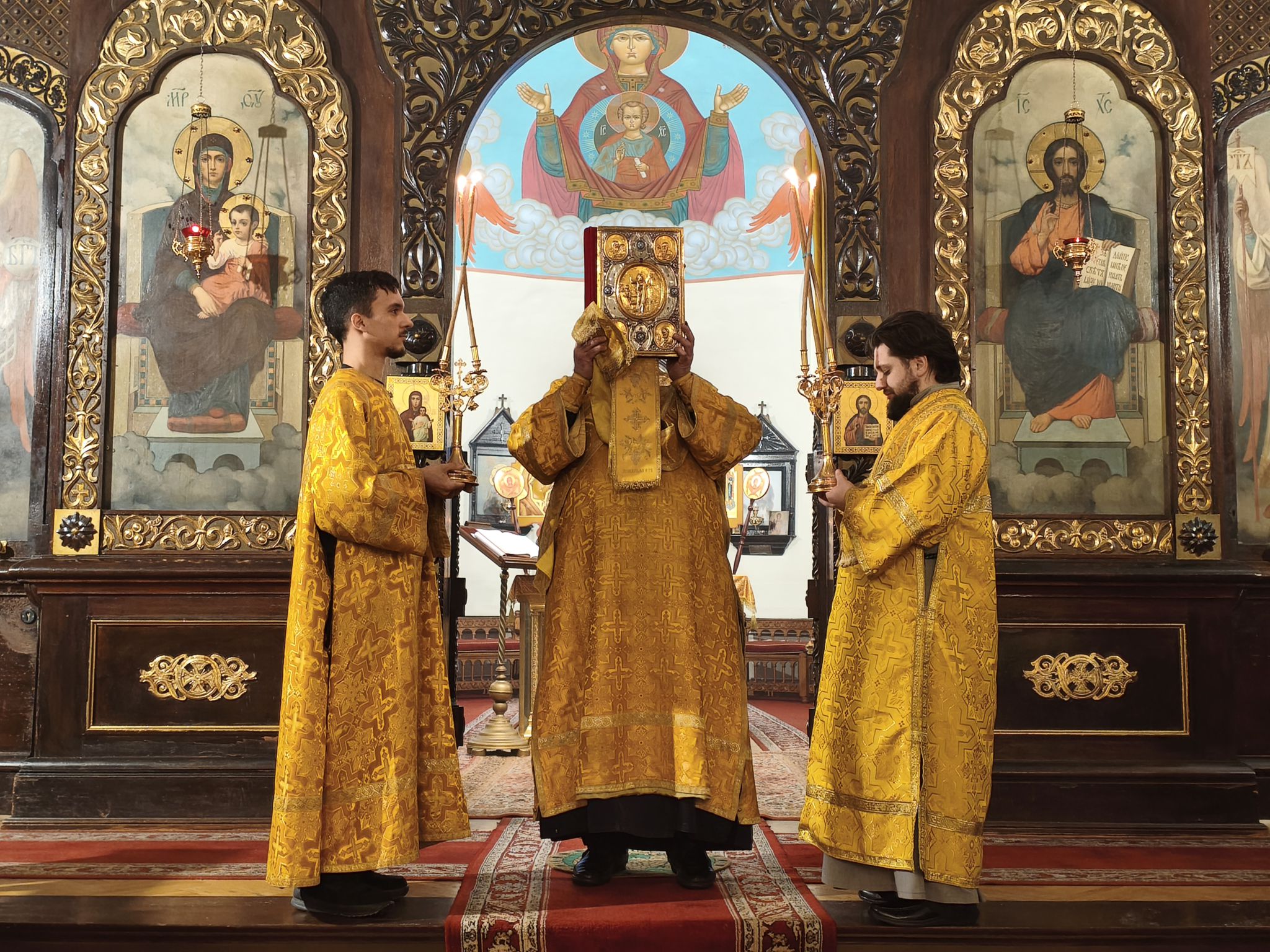 За богослужением на утрени было прочитано 2-е воскресное Евангелие от Марка (Мк., 70 зач., XVI, 1-8), повествующее о явлении Ангела женам-мироносицам у пустого Гроба Господня и возвещении ими великой радости о Воскресении Христовом.