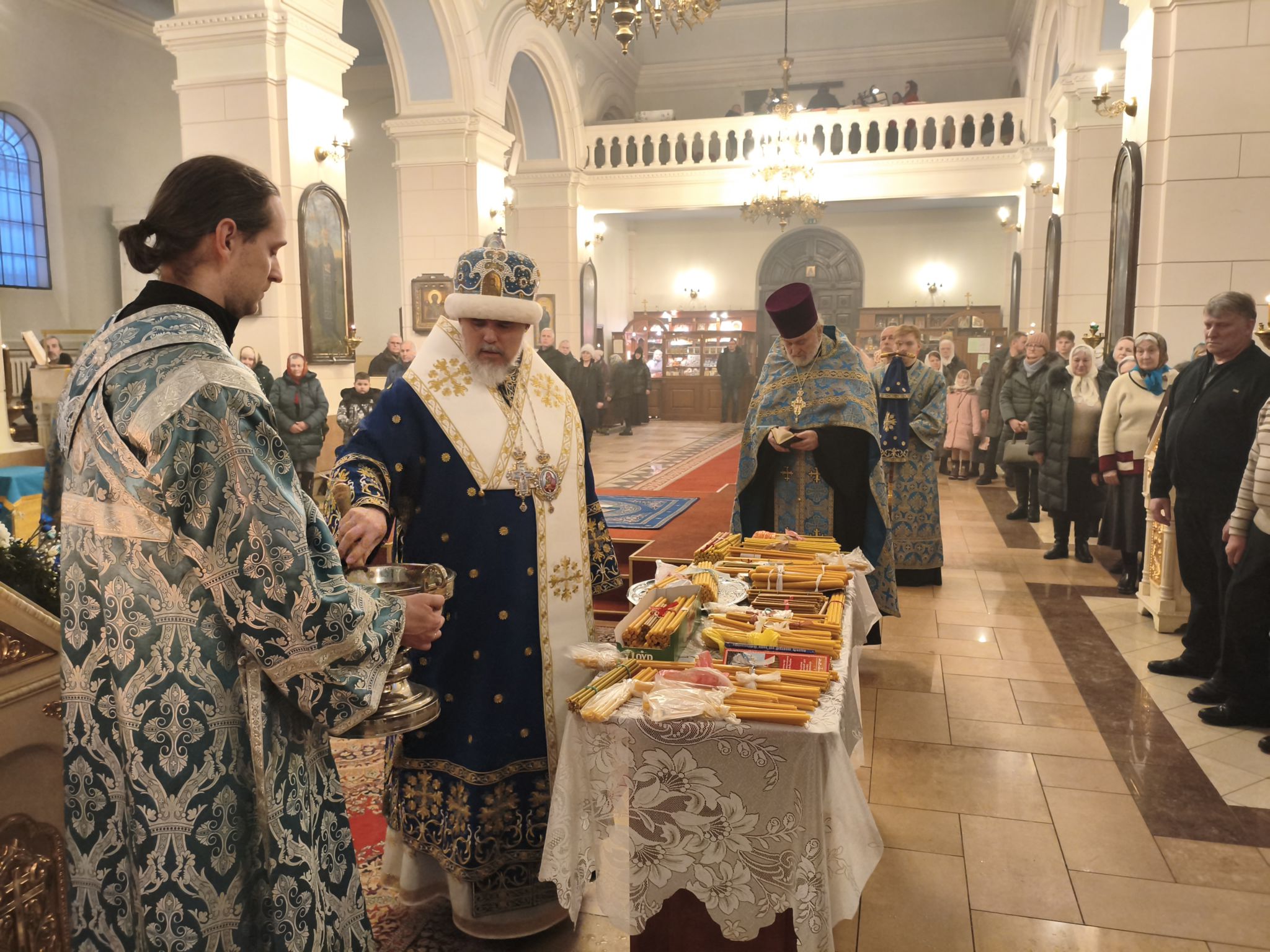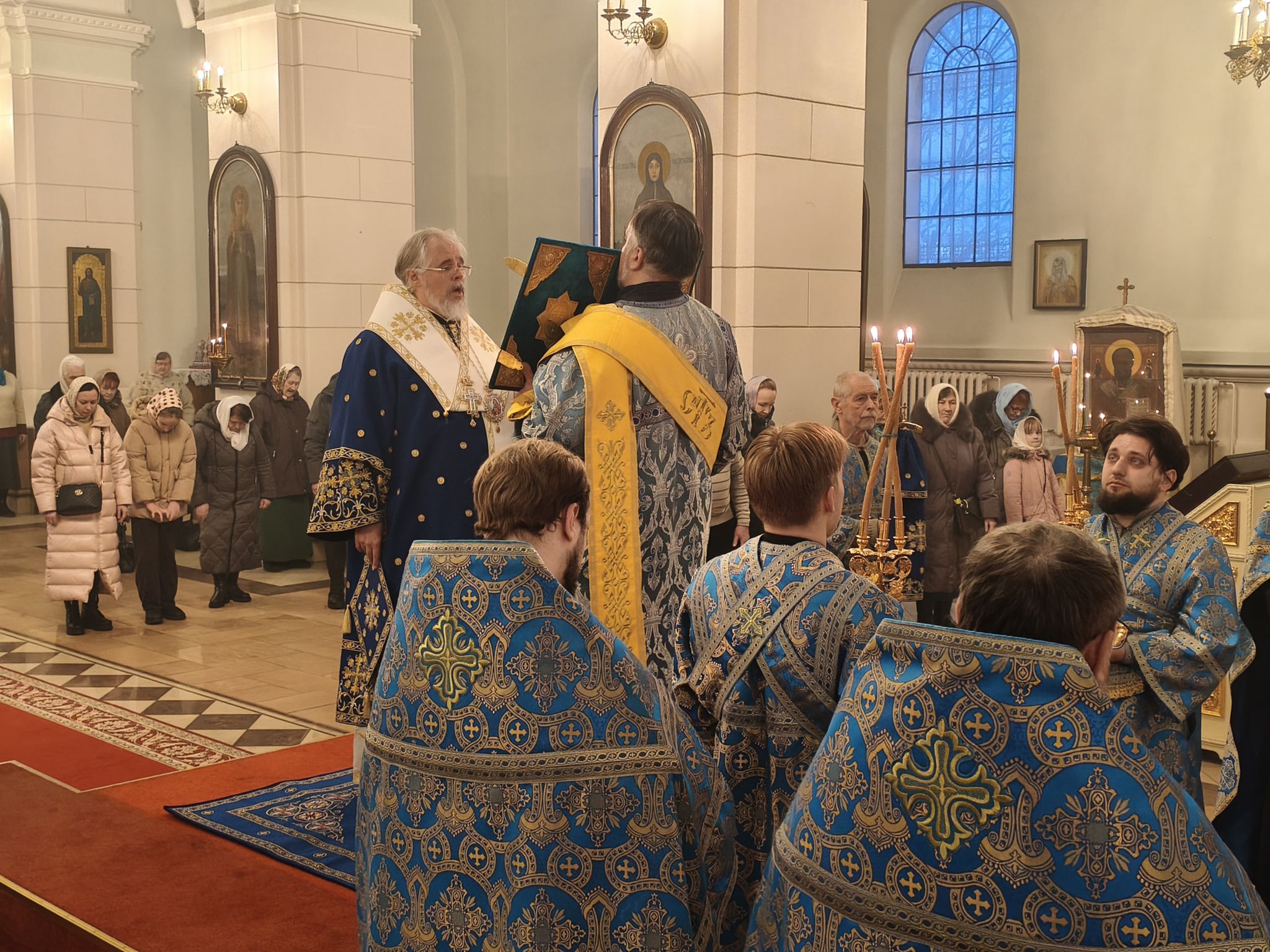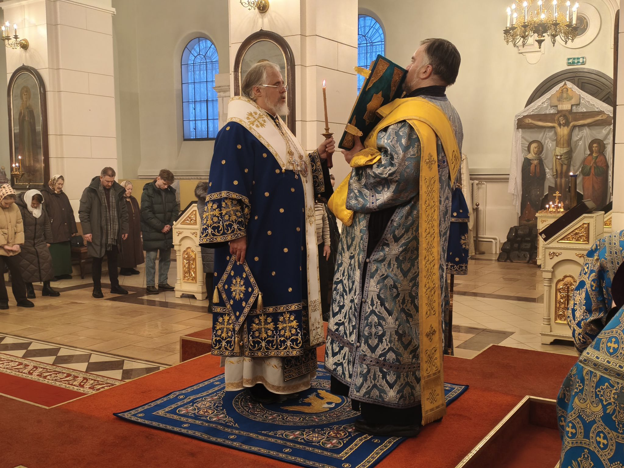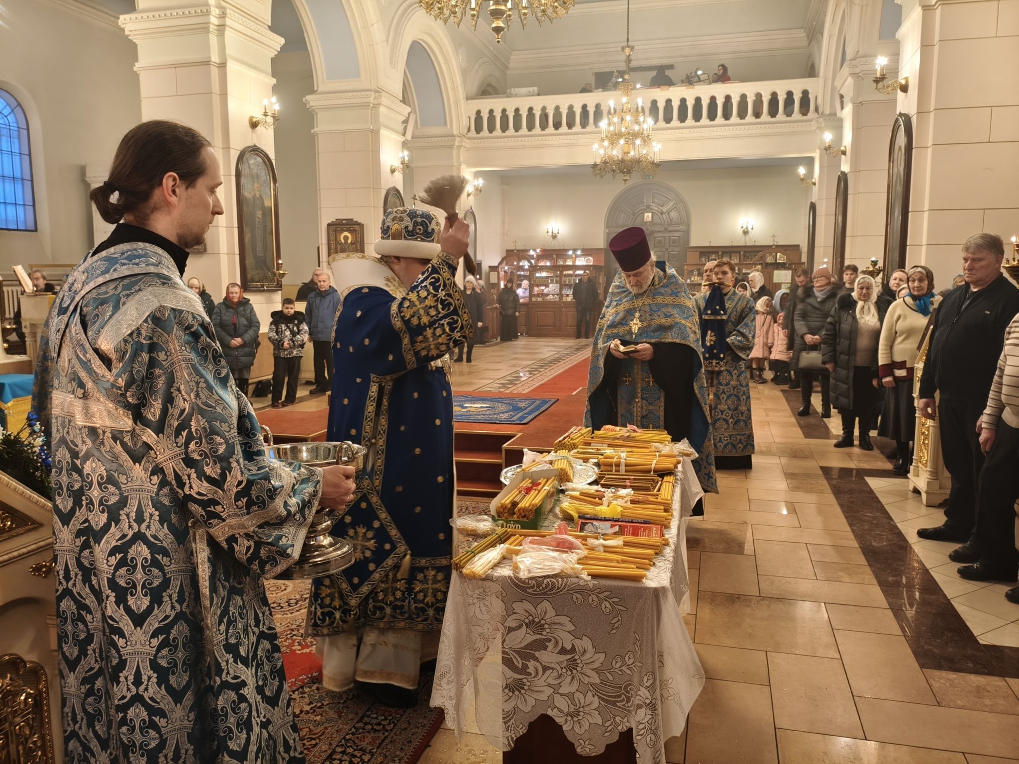Вечером 14 февраля 2026 года, когда Церковь вступает в празднование двунадесятого торжества Сретения Господня и одновременно воспоминает Страшный Суд (Неделя мясопустная), в кафедральном соборе святых страстотерпцев Бориса и Глеба было совершено праздничное Всенощное бдение.